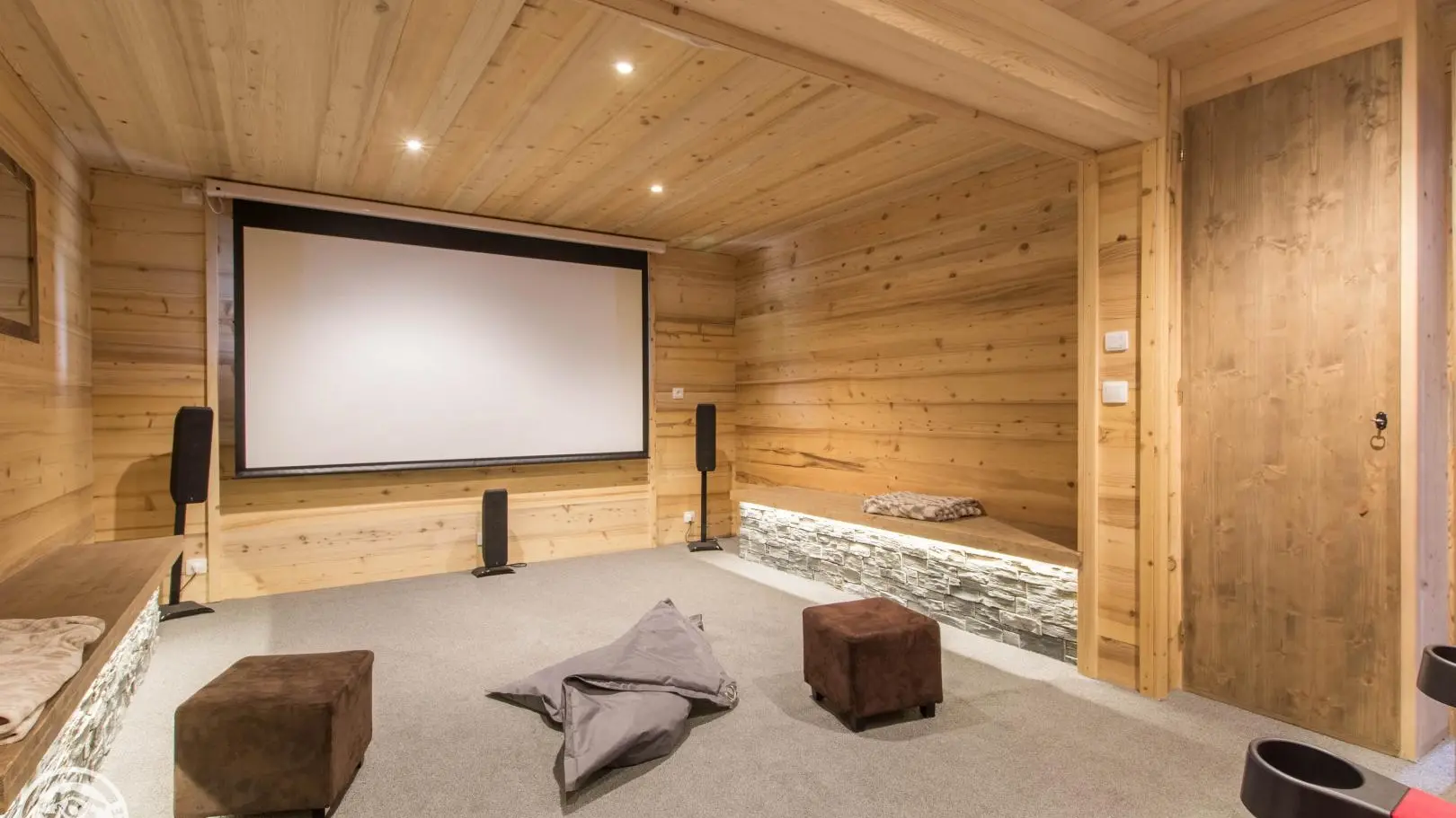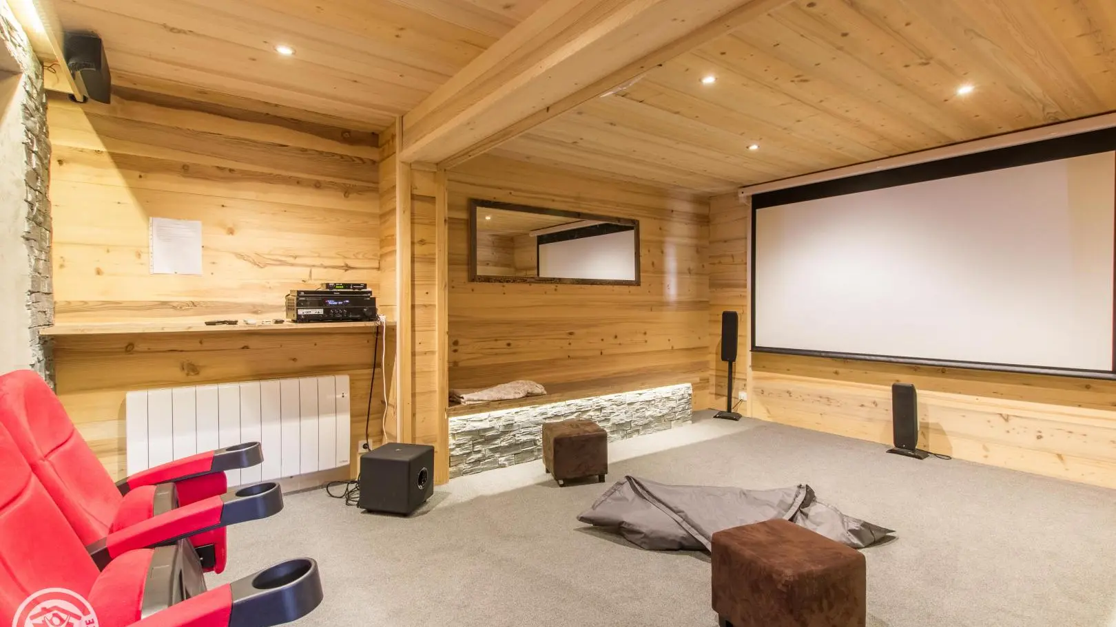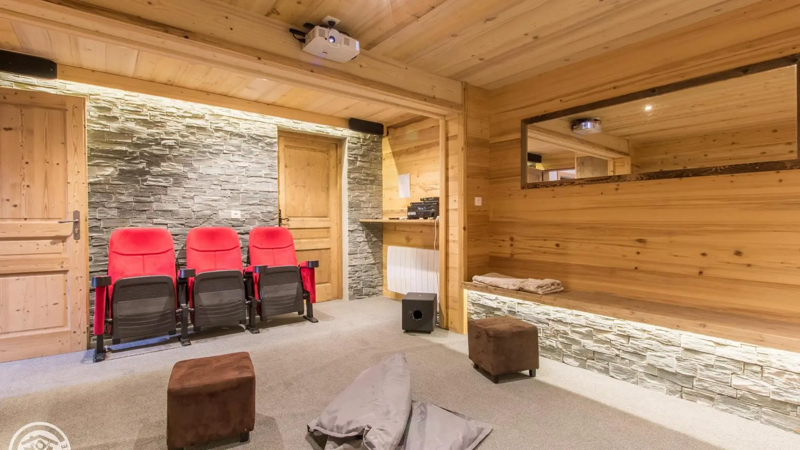 Chalet individuel de 200m2 aménagé sur 3 niveaux. Au rdc: salle cinéma, espace sauna avec salle d'eau, pièce de jeux/chambre avec Tv et canapé convertible, buanderie.