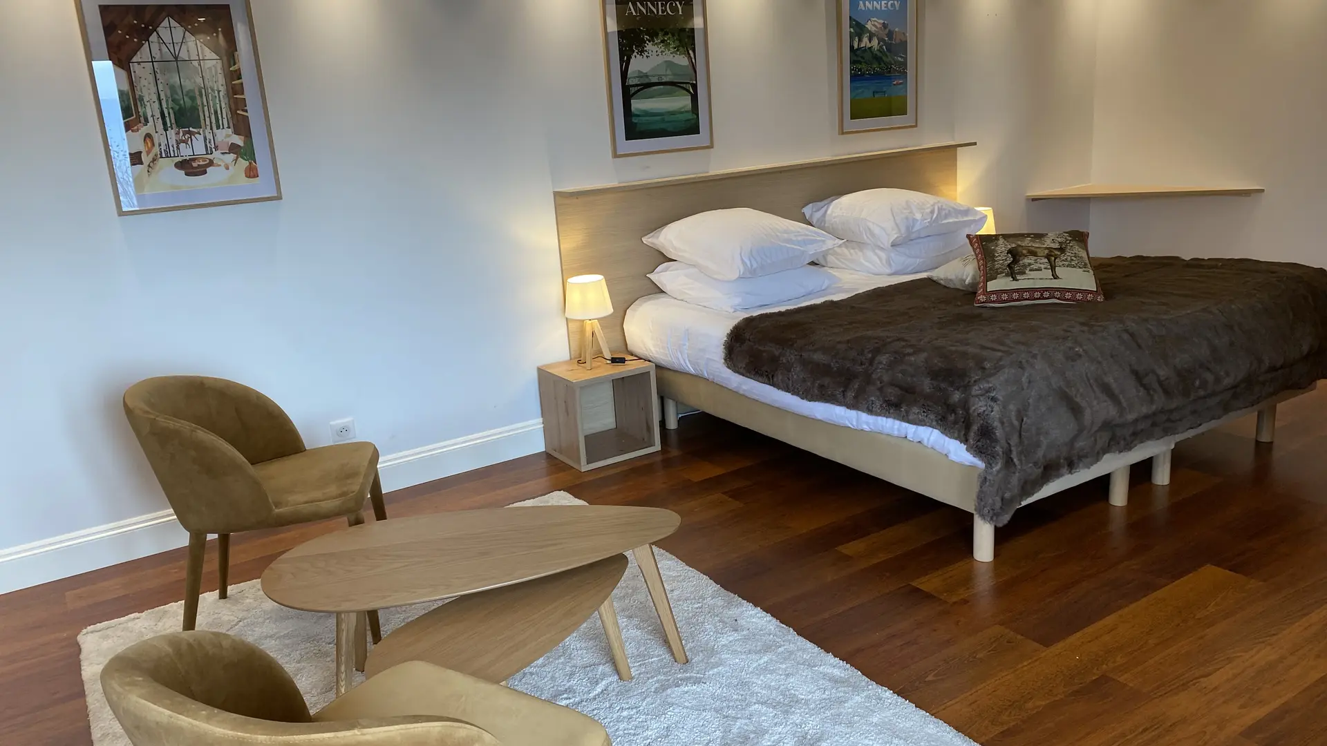 Pour votre confort : cuisine équipée ouverte sur séjour avec accès terrasse et balcon, canapé, TV écran plat, wc, chambre 1 avec salle d'eau et lit 160 ,petit bureau, chambre 2 avec lits 90 jumelables , TV, canapé, balcon, salle d'eau et wc , chambre 3: lit king size transformable en 2 lits 90x200, TV, espace salon et bureau, salle d'eau et wc, 2 salons extérieurs: jardin et détente, parking privatif, terrain clos. Annecy et son lac 14km, Semnoz (randos, raquettes, ski) 25km, Plan d'eau, base de loisirs de Rumilly 7km. Supplément à prévoir si personne supplémentaire. 3 semaines - 10%. Propriétaires possèdent également un autre gîte dans leur maison voisine (réf. 161005).