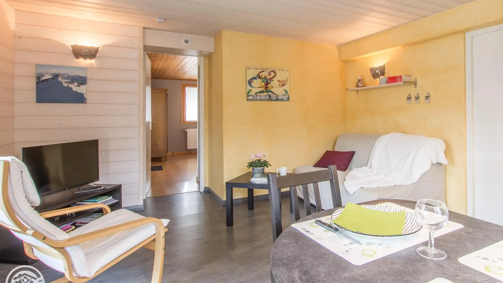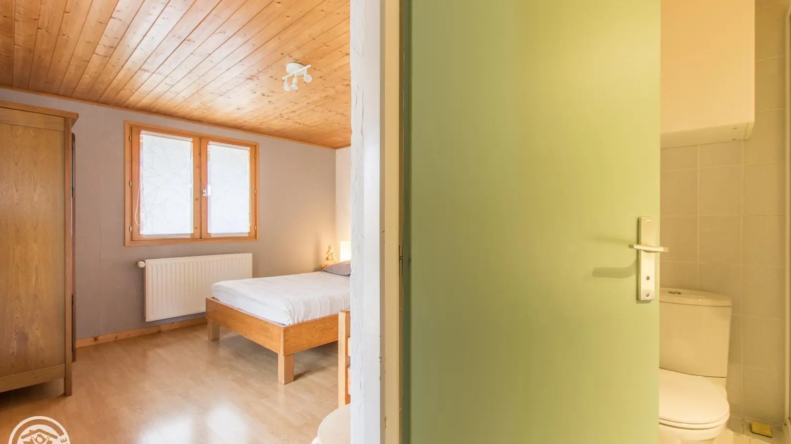 Gite de 34m² aménagé au rez-de-jardin d'un chalet comprenant également le logement des propriétaires à l'étage. Entrée indépendante.