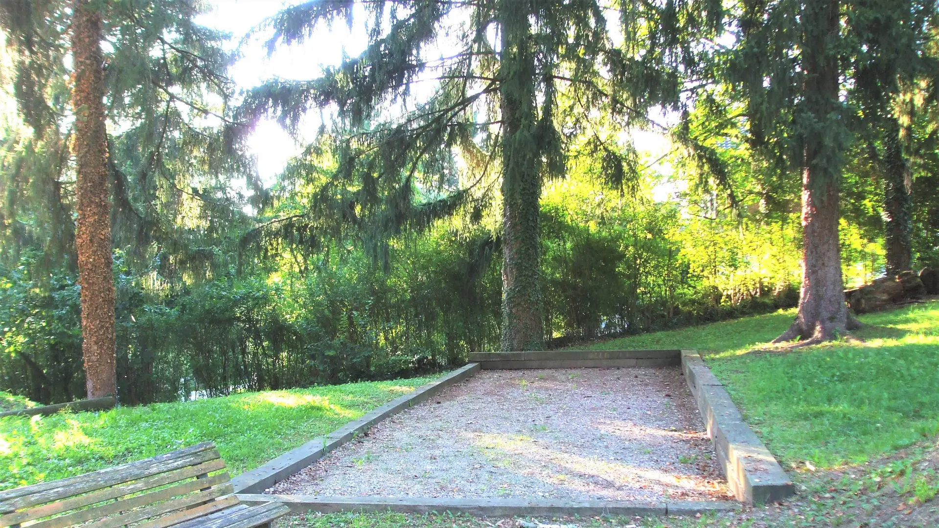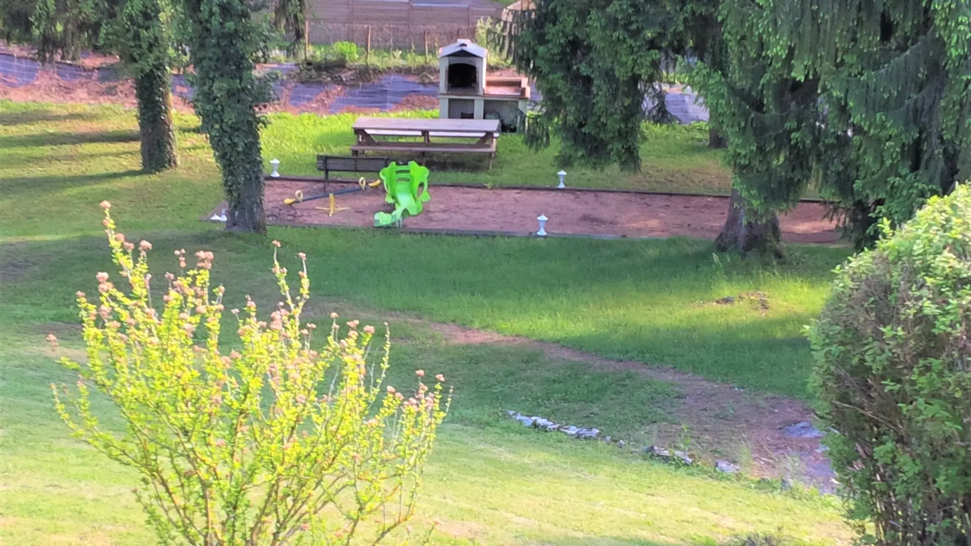 Parc avec jeux Portique, jeux pour petits et grands, ping-pong, terrain de boules...grand barbecue de jardin, bancs, table,.