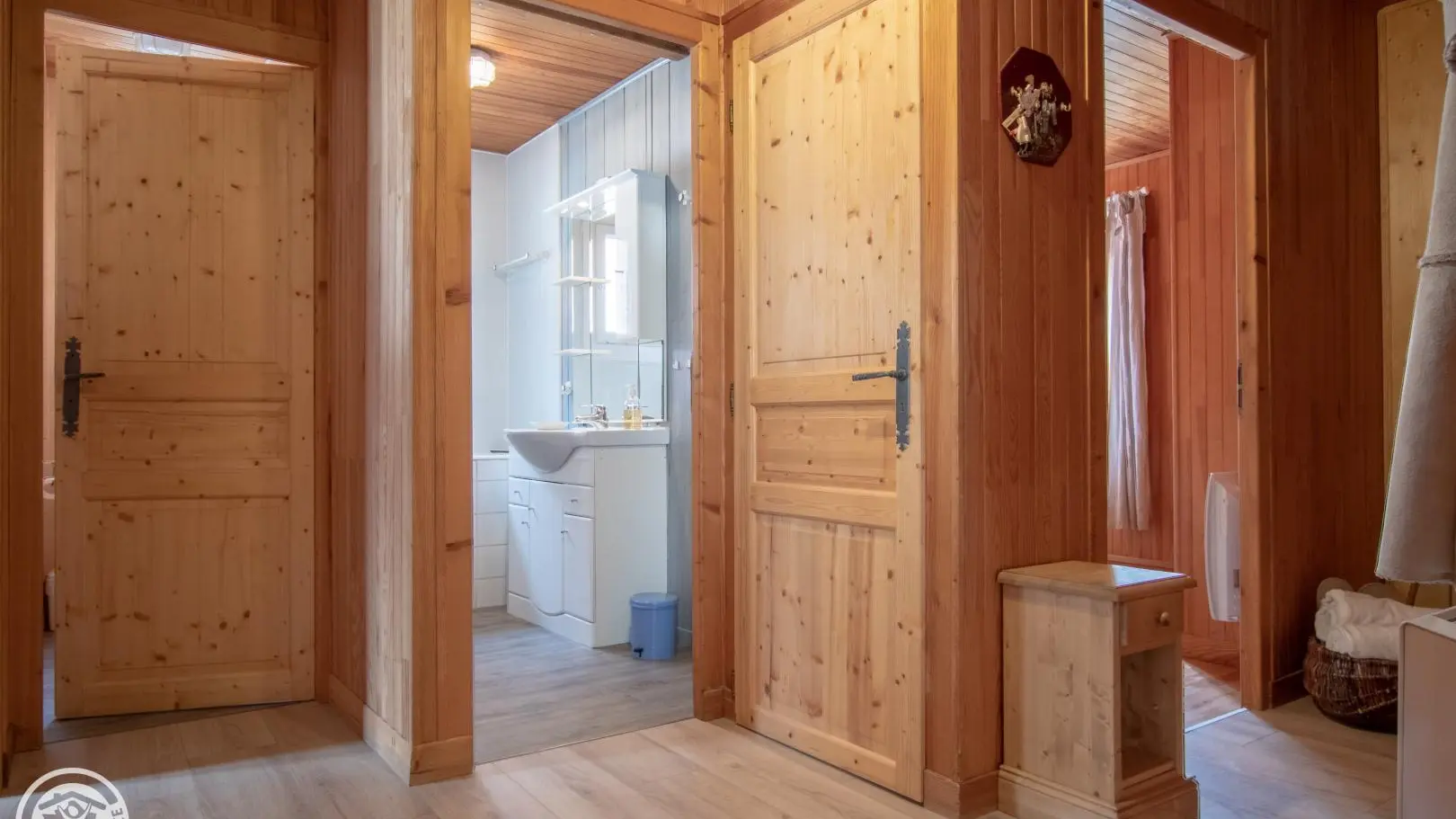 Chambre 5 : 1 lit 140. Salle de bains (WC).