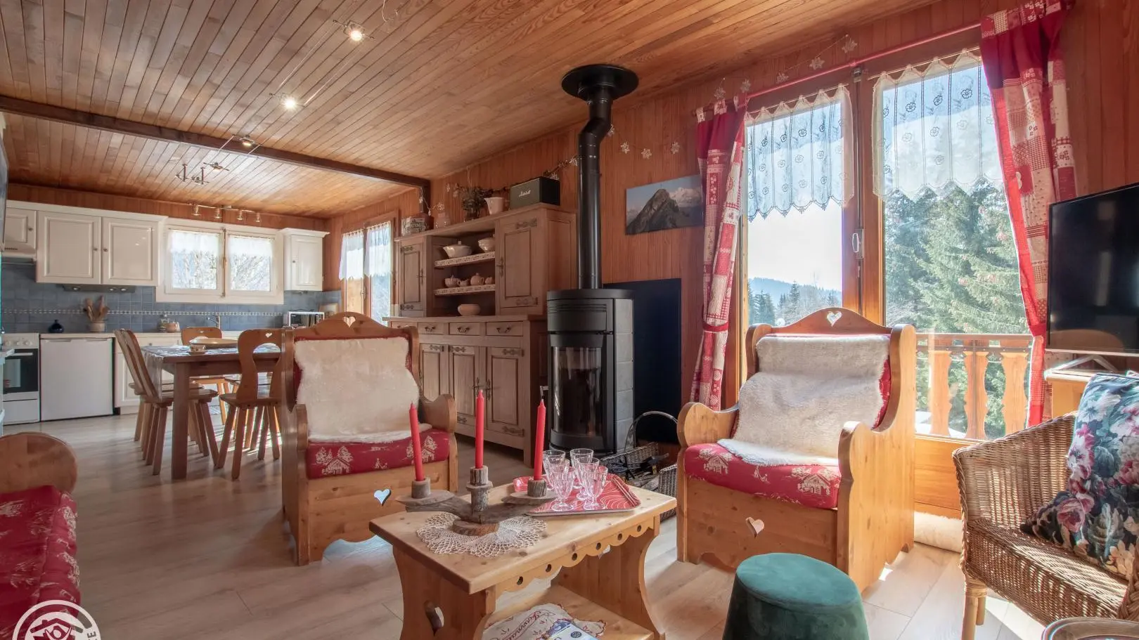 Poêle à bois dans le salon (1 panier de buches offert à l'arrivée puis 0,35 € / buche)