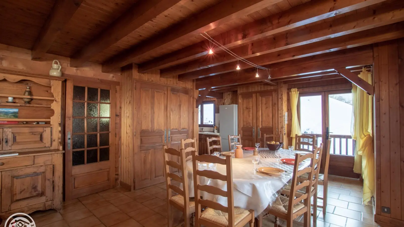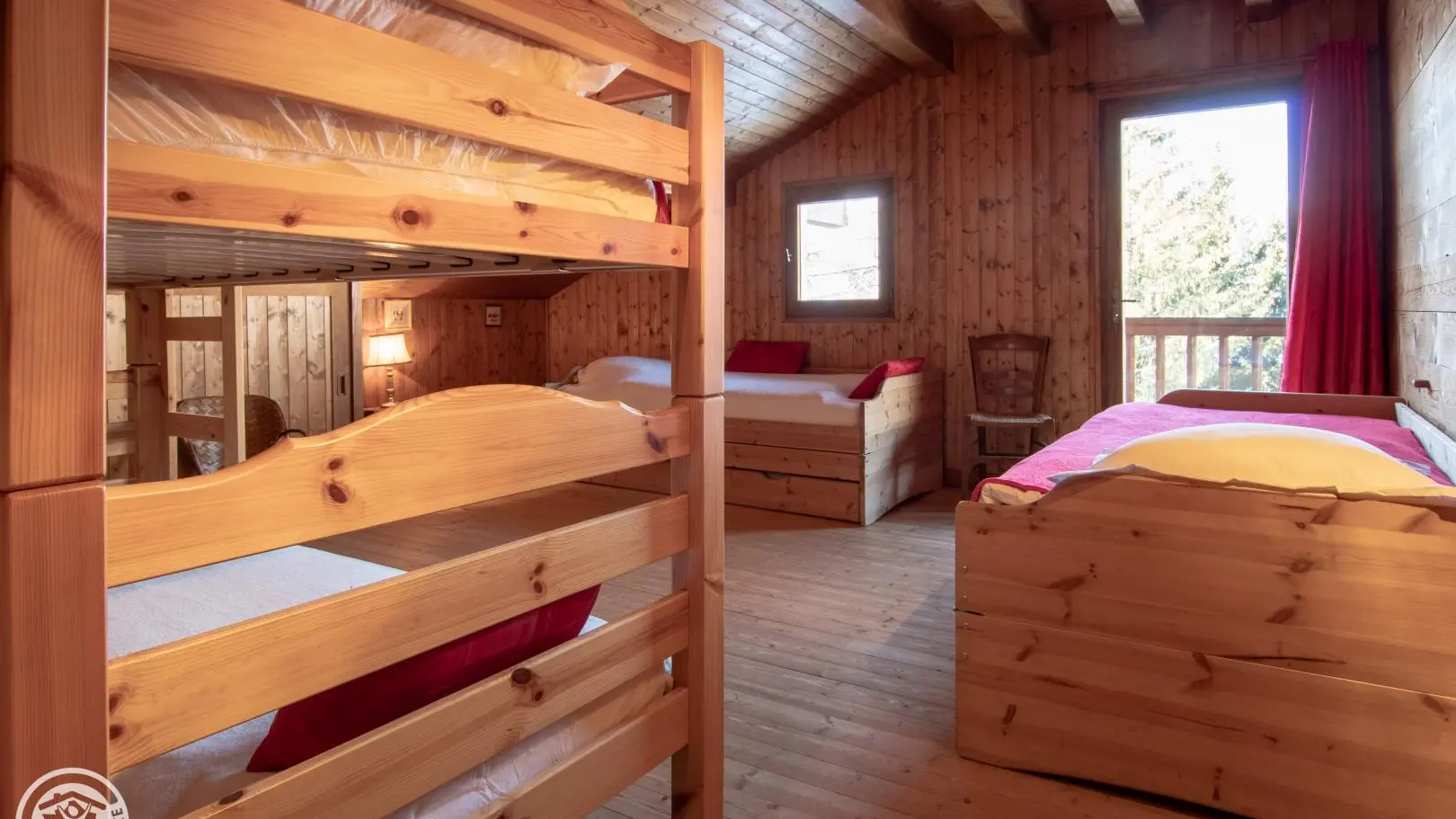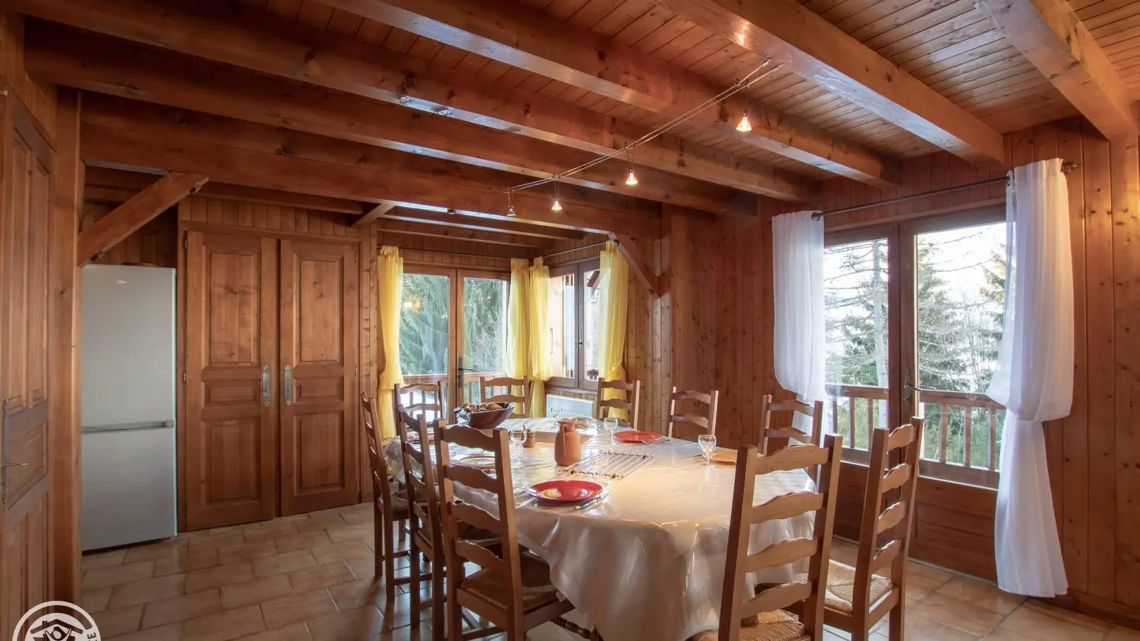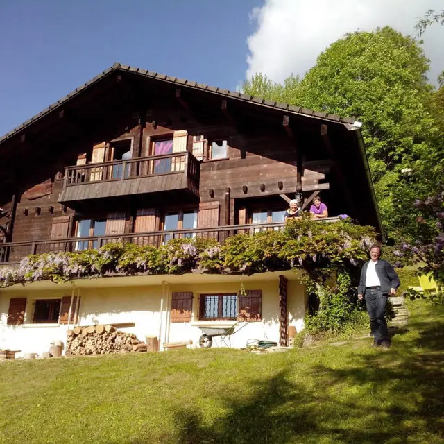 Dans un cadre calme et agréable offrant une vue panoramique sur les montagnes, chalet indépendant (121m² + 20m² mansardés) aménagé sur 3 niveaux. Accès au 1er étage par escaliers extérieurs. Hall d'entrée, cuisine ouverte sur salle à manger/séjour (cheminée) avec accès à balcon, terrasse et jardin. Salle d'eau, wc indépendant. 2ème étage: Chambre 1 mansardée (2 lits 90 jumelables), Chambre 2 (1 lit 140, balcon), Chambre 3 (2 lits 90 superposés, 2 lits gigognes 2x90, balcon), salle d'eau, wc indépendant. Rez-de-chaussée (entrée d'hiver): buanderie (lave/sèche-linge, local skis/vélos), Chambre 4 (1 lit 160, salle d'eau, wc indépendant). Salon de jardin, barbecue, armoire sèchante pour 10 équipements de ski. Parking, cour. Ski: station la Croix Fry, Plateau de Beauregard à 8km. Liaison à skis avec La Clusaz par Merdassier - domaine de l'Etale. Nombreuses randonnées été et hiver/raquettes en montagne, au départ du gîte. Lac d'Annecy à 23km, Annecy à 30km.