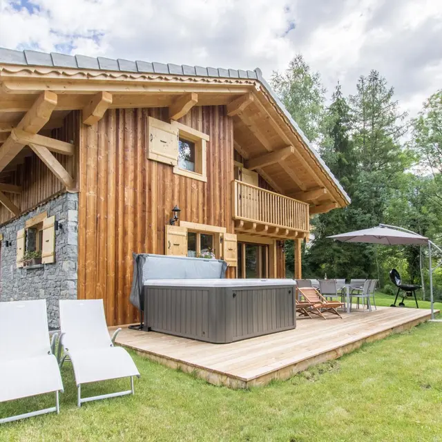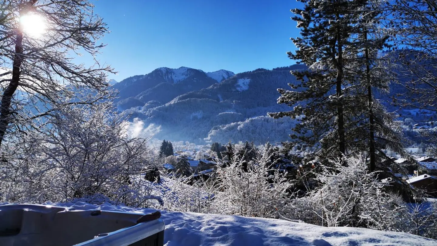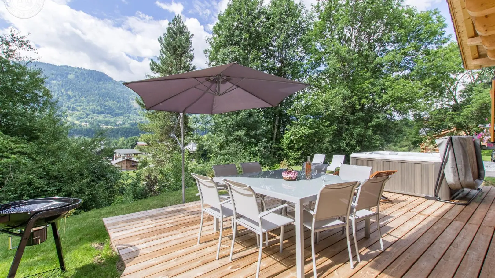 Sur la terrasse, un jacuzzi privatif chauffé à 38° toute l’année vous attend pour des moments uniques de détente face aux montagnes.