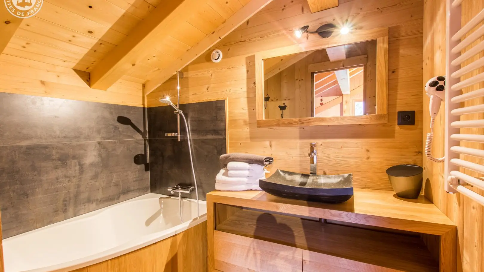 Ce chalet récent allie confort moderne et authenticité savoyarde, avec une décoration chaleureuse dans le plus pur style montagne. Idéalement situé sur le coteau sud, à proximité immédiate du centre du village, il bénéficie d’une exposition plein sud et d’une vue exceptionnelle.