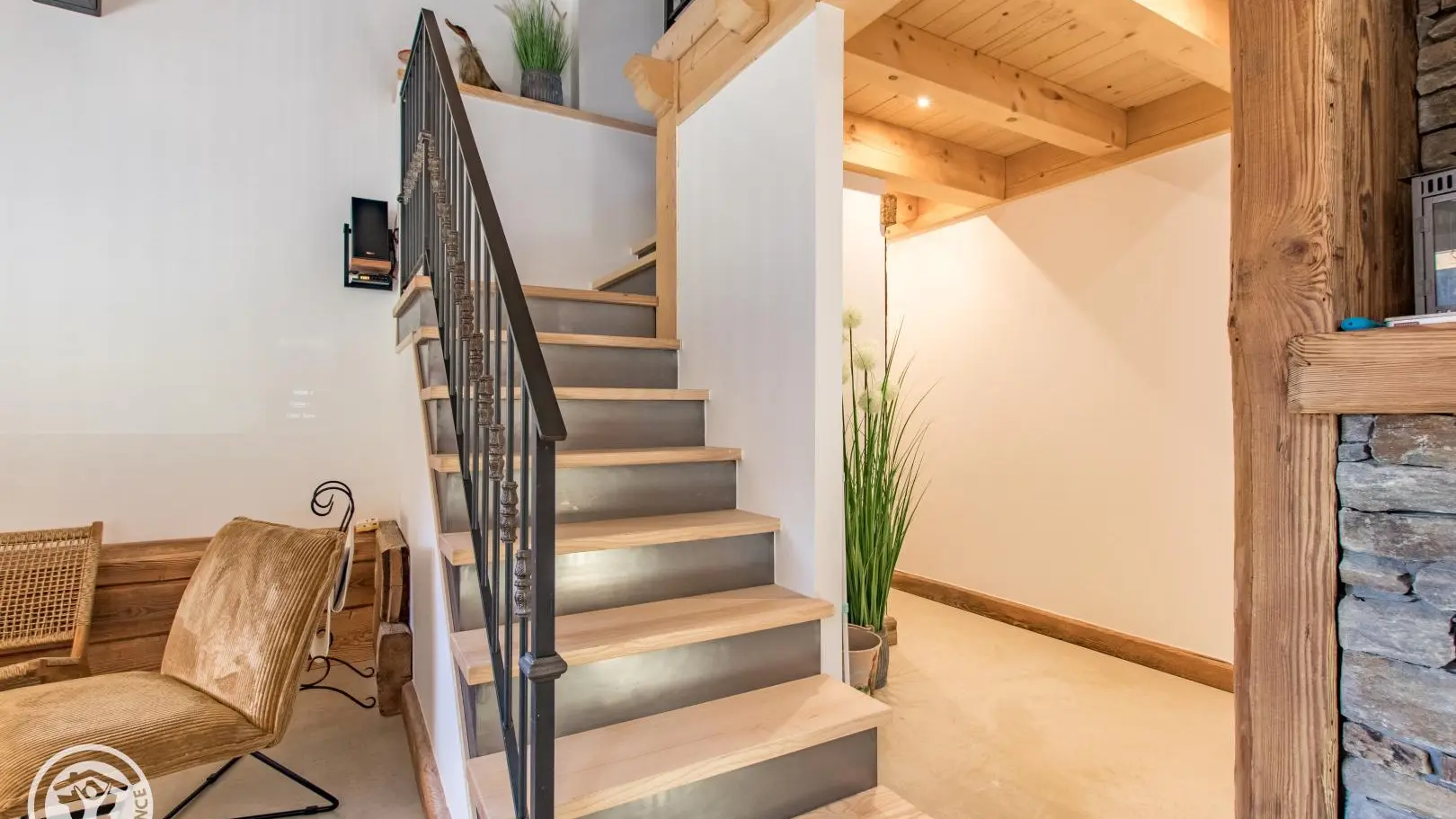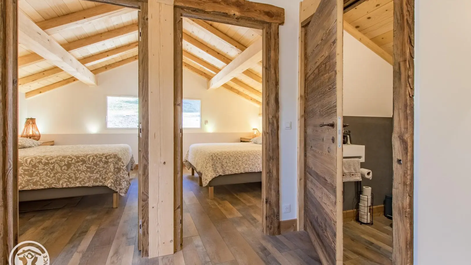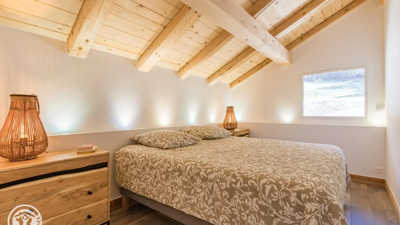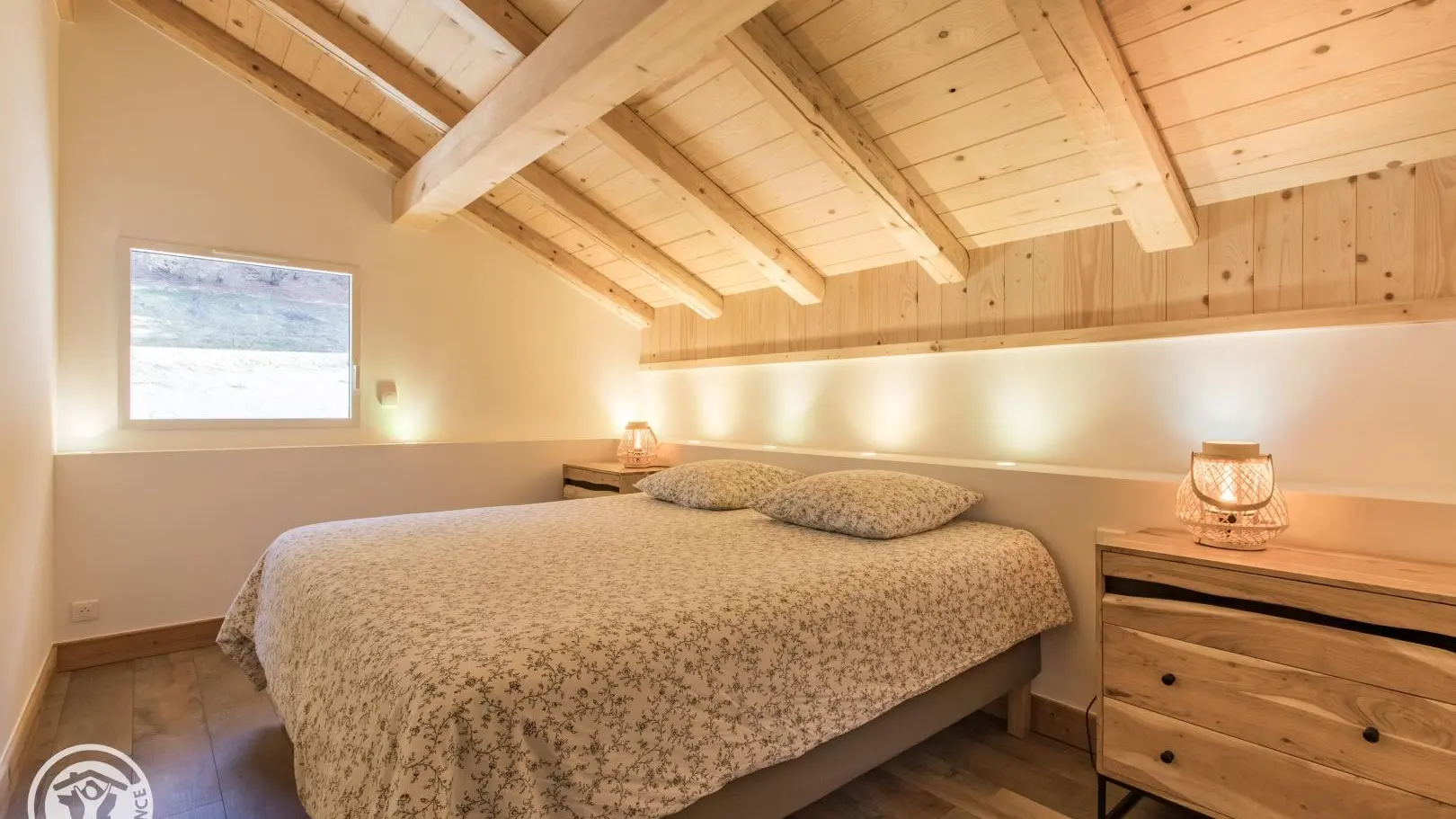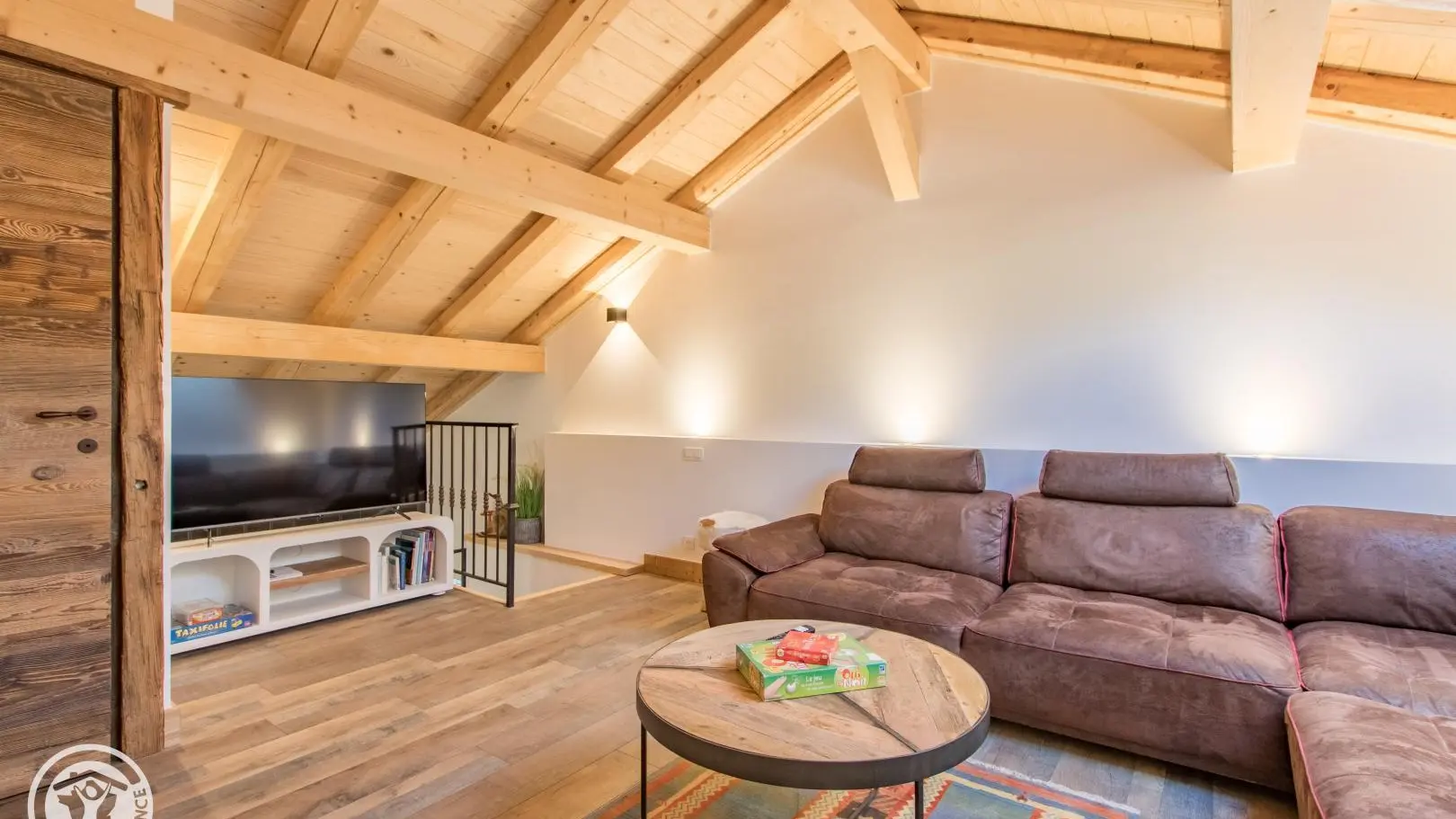 A l'étage : 2ème salon en mezzanine avec grand canapé, télévision. Chambre 2 (1 lit 180x200cm), chambre 3 (1 lit 180x200cm). 1 wc indépendant.
