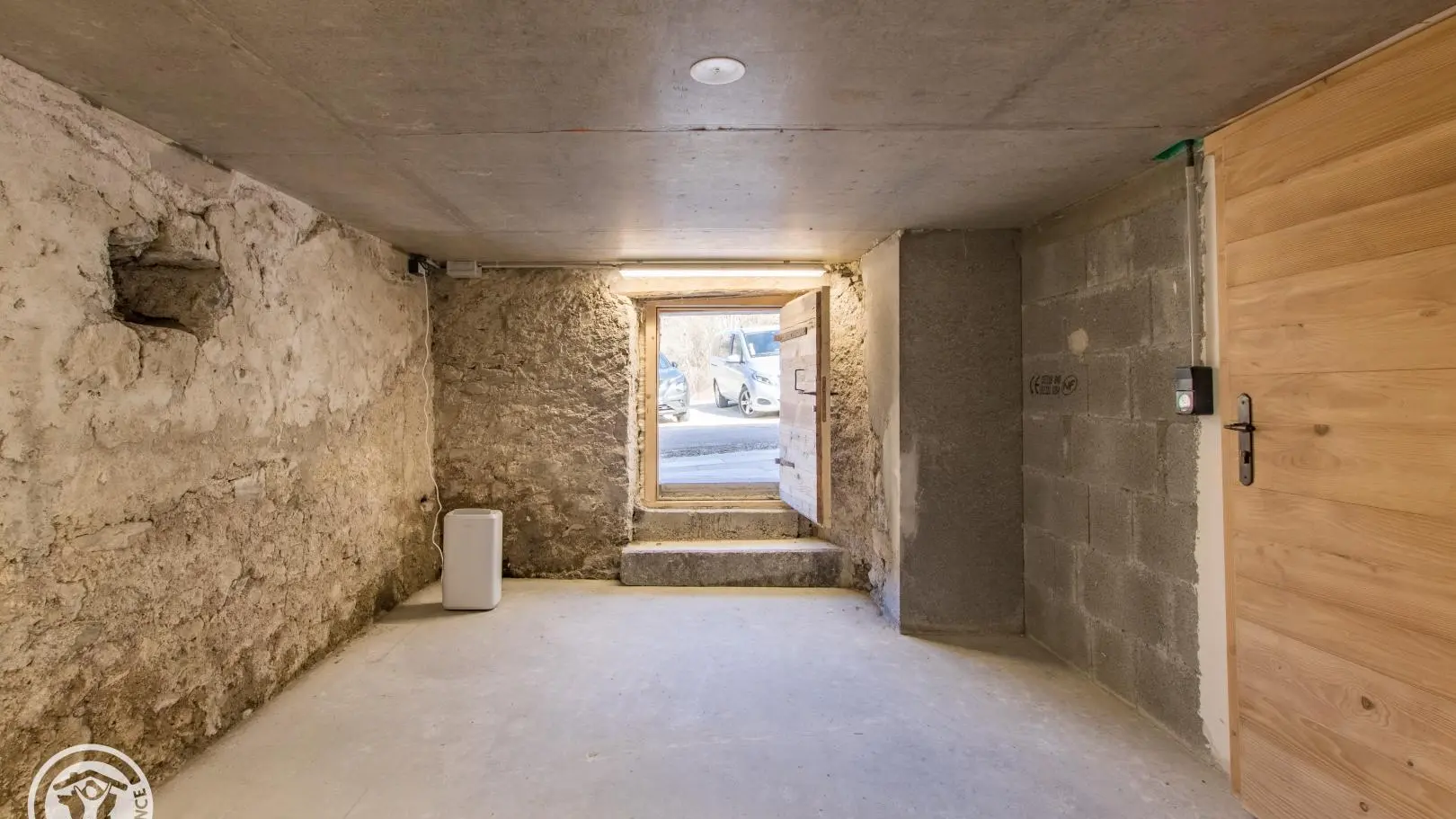 Au sous-sol (adapté à une utilisation l'été car niveau non chauffé) : espace rangement, salle d'eau/wc. Accès à la terrasse sud.