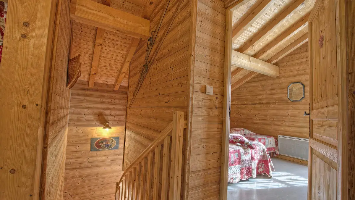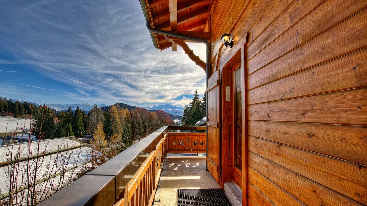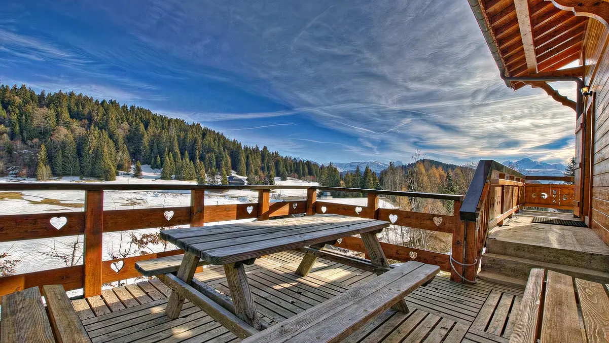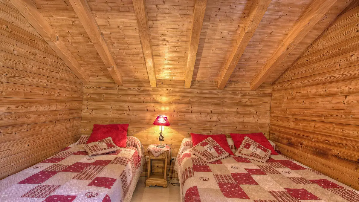 Vue sur la chaîne du Mont-Blanc pour ce chalet mitoyen (un même toit pour 2 chalets indépendants) de 110m² + mansardes.
