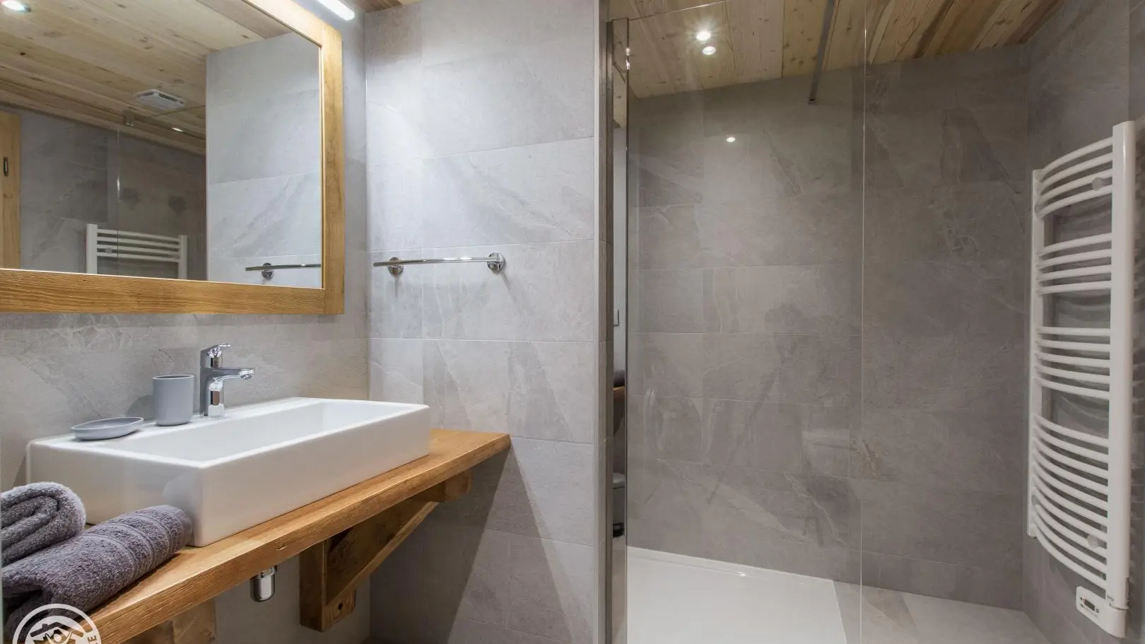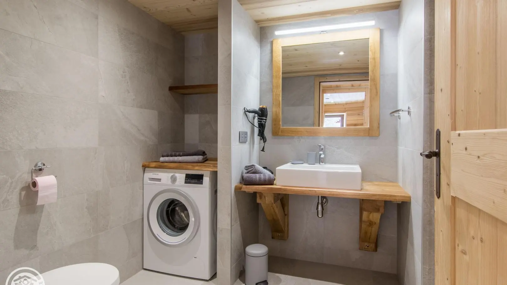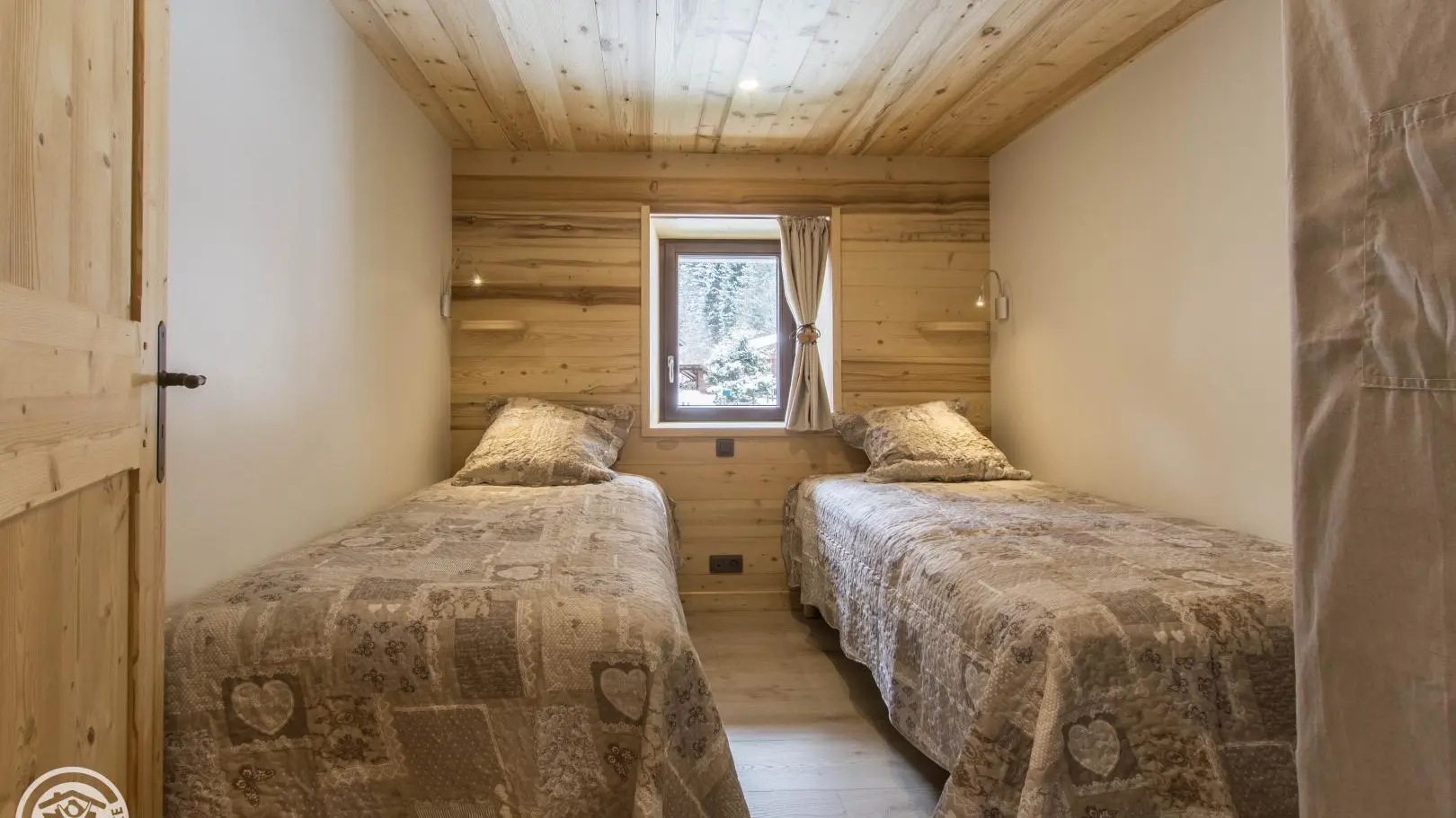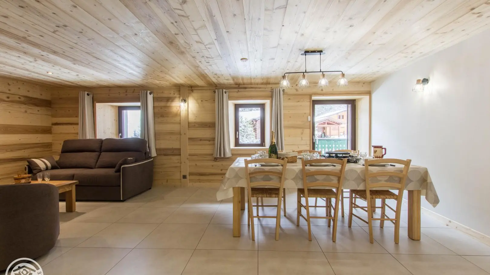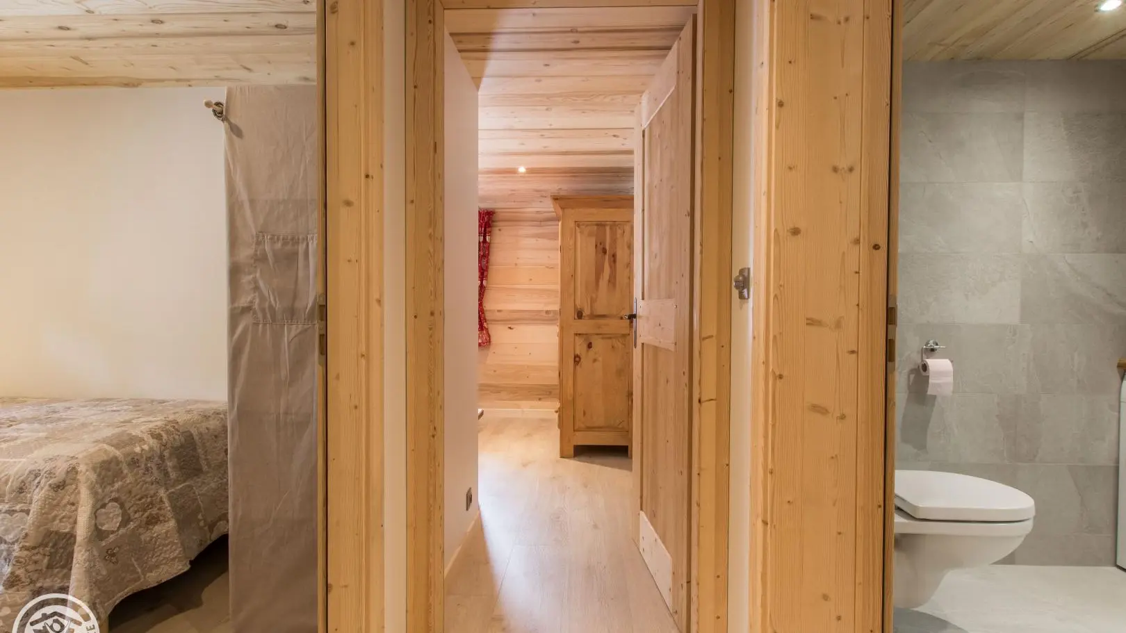 Casier à skis et sèche-chaussures privatifs. Parking privatif devant le chalet. Petit balcon et terrain autour du chalet, salon de jardin privatif installé sur l'avant du chalet. Transats, barbecue. Vue sur les montagnes.