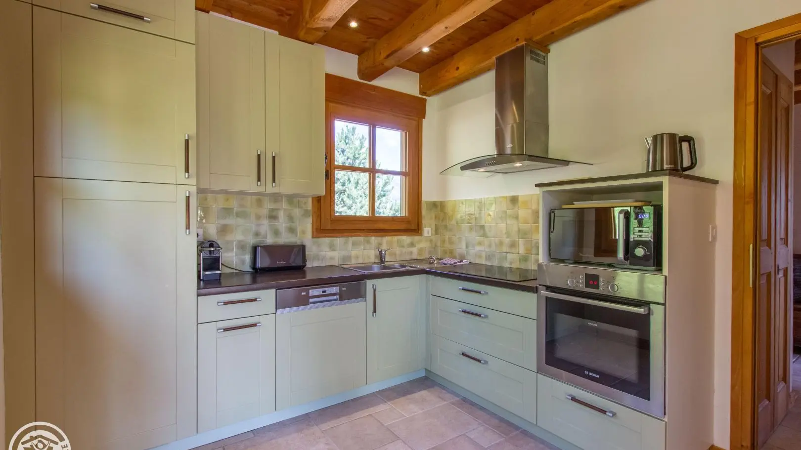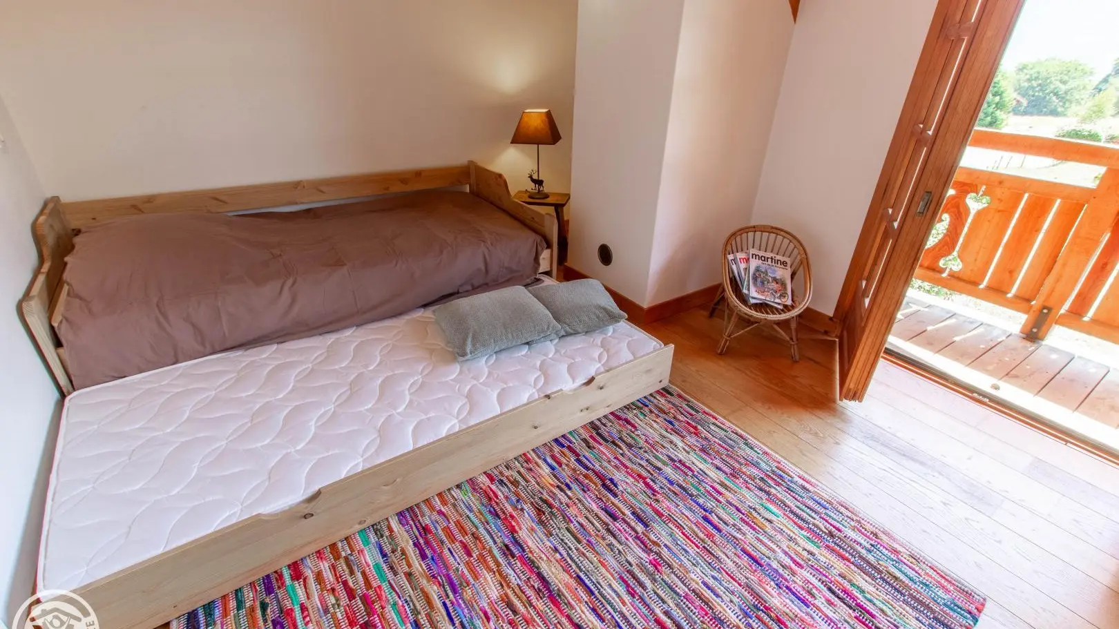 Balcon, jardin, cour, et terrasses avec mobilier (table et chaises, parasol, transats et barbecue). Internet wifi. Grand garage au rez-de-chaussée avec coin buanderie (évier, lave-linge). Chauffage au sol au 1er étage.