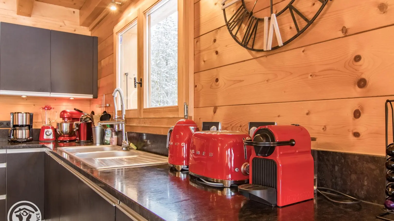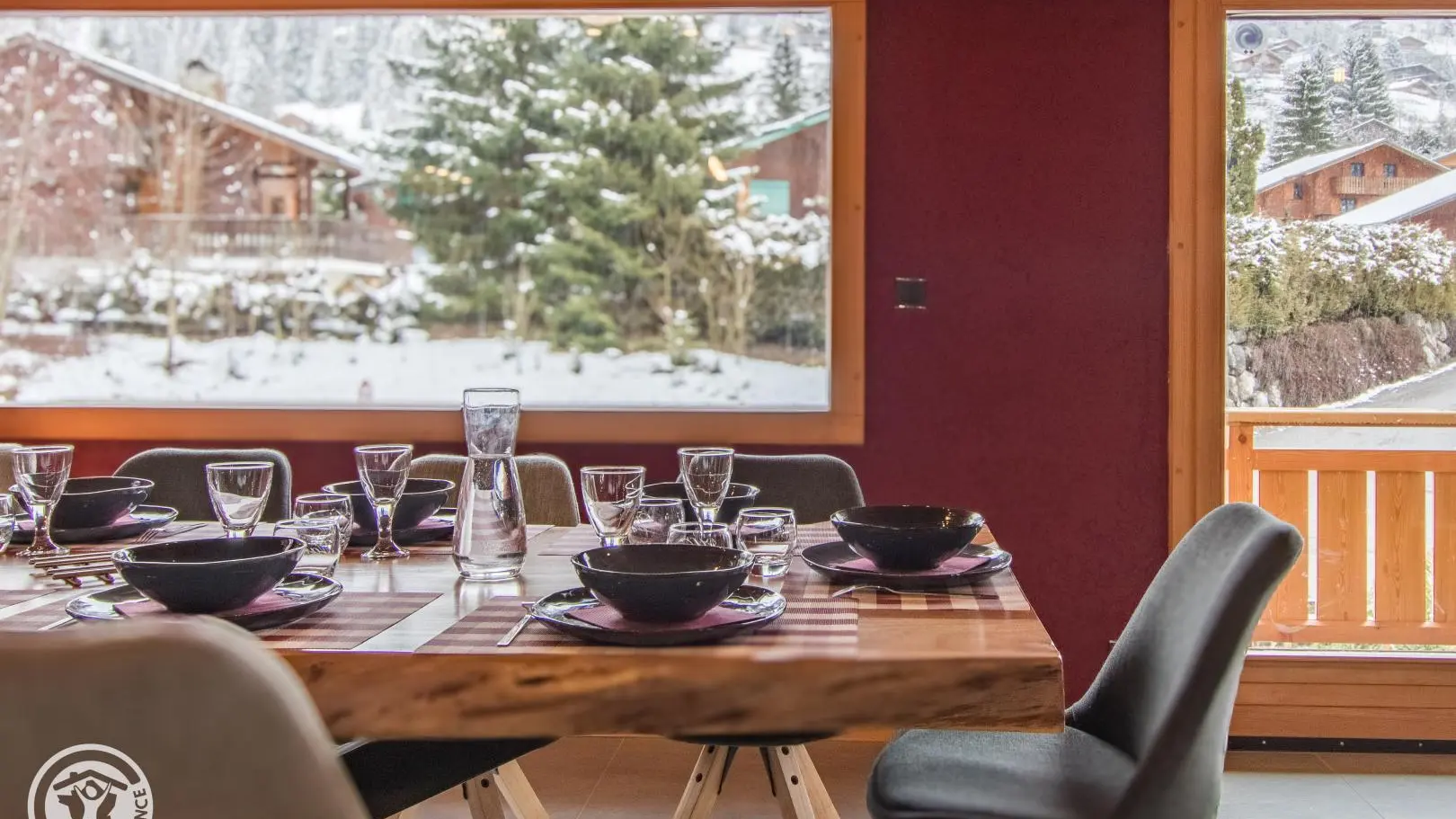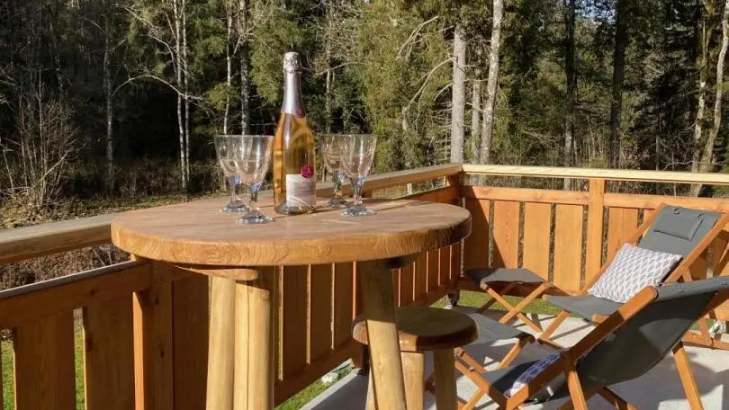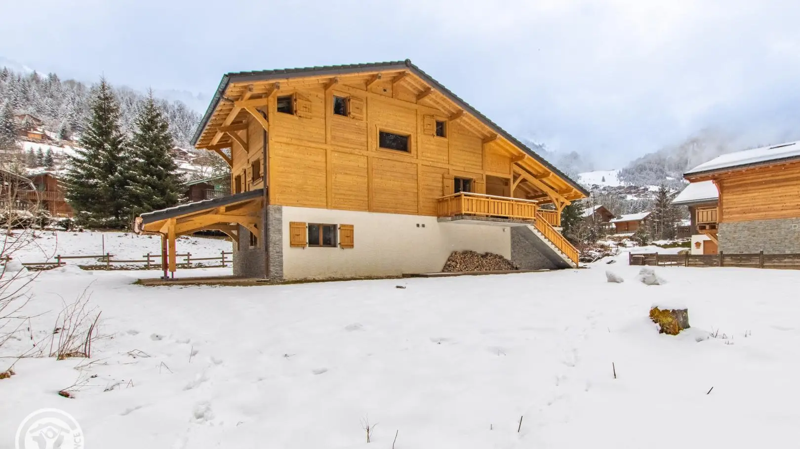 Balcons. Terrasse avec salon de jardin sur l'arrière du chalet, côté rivière. Plancha électrique, transats. Jardin / terrain. Parking privatif sur place et garage 1 voiture + abri 1 voiture.