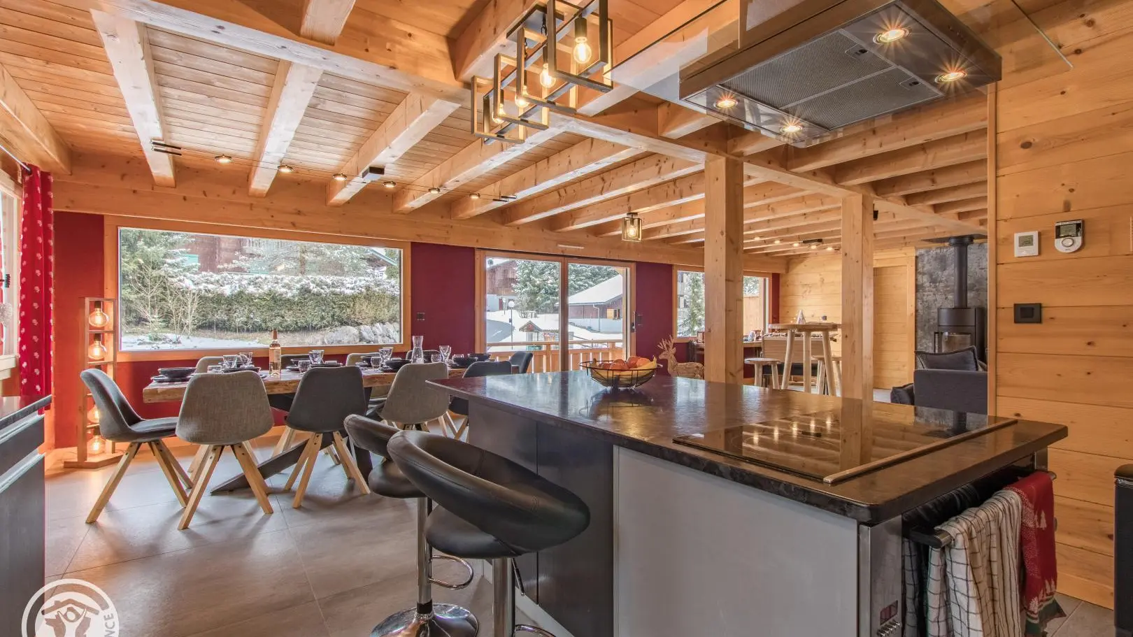 Chalet individuel de 220m² aménagé sur 3 niveaux offrant des prestations de grande qualité. Ambiance chaleureuse.