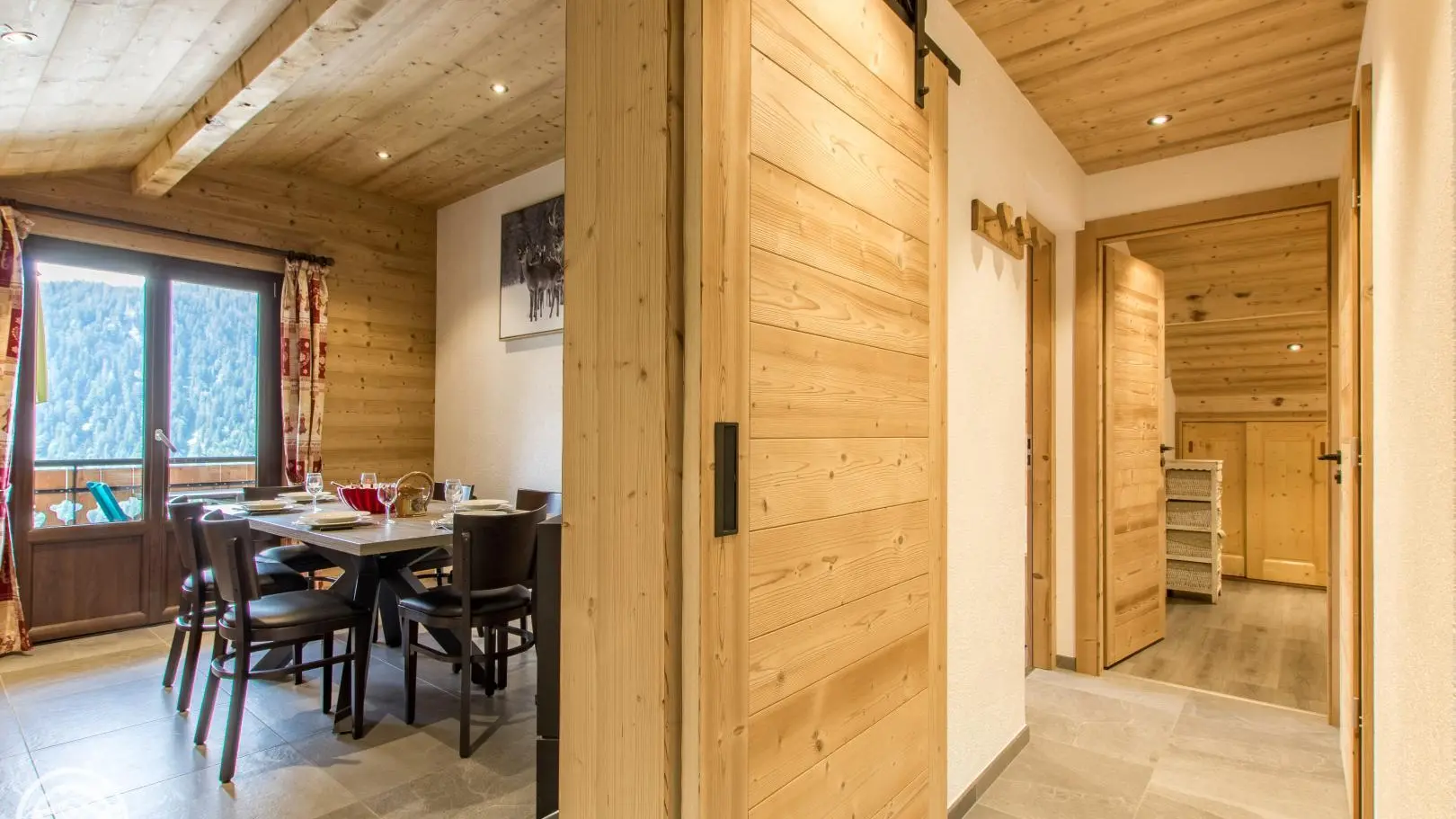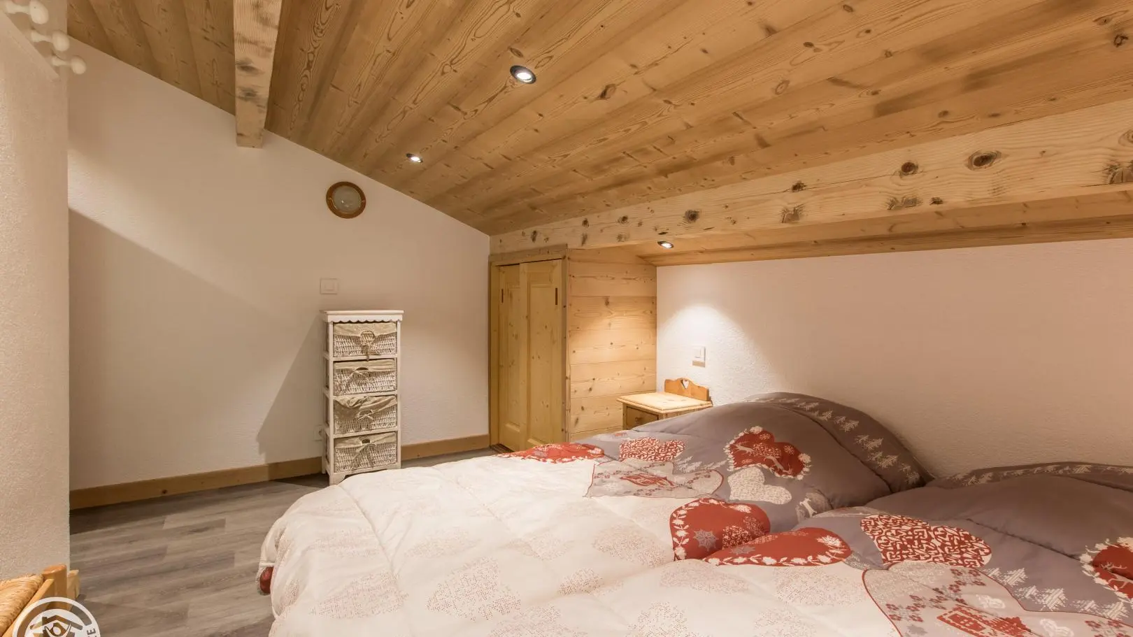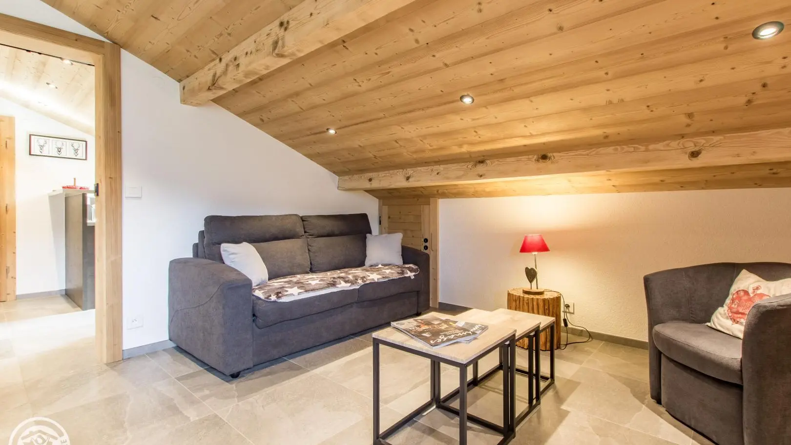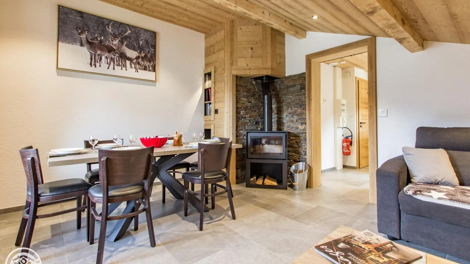 Cuisine, séjour (canapé convertible type rapido, télévision 80cm, poêle à bois, table repas), accès au balcon orienté Sud. 2 chambres : chambre 1 (1 lit 160x200cm + 1 lit 90x190cm, accès balcon), chambre 2 mansardée (2 lits 90x190cm rapprochables). 2 salles d'eau avec douche à l'italienne dont une avec WC. Accès internet wifi. Lave-linge commun aux 3 gîtes. Casier à skis privatif. En option : draps, linge de toilette, ménage de fin de séjour. 1 place de parking privatif dans garage commun + parking à côté du chalet. Balcon avec mobilier de jardin, vue sur les montagnes et Chatel.