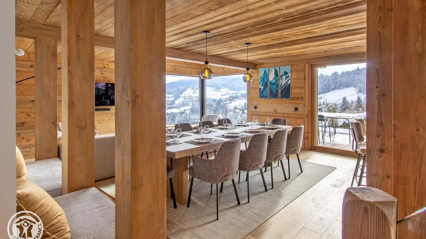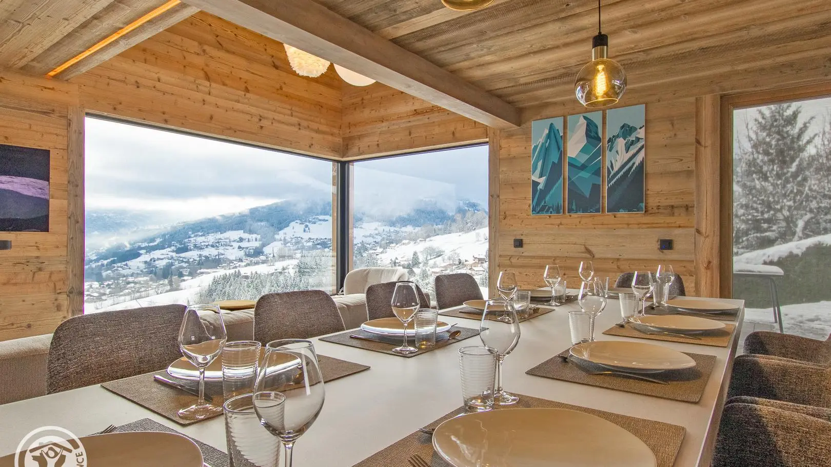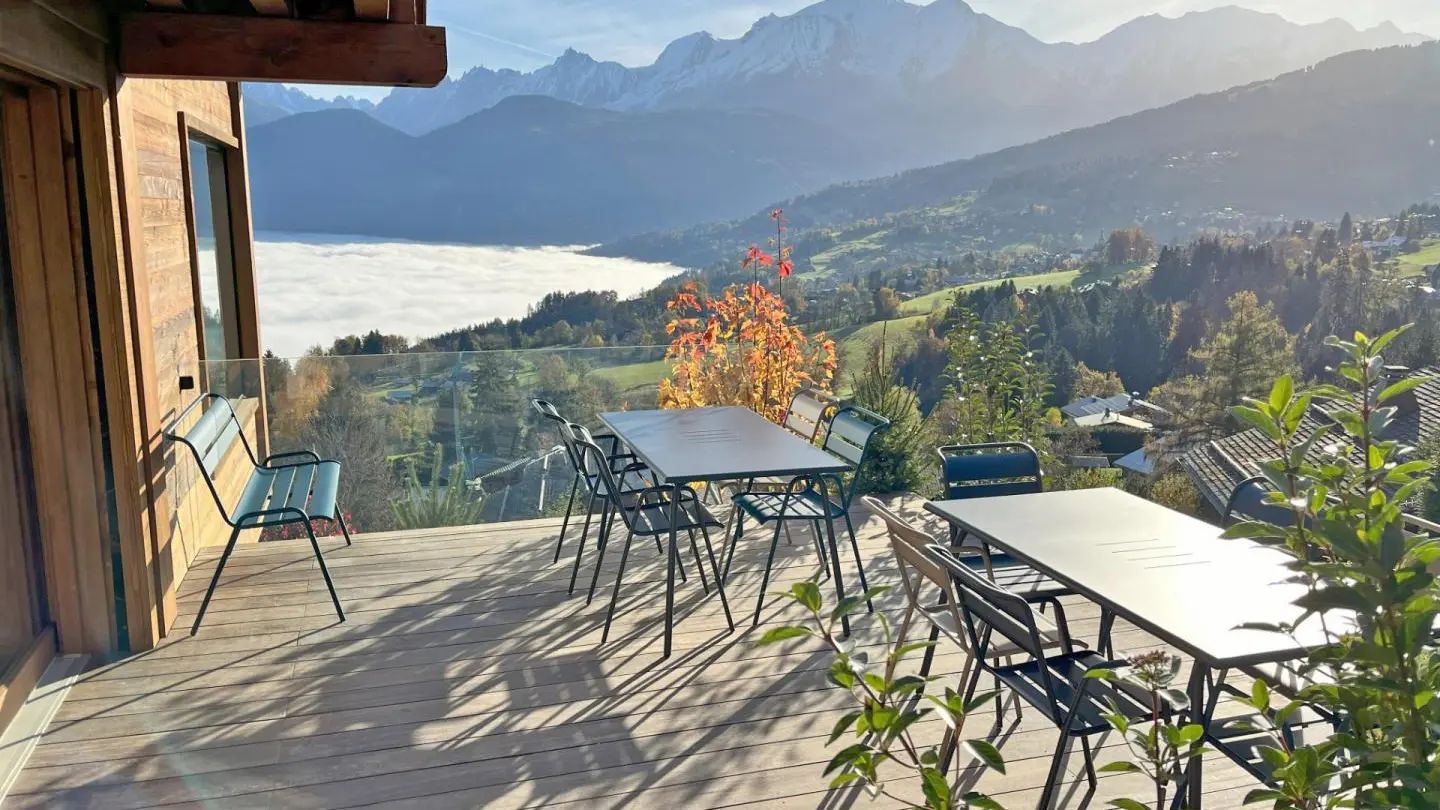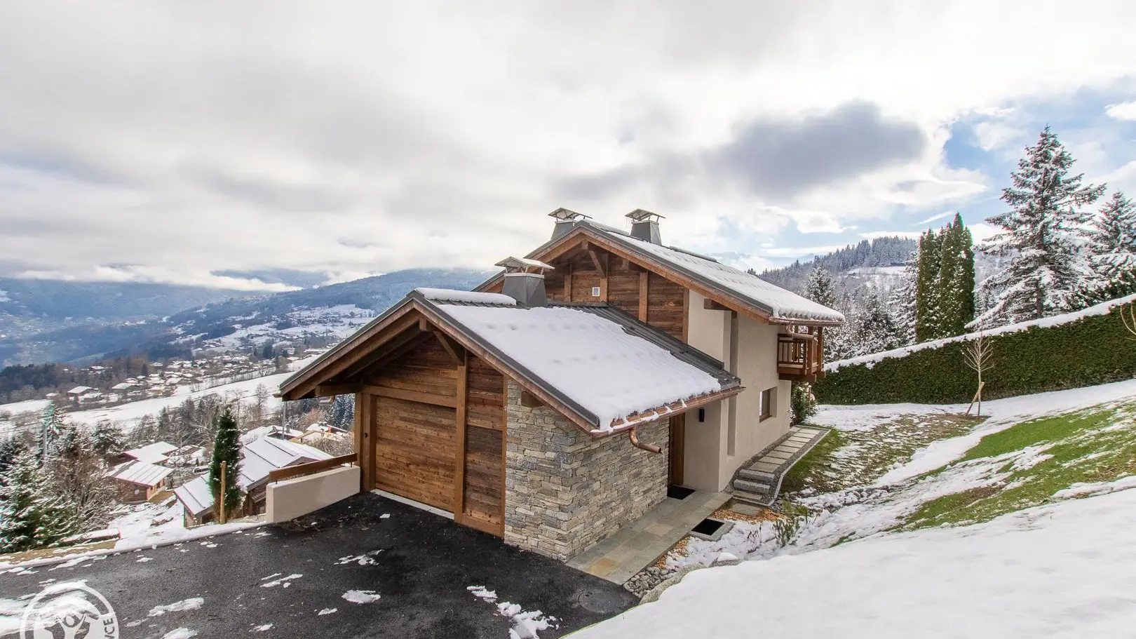 Lumineux chalet individuel de 142m2 (+garage) aux finitions haut de gamme, situé sur les hauteurs de Combloux, et bénéficiant d'une vue époustouflante sur la vallée et les massifs environnants : Mont-Blanc, Fiz.