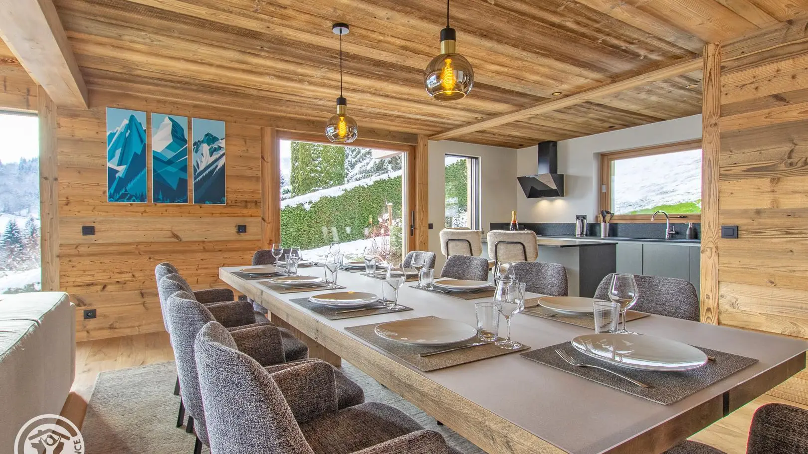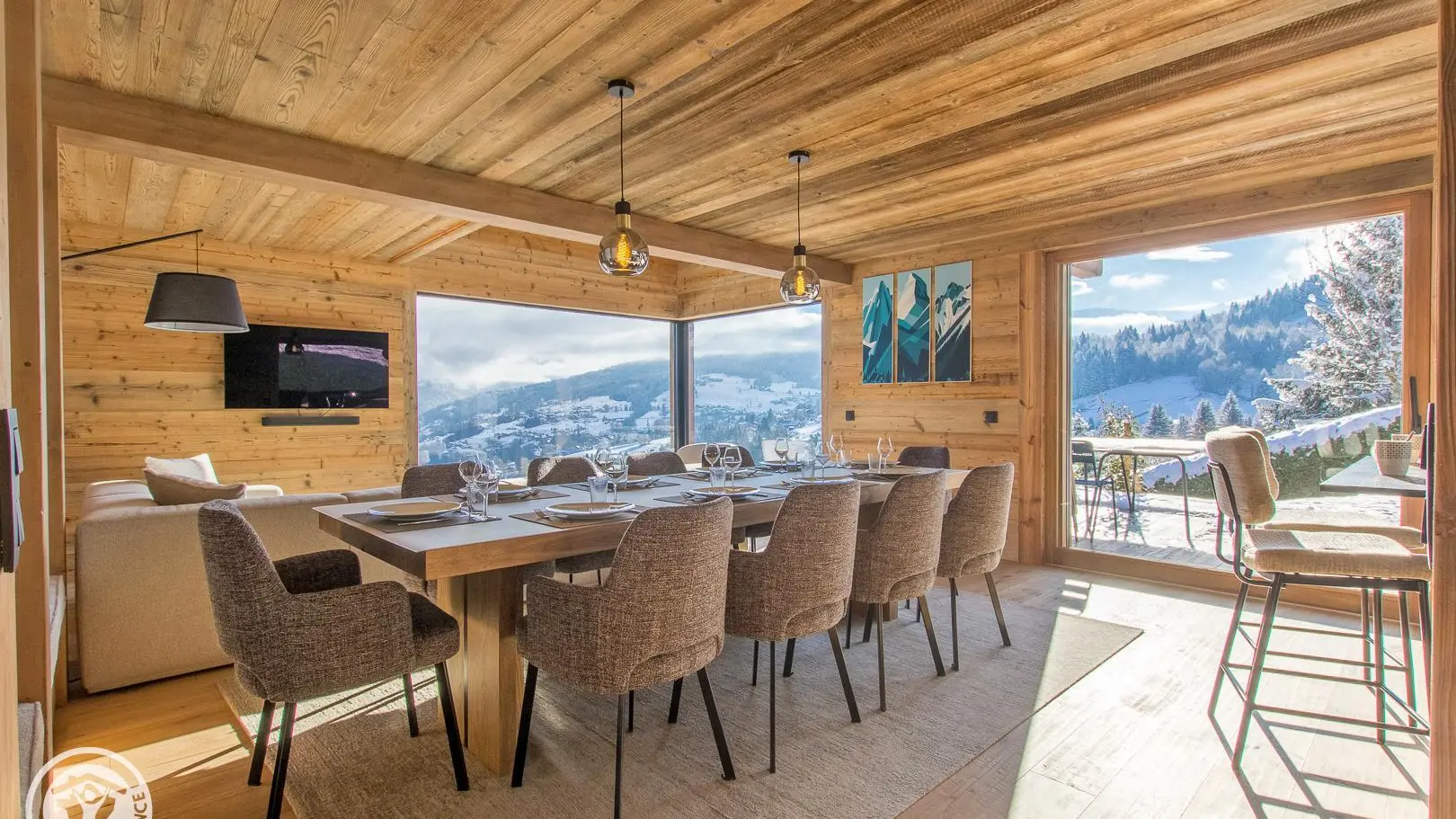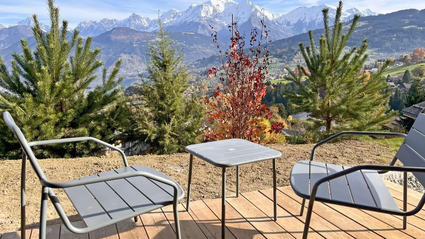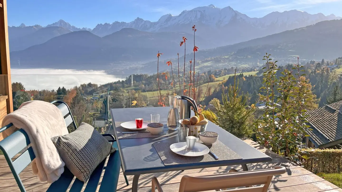 Lumineux chalet individuel de 142m2 (+garage) aux finitions haut de gamme, situé sur les hauteurs de Combloux, et bénéficiant d'une vue époustouflante sur la vallée et les massifs environnants : Mont-Blanc, Fiz.