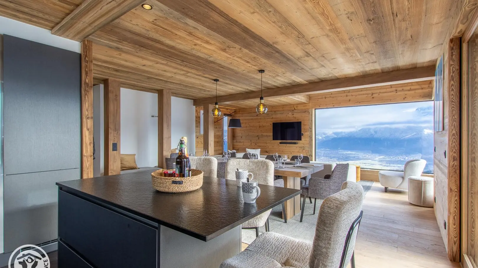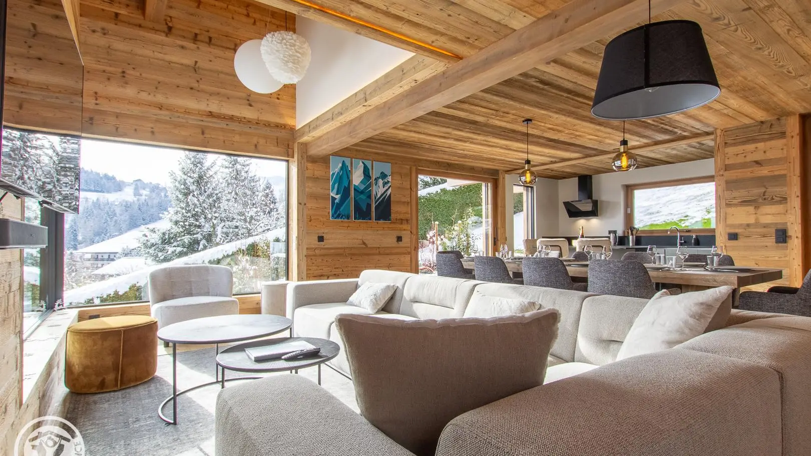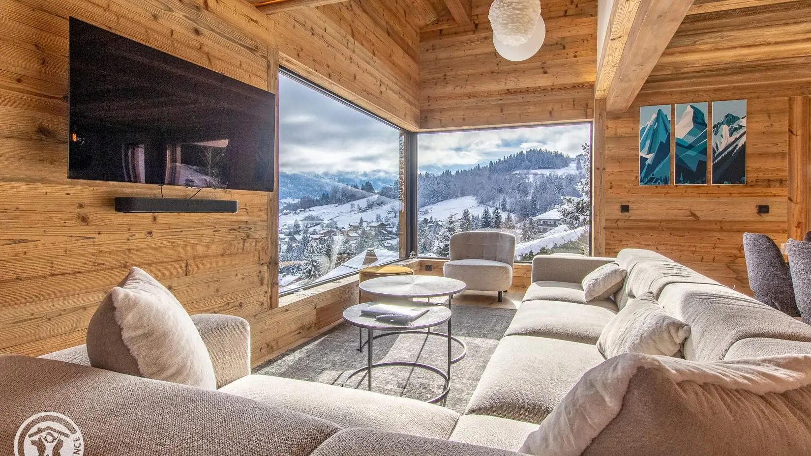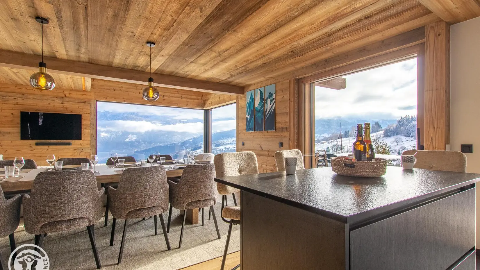 Lumineux chalet individuel de 142m2 (+garage) aux finitions haut de gamme, situé sur les hauteurs de Combloux, et bénéficiant d'une vue époustouflante sur la vallée et les massifs environnants : Mont-Blanc, Fiz.