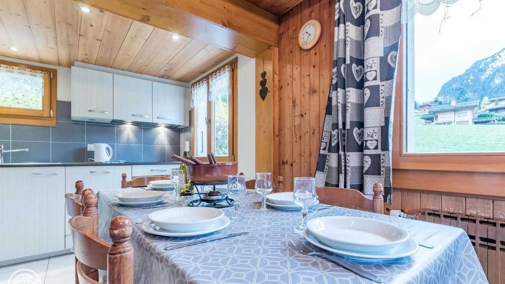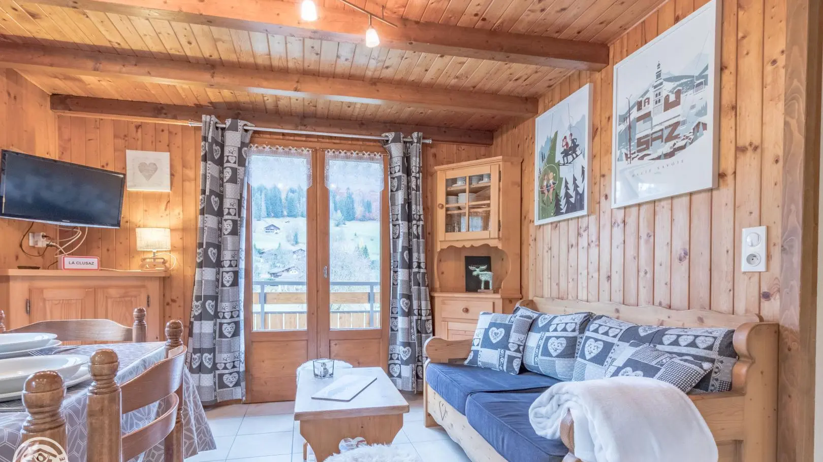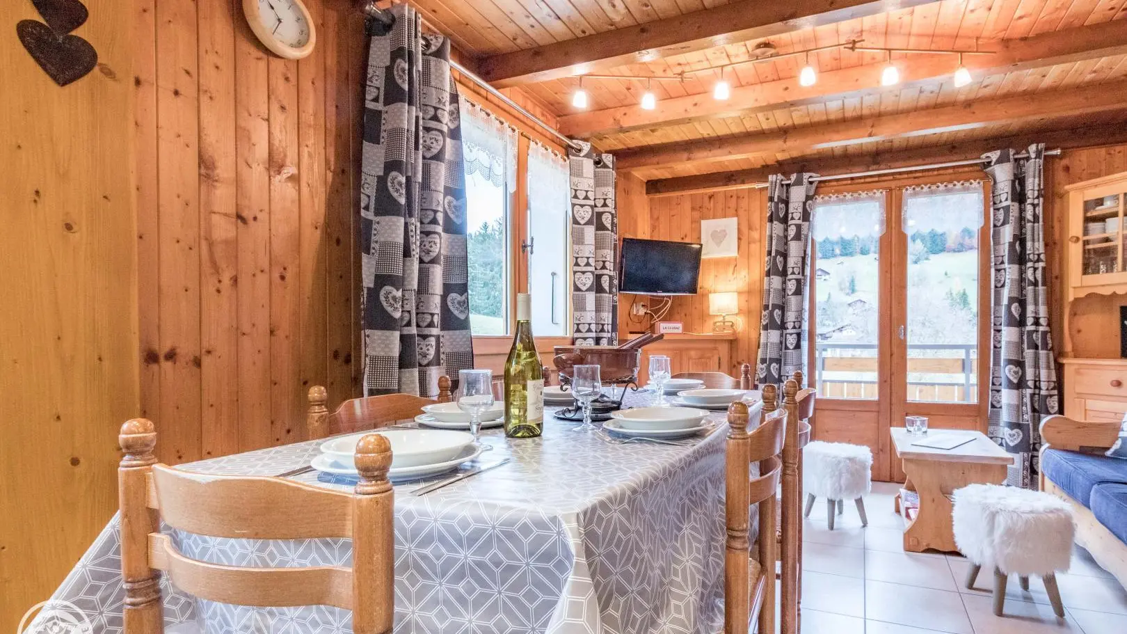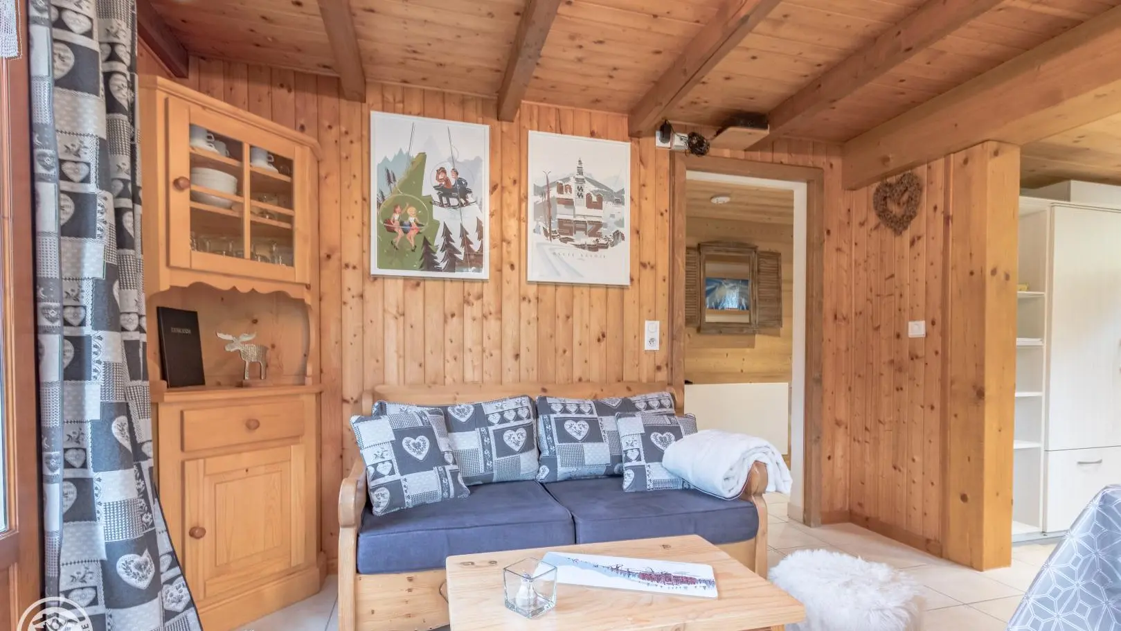 Chalet indépendant (57m² + 10m² de mansardes) avec vue panoramique sur le Massif de l' Etale et de Beauregard, à proximité des pistes et des nombreux sentiers de randonnées. Ambiance montagne. Rez-de-chaussée : hall d'entrée, cuisine ouverte sur séjour (écran plat) avec accès balcon/terrasse et jardin autour du chalet, Chambre 1 (1 lit 140 + 1 lit 90), salle d'eau (douche), WC indépendant. A l'étage : Chambre 2 (2 lits 90 jumelables), coin nuit (1 lit 90), WC indépendant avec lave-mains. Draps fournis. Garage. Salon de jardin, barbecue. Ski de piste 600m, fond 5km, navettes gratuites à 500m, centre station 2,5km, Thônes 15km, Lac d'Annecy (baignade) 29km, Annecy 34km. 1 seul animal accepté.
