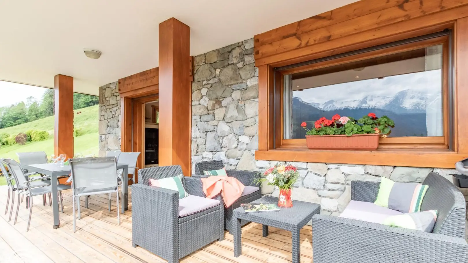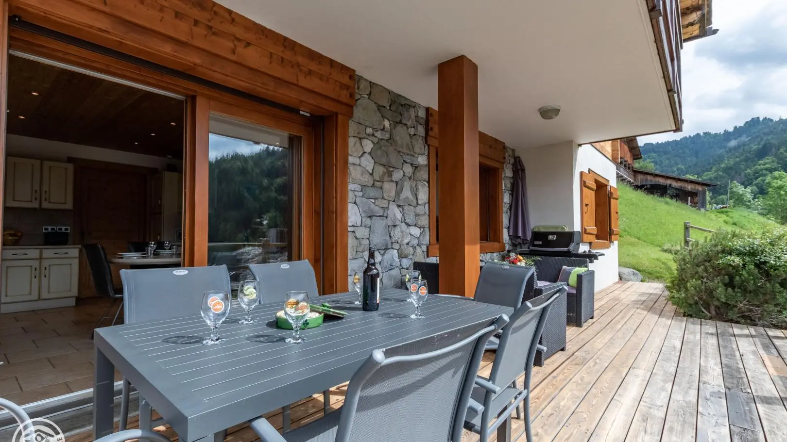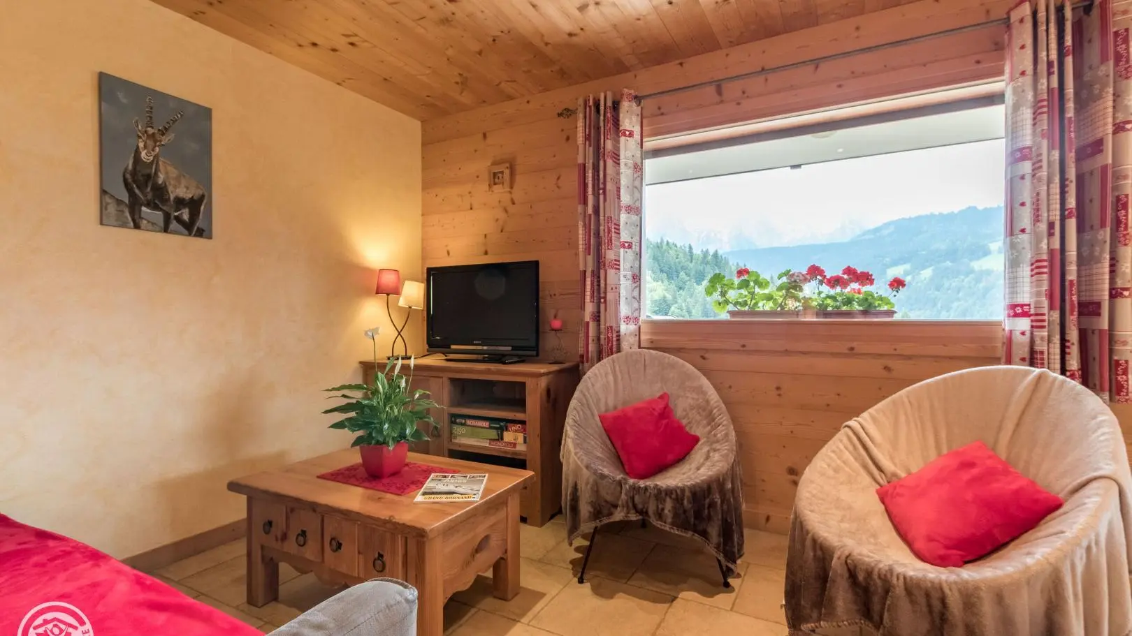 Exposé plein sud, vue dégagée sur la chaîne des Aravis et les pistes de ski. Chalet comprenant 2 gîtes. Gîte de 80m² au rez de jardin (accès par quelques marches). Cuisine intégrée ouverte/séjour (TV LCD, DVD, canapé rapido), sdb (douche, baignoire, lave linge, sèche linge), ch1 (1 lit 160 x 200 et 1 lit 90 x 200cm, TV), ch2 (2 lits 90 x 190 superposés et 1 lit 90 x 200cm), WC. Terrasse avec salon de jardin, barbecue. Pour votre confort draps, linge de toilette sont fournis et les lits sont faits. Le chalet se situe entre le Grand - Bornand village (2min) et le Grand- Bornand Chinaillon (4min). Navette gratuite à 100m. A proximité: patinoire, piscine (été), base de loisirs, domaine skiable, commerces. A découvrir tous les Massifs des Aravis ,Annecy et son lac 33 km, Chamonix 80km .
