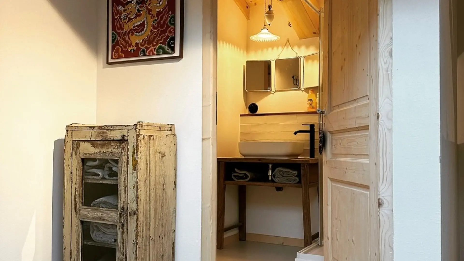 Au 1er étage: un bureau avec lits superposés et placard, deux chambres doubles et une salle de bains.