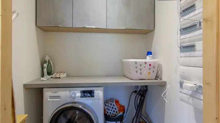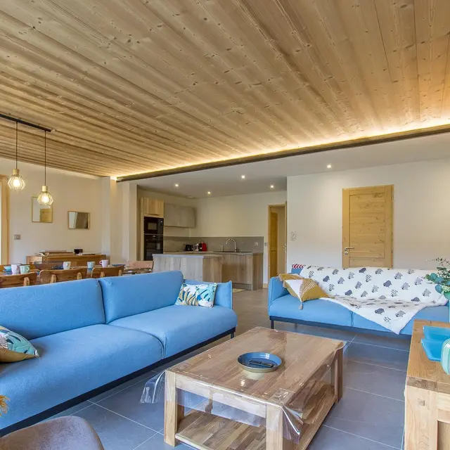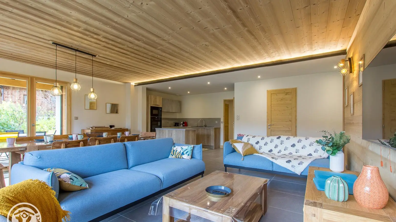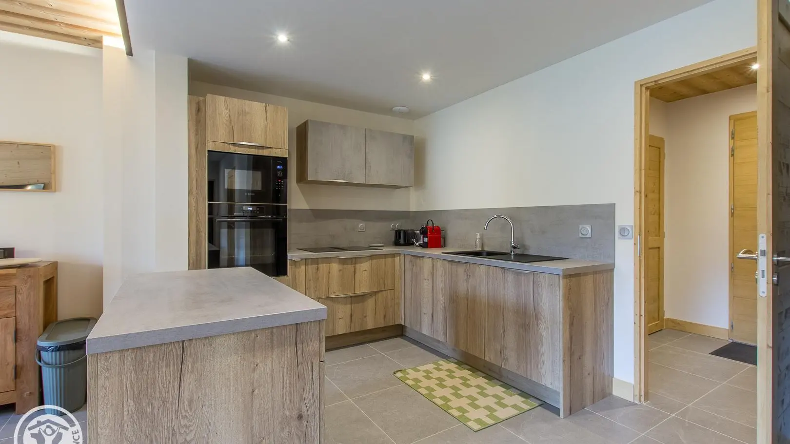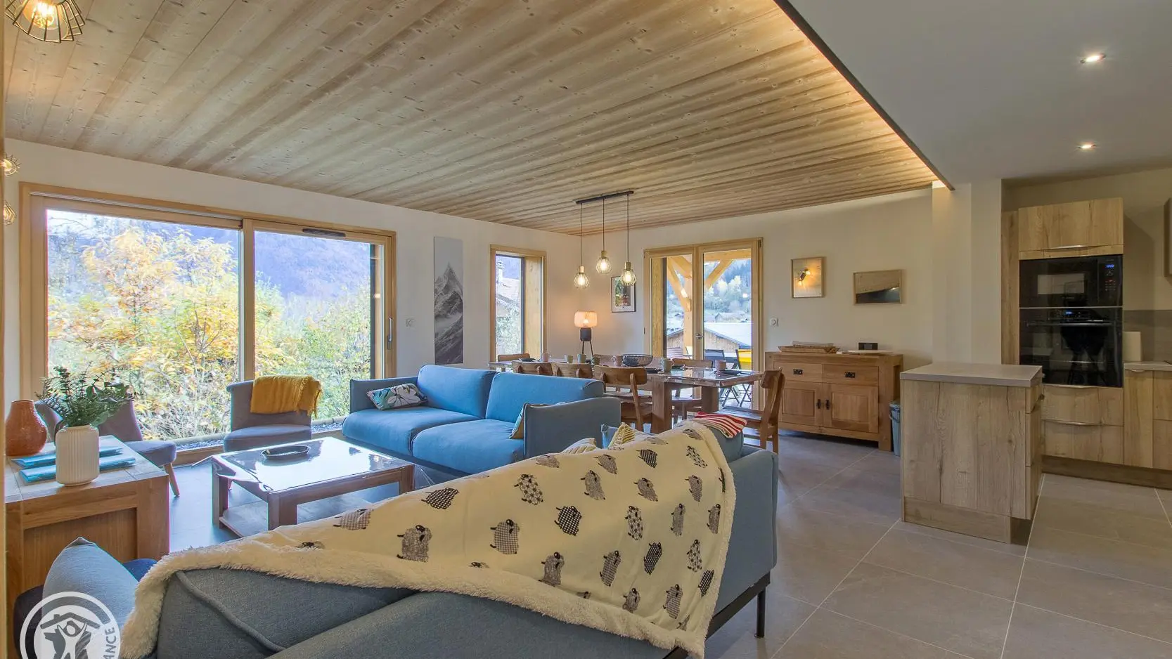 - Cuisine intégrée ouverte sur une grande pièce de vie (espace repas, coin salon avec Tv, enceinte connectée).