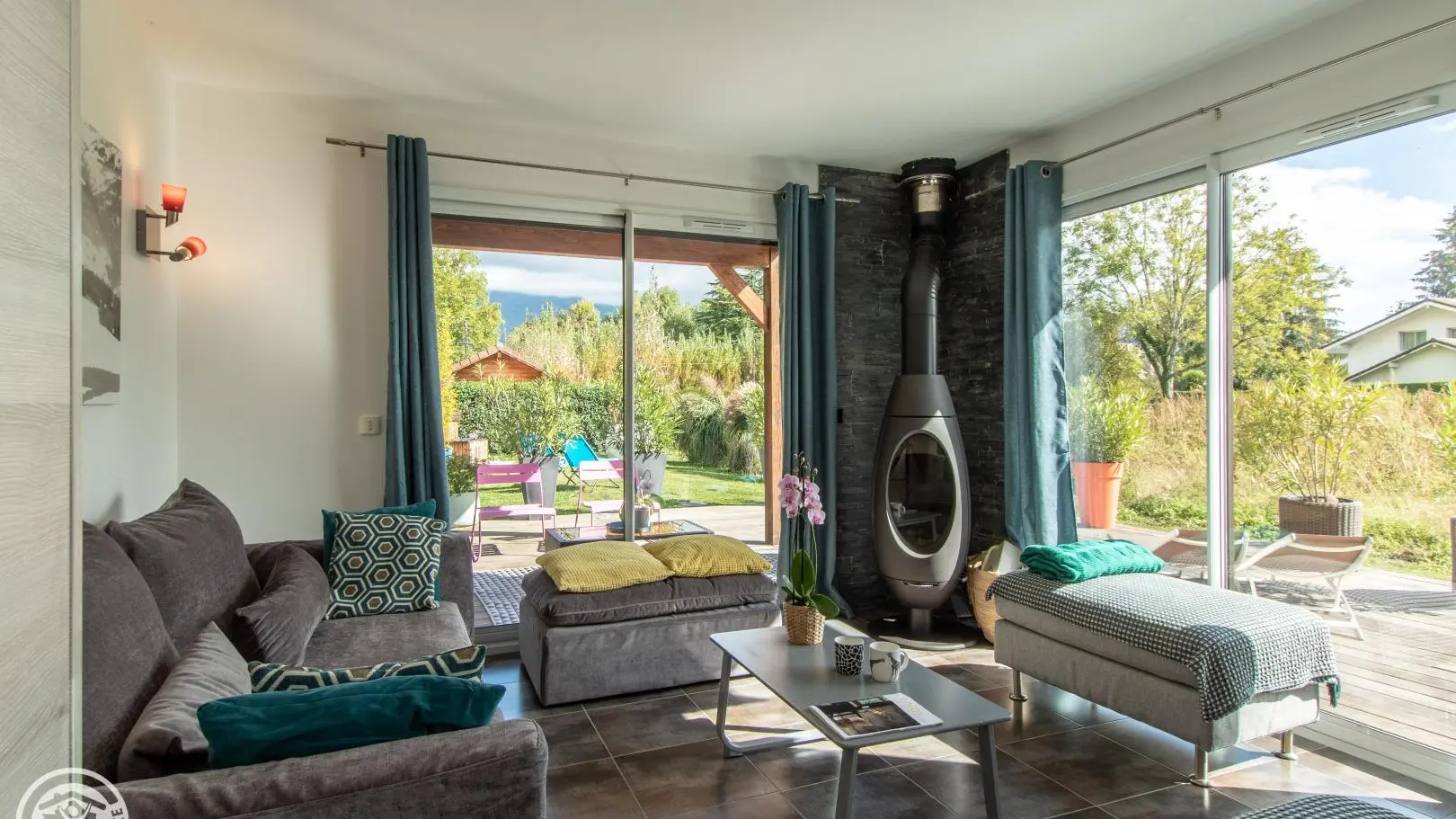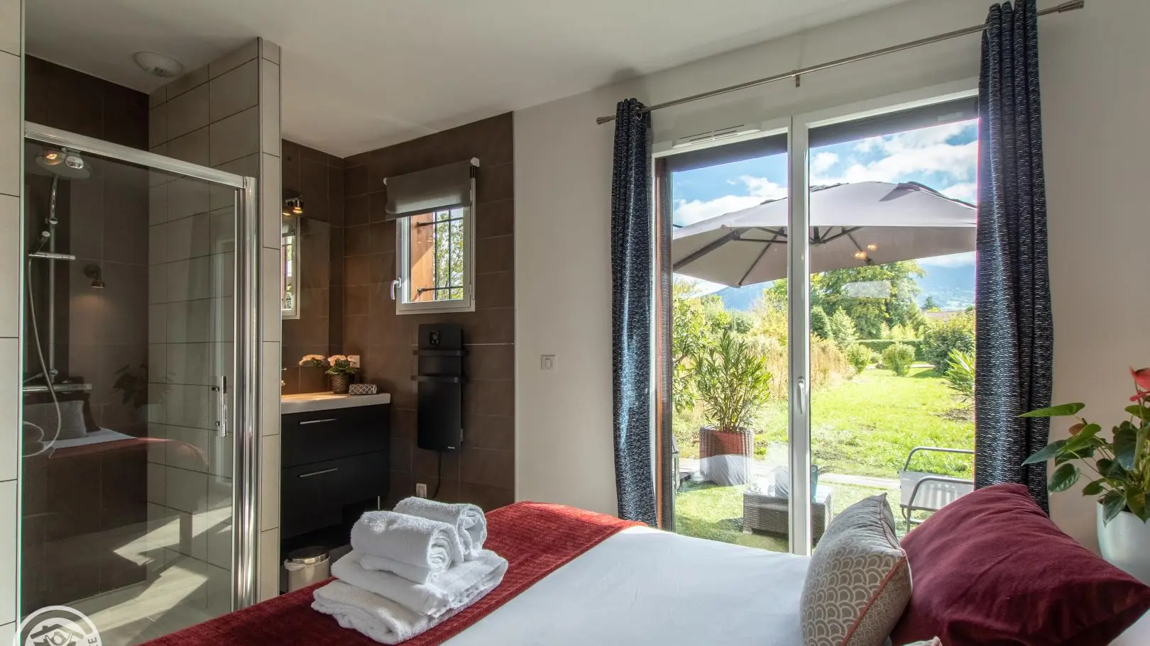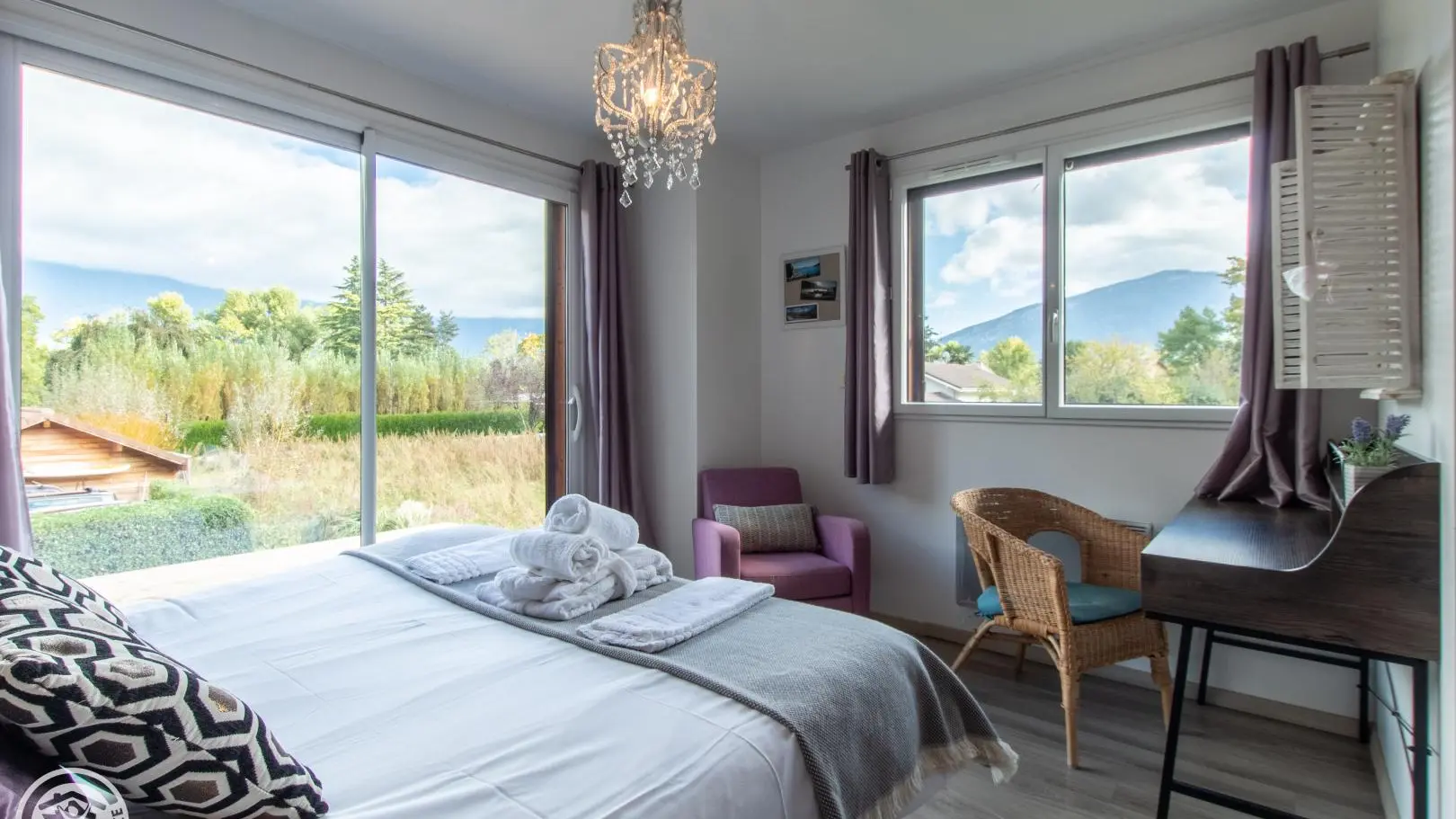 Terrasses côté sud avec grande table, barbecue gaz, transats, parasols, store-banne. Terrasse abritée (est) équipée d'un salon d'extérieur. SPA extérieur (attention : n'est pas en fonctionnement du 01/12 au 30/04). Buanderie (lave-linge, sèche-linge) accessible par la terrasse à l'arrière de la maison. Accès par portail et chemin commun avec une maison voisine située derrière le gîte. Stationnement sur parking privatif, possibilité d'accéder en voiture jusqu'à l'entrée. Recharge voiture électrique sur prise classique. Les draps, le linge de maison et de toilette sont fournis. Lits faits à votre arrivée. Animaux acceptés (doit impérativement être signalé à la réservation). Voisinage direct avec une zone bio culture. Vue montagnes (massif des Aravis, Borne, Bauges). Paddle et petit équipement de sport (boules, raquettes, palmes/masque…) à disposition. Rives du Lac d'Annecy à proximité (ponton à 80m, baignade non surveillée), plage municipale de Sevrier à 1,8km accessible à vélo. Piste cyclable/voie verte à 350m pour rejoindre Annecy ou Doussard à vélo par les bords du Lac. Centre de Sevrier (commerces) à 3km, route d'Albertville avec multitude de commerces à 650m. Annecy et sa vieille-ville à 7km. Semnoz à 22km (ski de piste, fond, raquette l'hiver, randos l'été). Stations des Aravis (La Clusaz, Le Grand-Bornand) à 37km, Genève à 50km. Balades dans le PNR du Massif des Bauges. N° enreg. : 74267 000034 4C