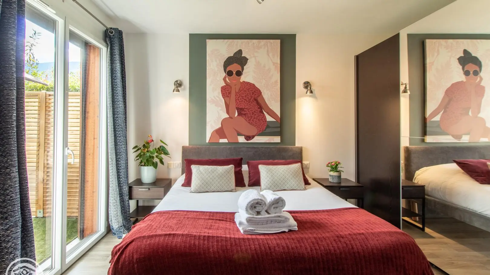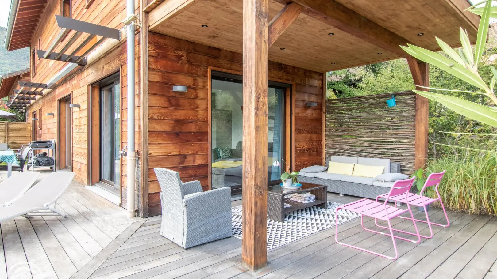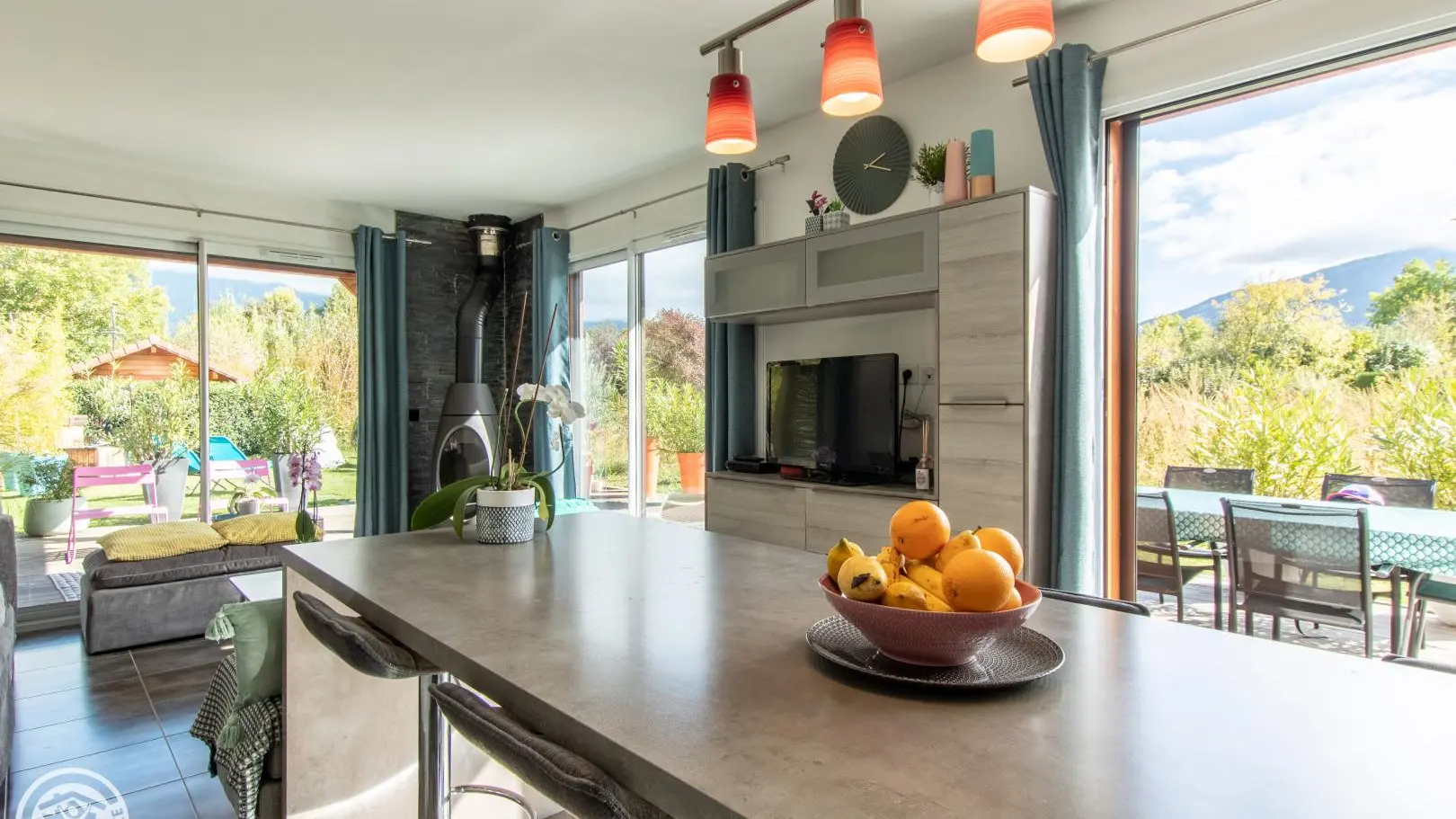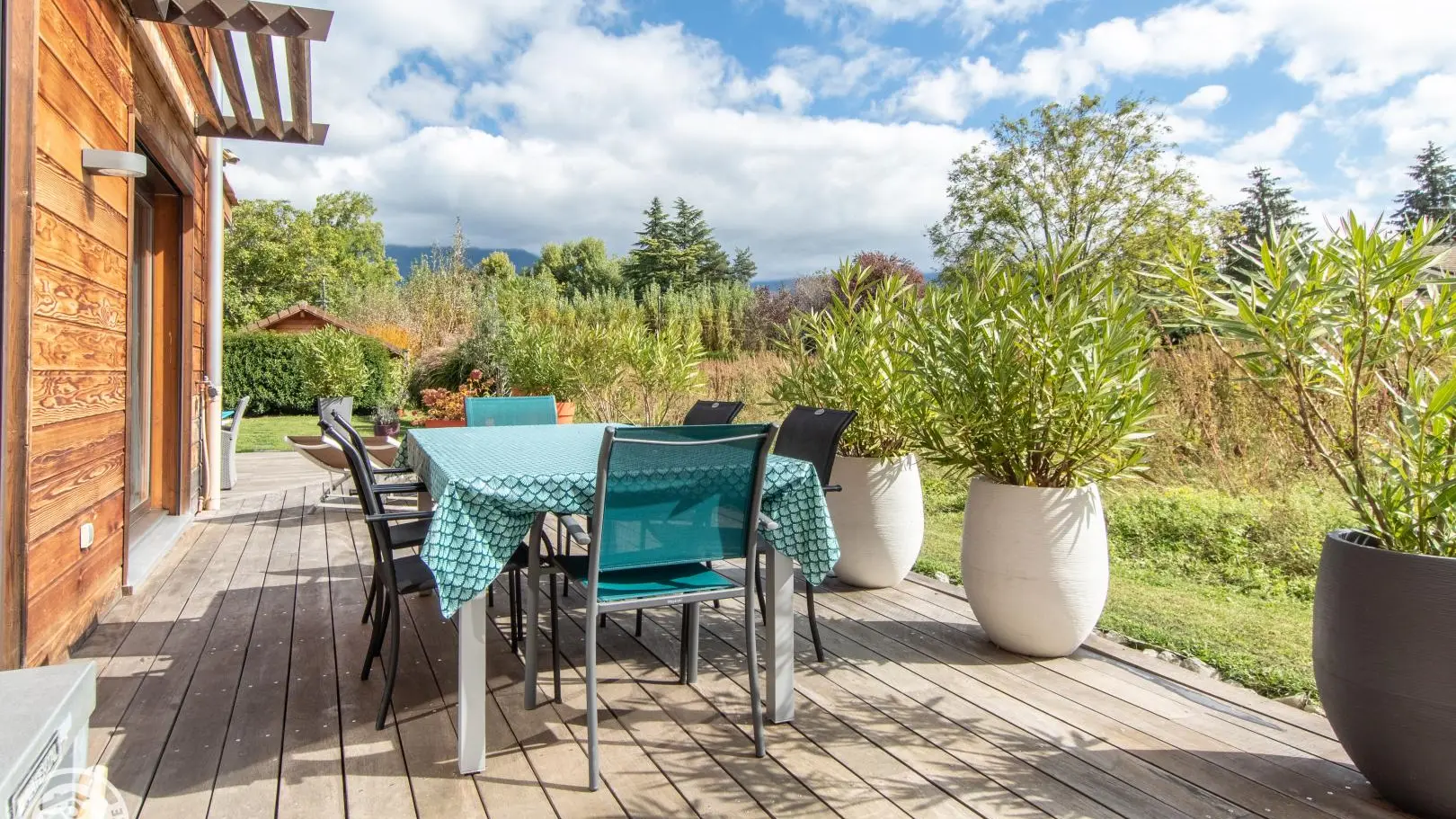 Terrasses côté sud avec grande table, barbecue gaz, transats, parasols, store-banne. Terrasse abritée (est) équipée d'un salon d'extérieur. SPA extérieur (attention : n'est pas en fonctionnement du 01/12 au 30/04). Buanderie (lave-linge, sèche-linge) accessible par la terrasse à l'arrière de la maison. Accès par portail et chemin commun avec une maison voisine située derrière le gîte. Stationnement sur parking privatif, possibilité d'accéder en voiture jusqu'à l'entrée. Recharge voiture électrique sur prise classique. Les draps, le linge de maison et de toilette sont fournis. Lits faits à votre arrivée. Animaux acceptés (doit impérativement être signalé à la réservation). Voisinage direct avec une zone bio culture. Vue montagnes (massif des Aravis, Borne, Bauges). Paddle et petit équipement de sport (boules, raquettes, palmes/masque…) à disposition. Rives du Lac d'Annecy à proximité (ponton à 80m, baignade non surveillée), plage municipale de Sevrier à 1,8km accessible à vélo. Piste cyclable/voie verte à 350m pour rejoindre Annecy ou Doussard à vélo par les bords du Lac. Centre de Sevrier (commerces) à 3km, route d'Albertville avec multitude de commerces à 650m. Annecy et sa vieille-ville à 7km. Semnoz à 22km (ski de piste, fond, raquette l'hiver, randos l'été). Stations des Aravis (La Clusaz, Le Grand-Bornand) à 37km, Genève à 50km. Balades dans le PNR du Massif des Bauges. N° enreg. : 74267 000034 4C