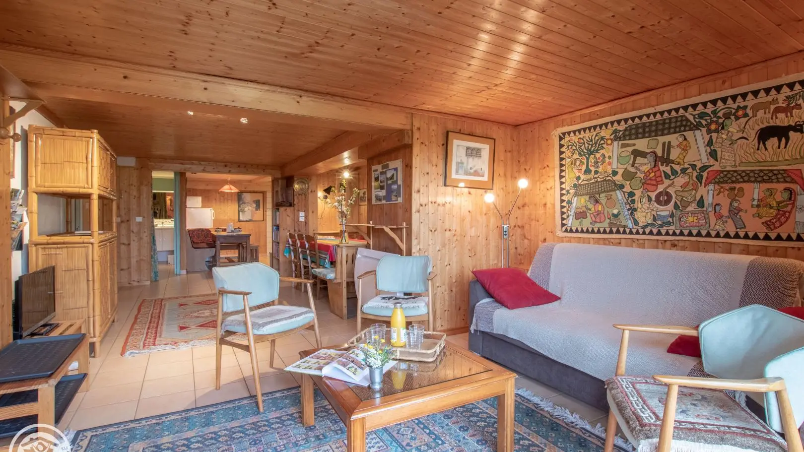 Coté soleil de la pittoresque vallée du Giffre, face au Grand Massif : gîte spacieux (74 m2), rez de jardin du chalet des propriétaires, en pleine nature. Grande pièce avec cuisine équipée, coin repas et coin salon (canapé convertible rapido 16). Chambre 1 (2 lits jumeaux 90), Chambre 2 (2 lits 90 superposés. + 1 lit 140). Salle d'eau / SAUNA, W indépendant. Grand terrain, terrasses, parking privé, barbecue, jeux enfants, piste de luge, local à skis et vélos. Réduction pour séjour 2 semaines -10%. Infos culturelles et sportives auprès de Violaine (guide patrimoine). Accès Grand Massif (270 km de pistes-ski alpin) par le Grand Massif Express (à 2.5 km). Joux- Plane (à 2.5km) : luge, raquettes, espace nordique. Ski de fond dans la vallée, à 2.5 km. A proximité des départs de nombreuses randonnées.