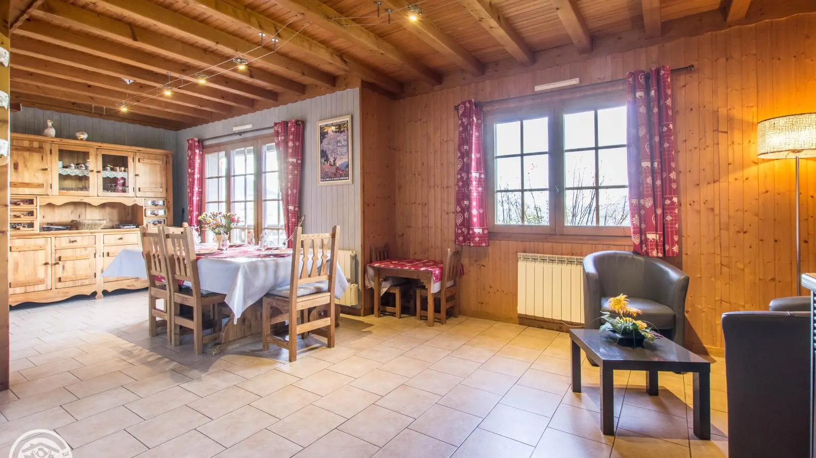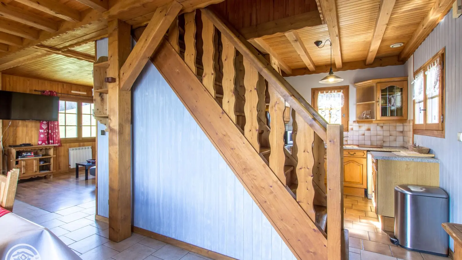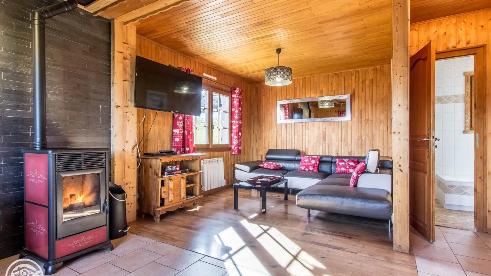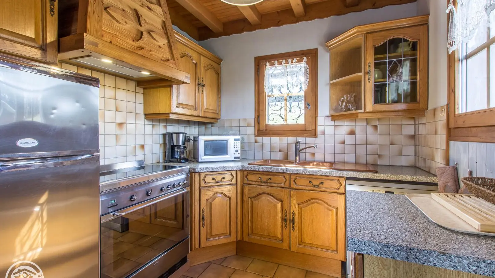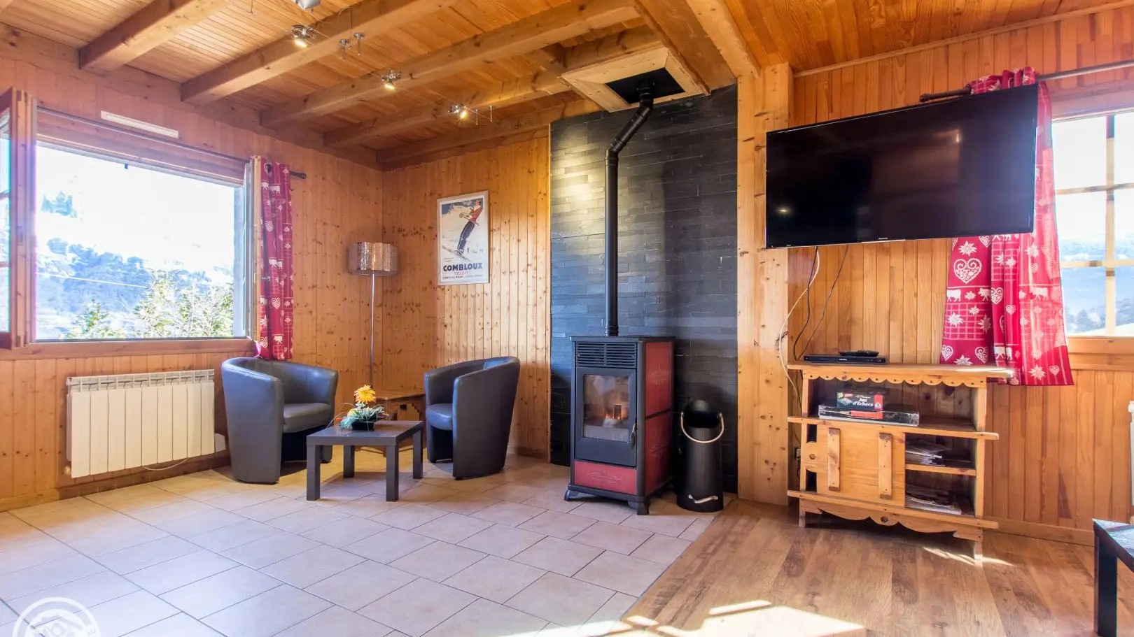 Au 1er : cuisine intégrée, séjour avec coin salon (Tv, canapé, poêle à granulés), salle de bains (baignoire), wc indépendant, balcon, terrasse face Mont-Blanc (parasol, table forestière, plancha).