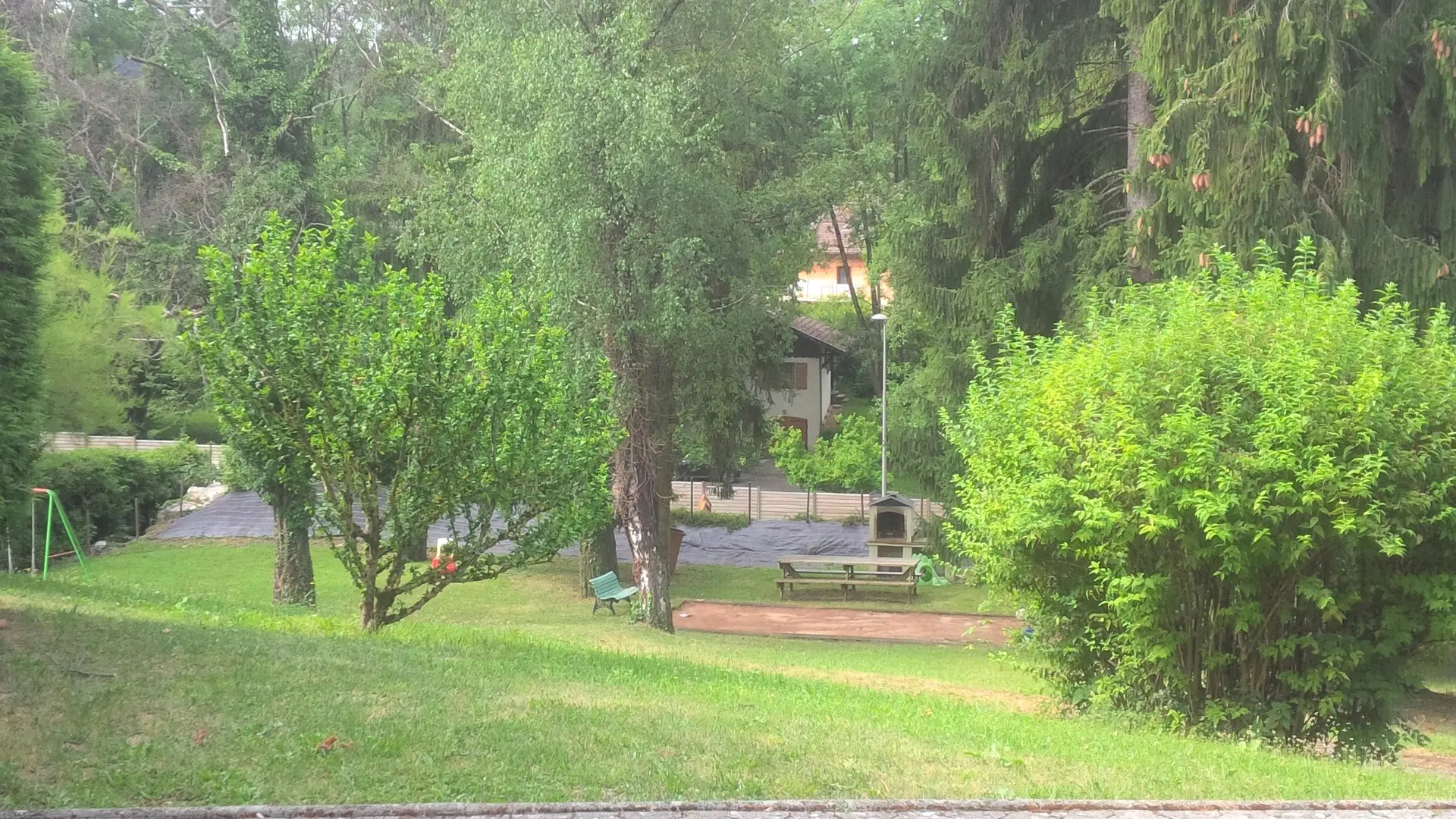 Parc commun avec espace-jeux (portique, jeux pour tout-petits et grands, tennis de table, terrain de boules etc...).