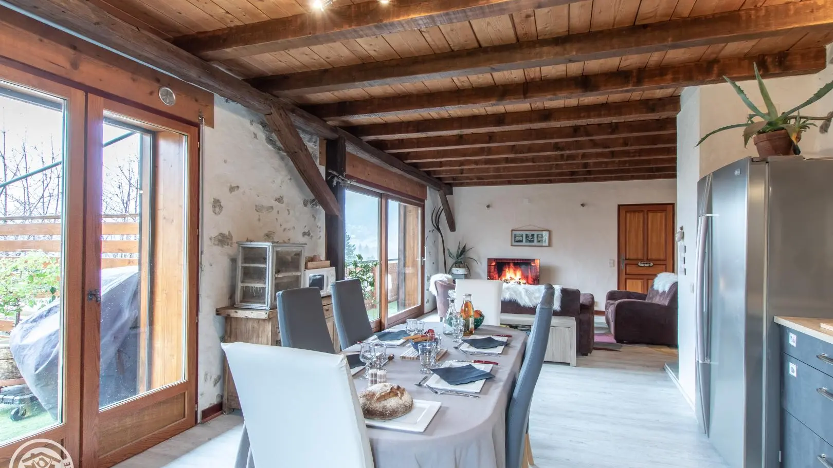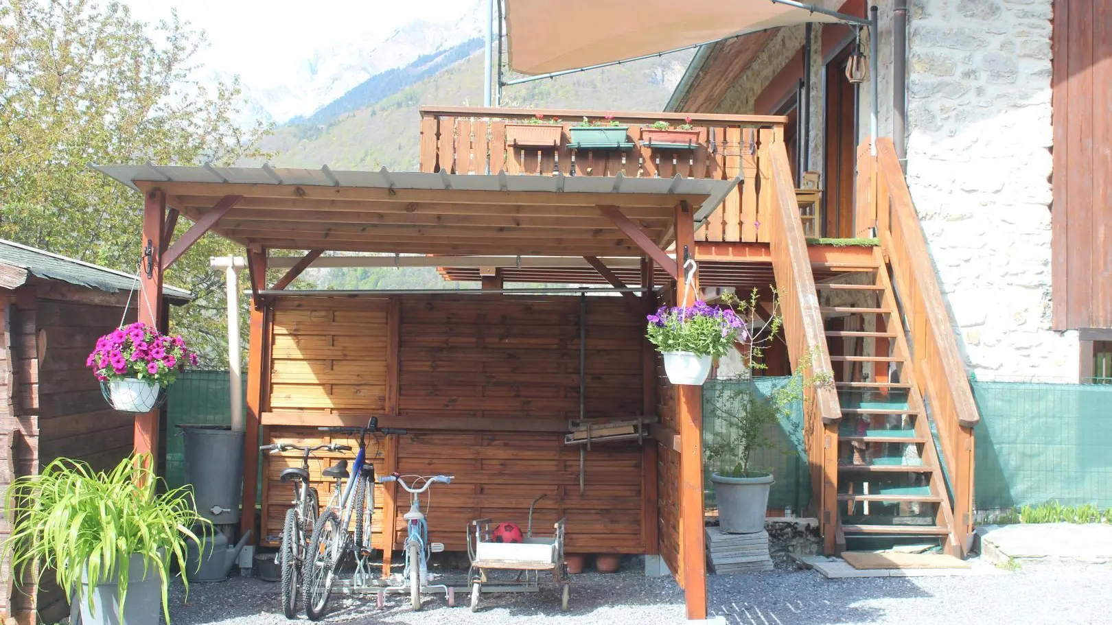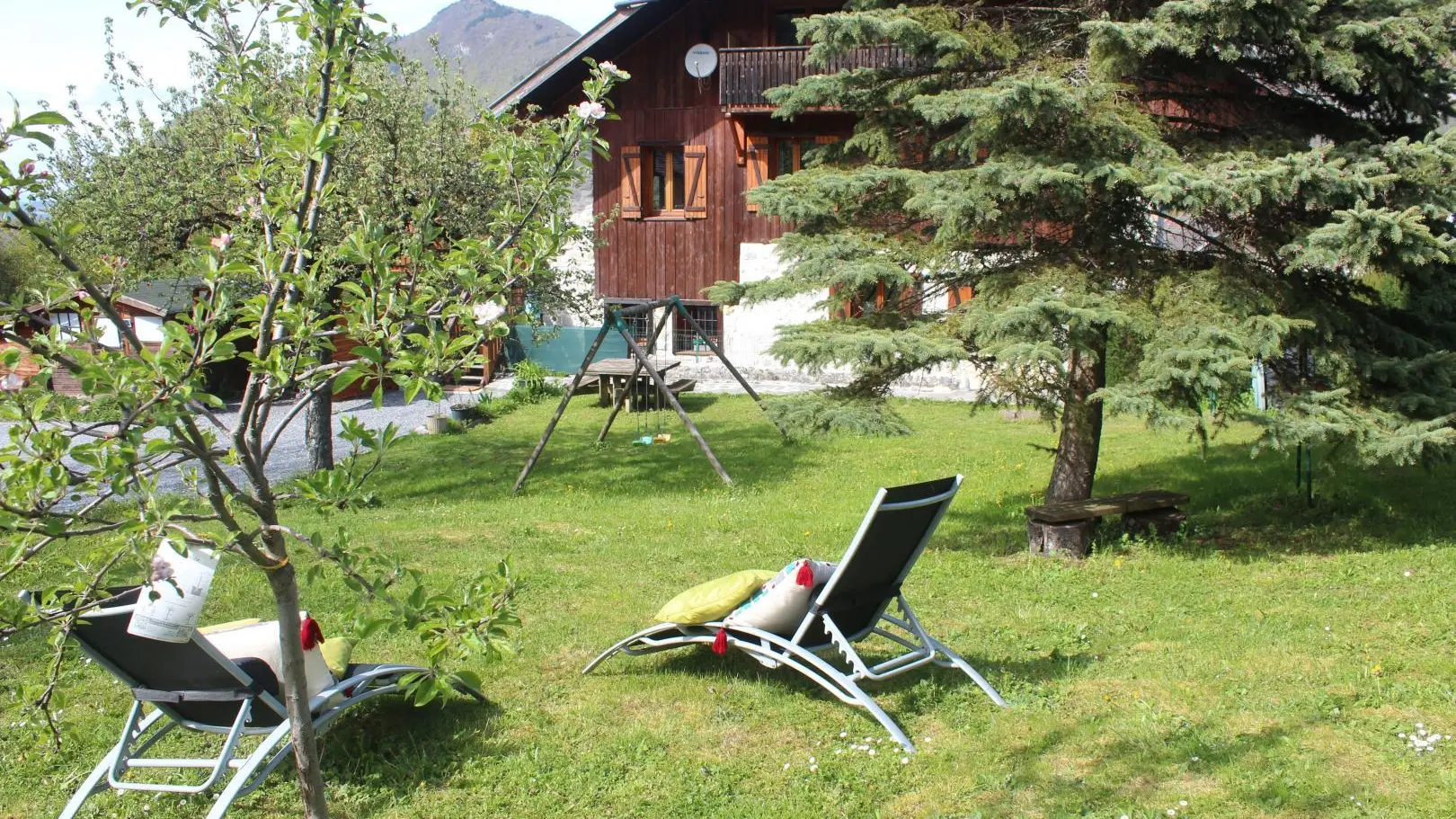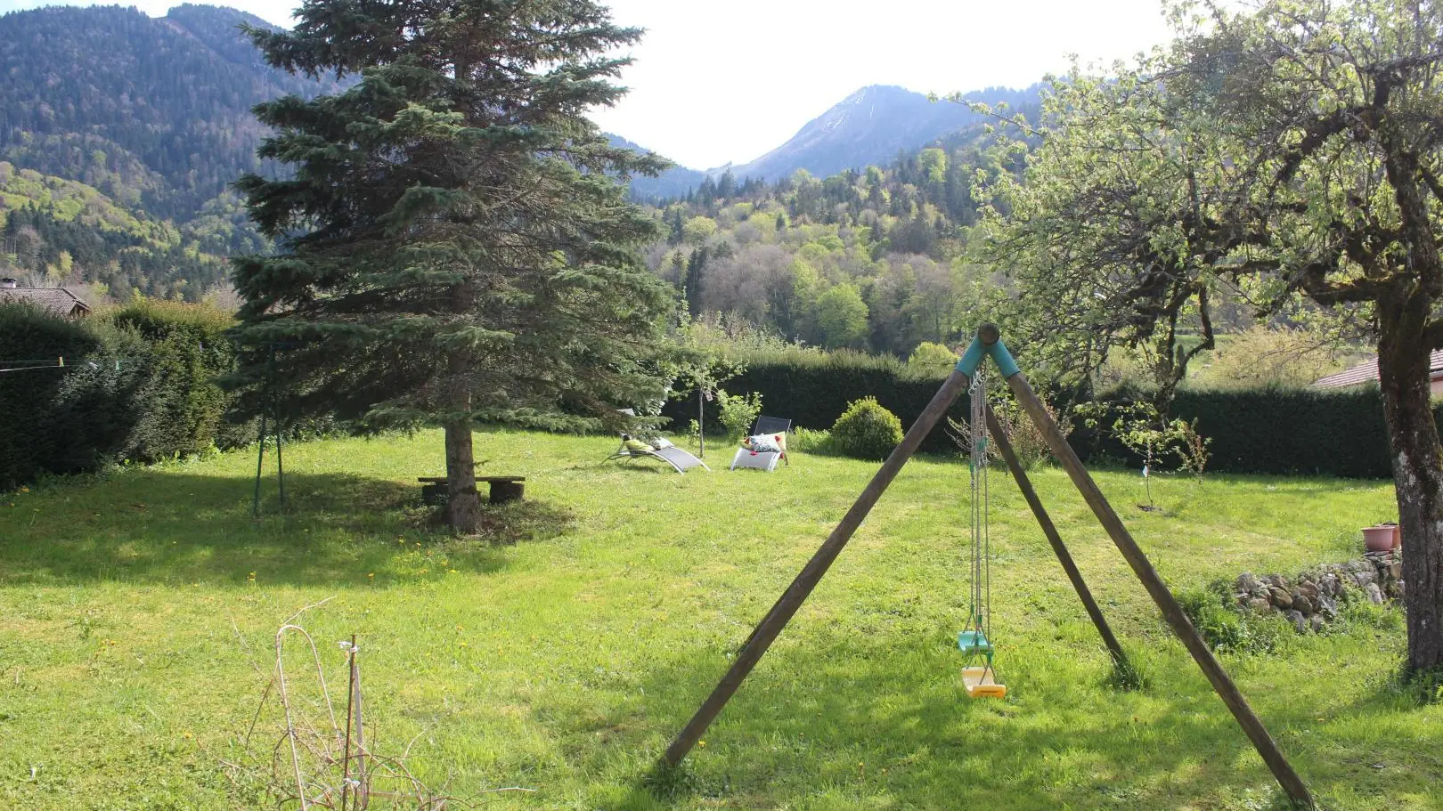 Terrasse avec table extérieure et barbecue gaz. Mobilier de jardin, transats… disponibles sur le terrain. Vaste parking à proximité. Maison située dans un hameau en retrait de la route départementale entre Faverges et Doussard. -10% pour un séjour de 2 semaines.