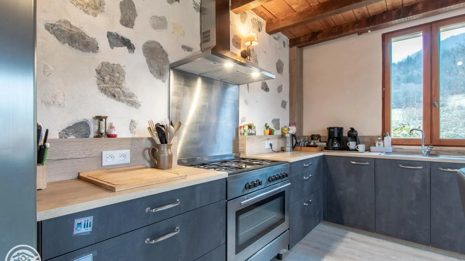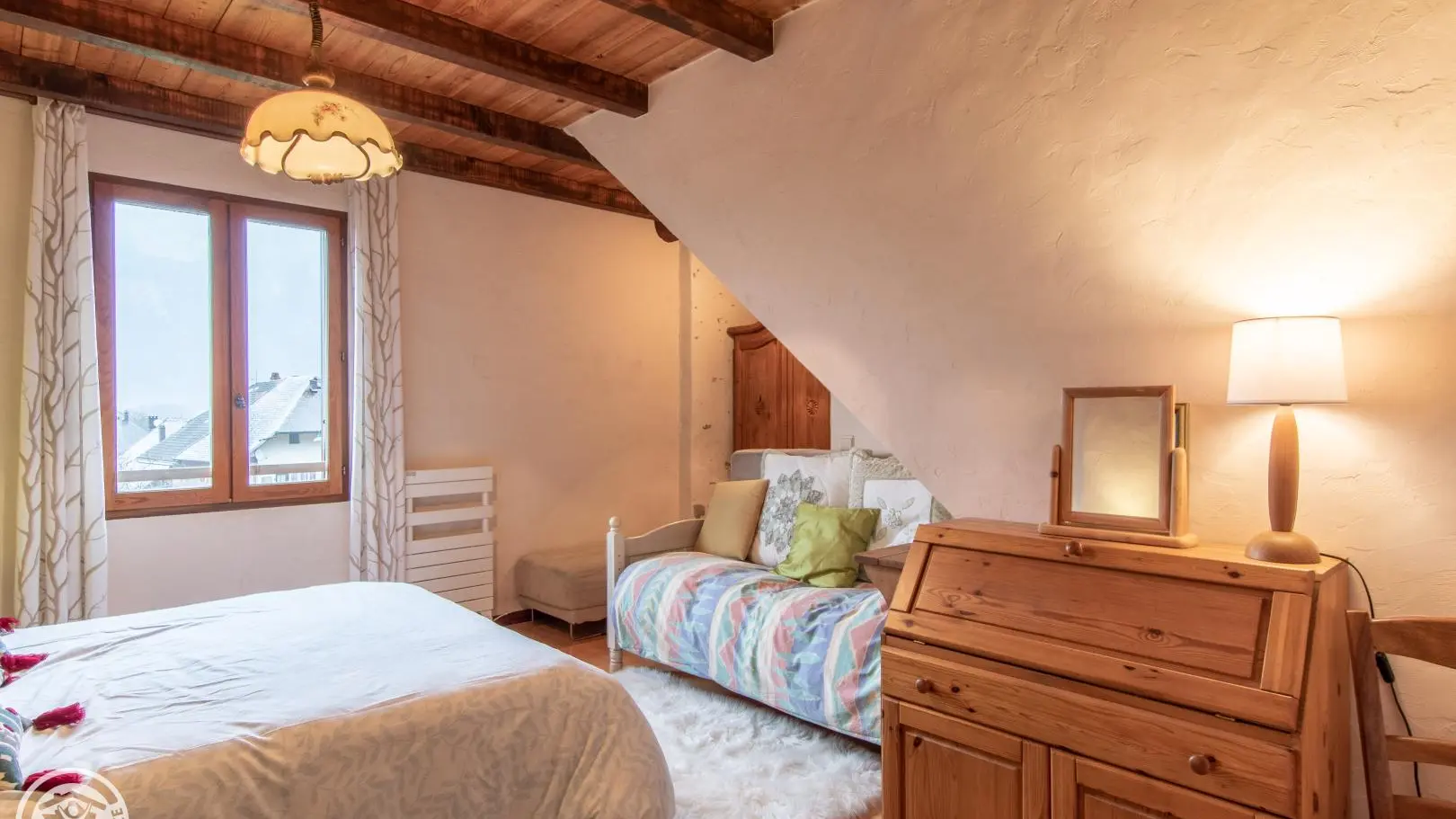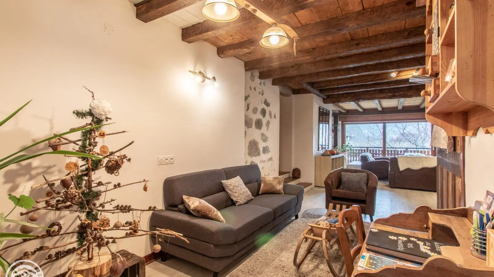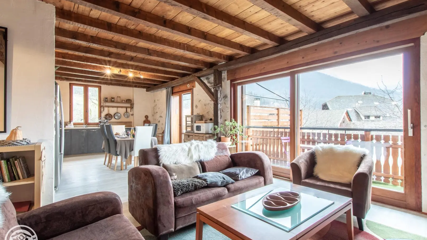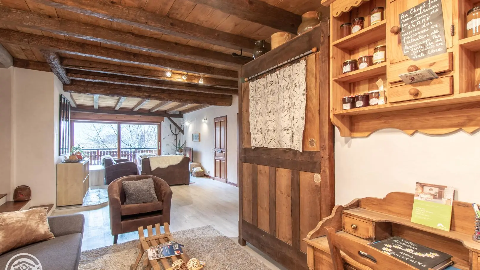 Terrasse avec table extérieure et barbecue gaz. Mobilier de jardin, transats… disponibles sur le terrain. Vaste parking à proximité. Maison située dans un hameau en retrait de la route départementale entre Faverges et Doussard. -10% pour un séjour de 2 semaines.