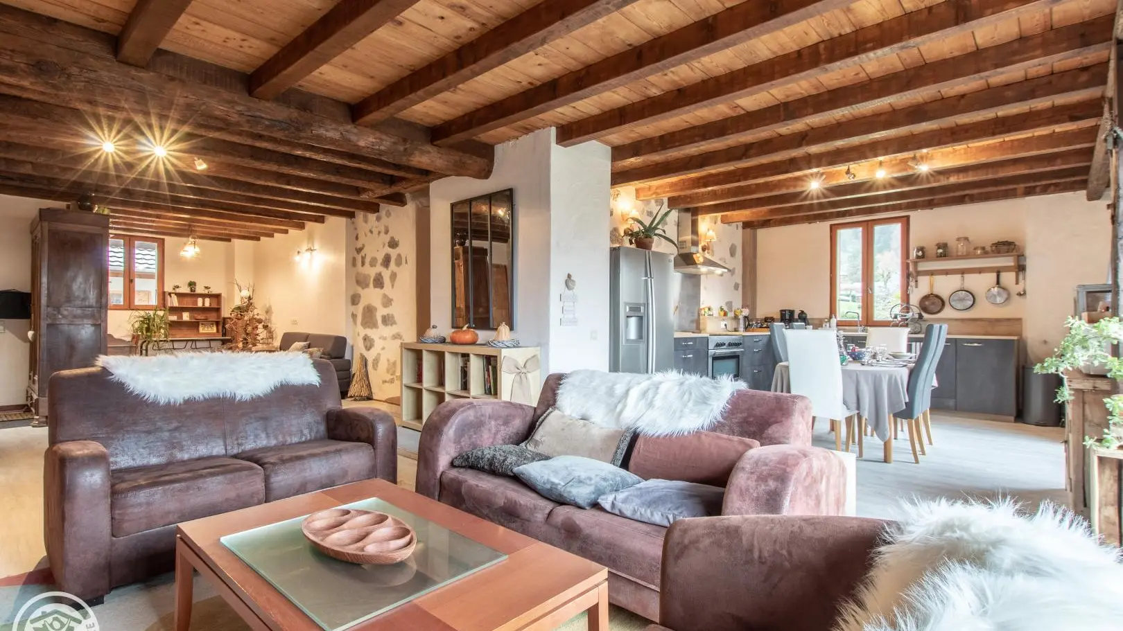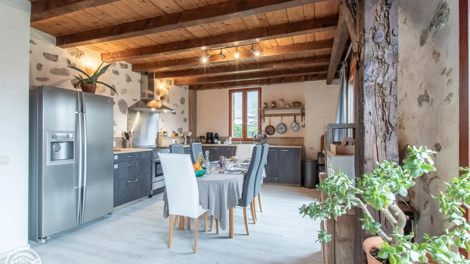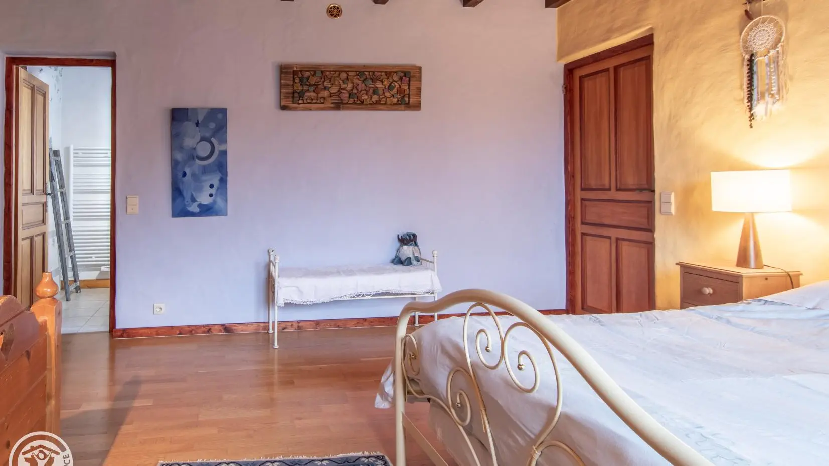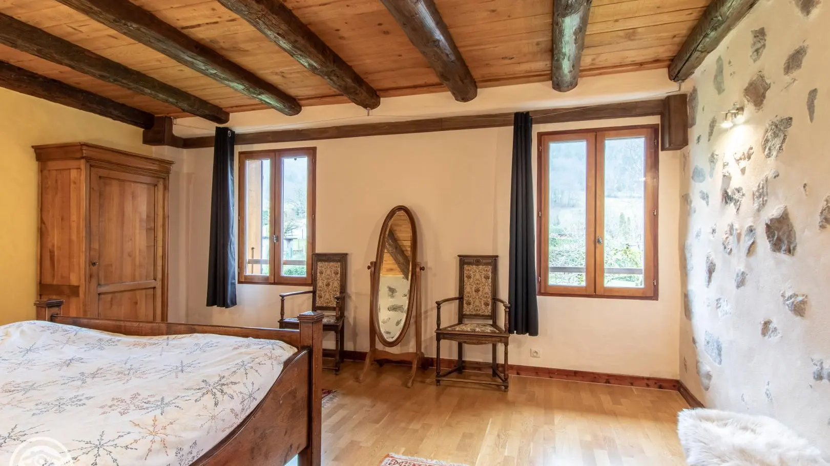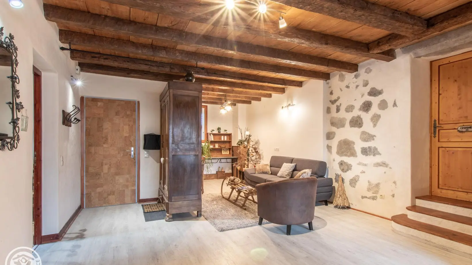 Gîte de 146m² au 1er étage d'une bâtisse comportant deux autres logements : gîte au rez-de-chaussée (accès indépendant) et une location à l'année sous les combles (accès par escalier intérieur commun).