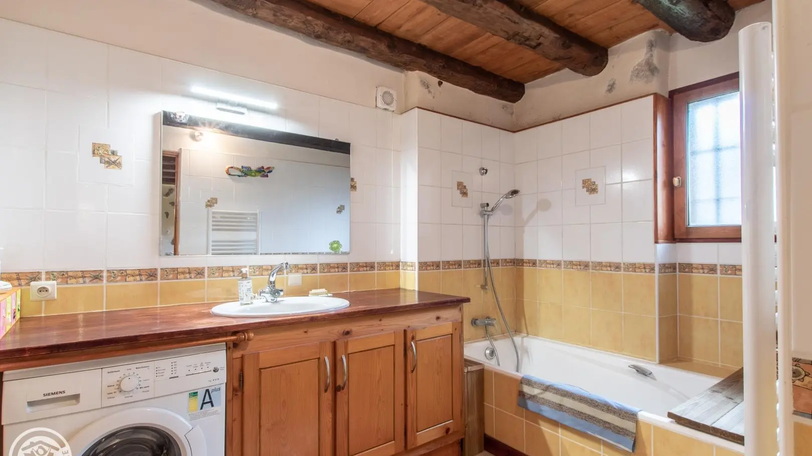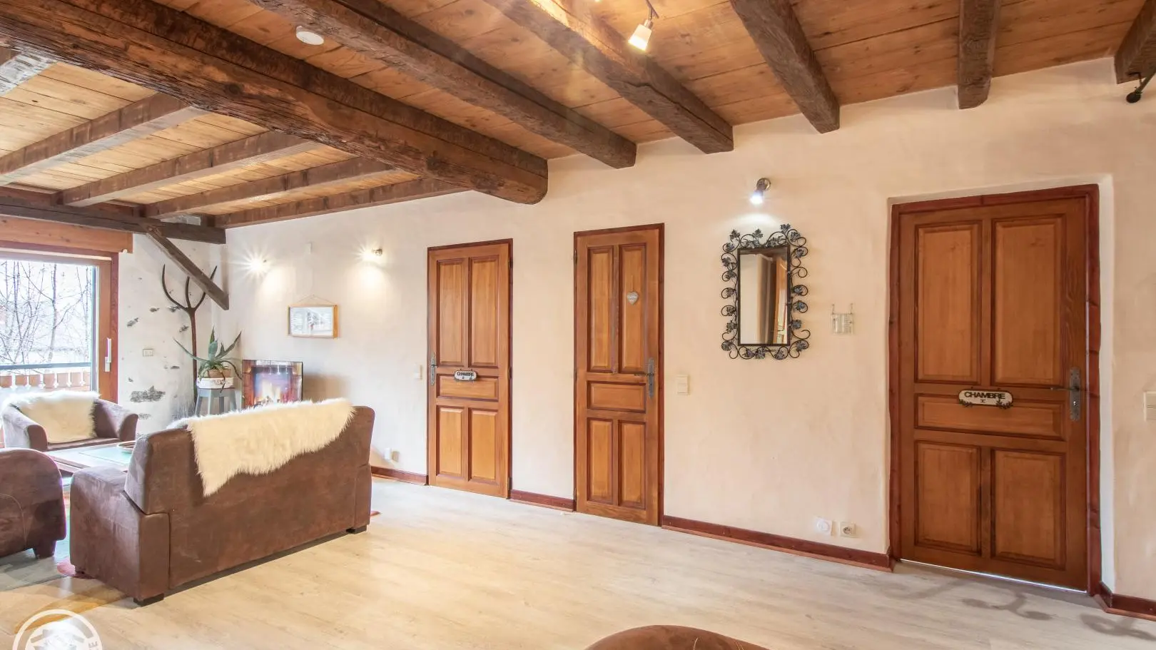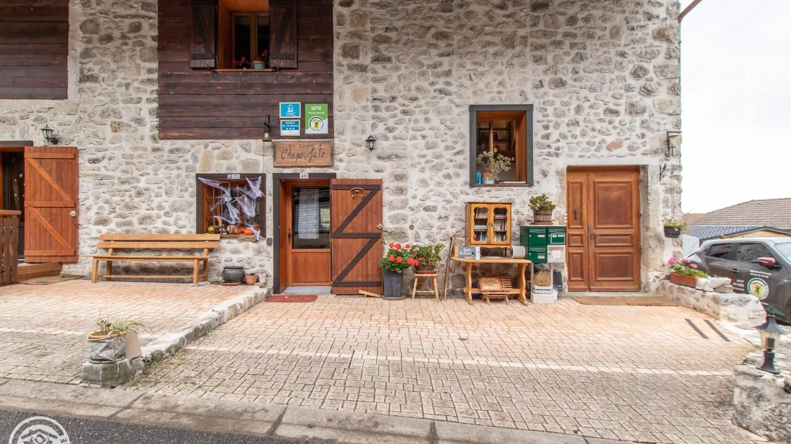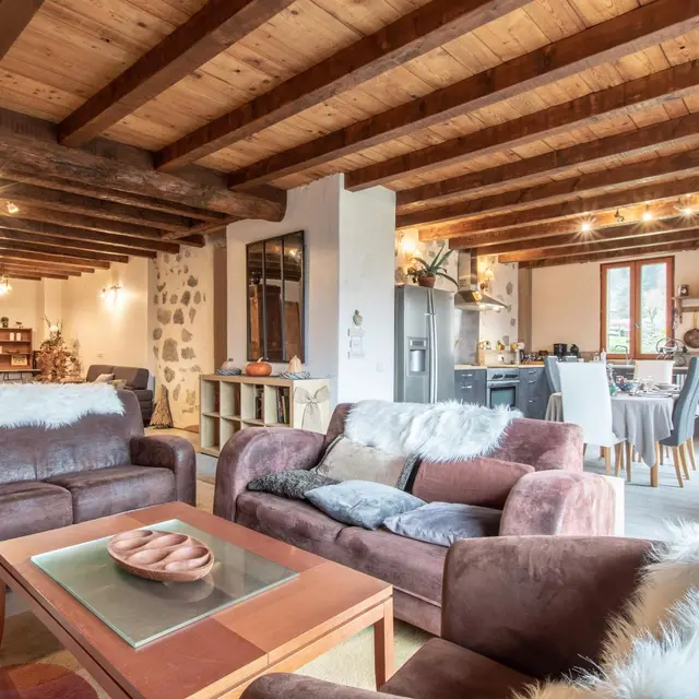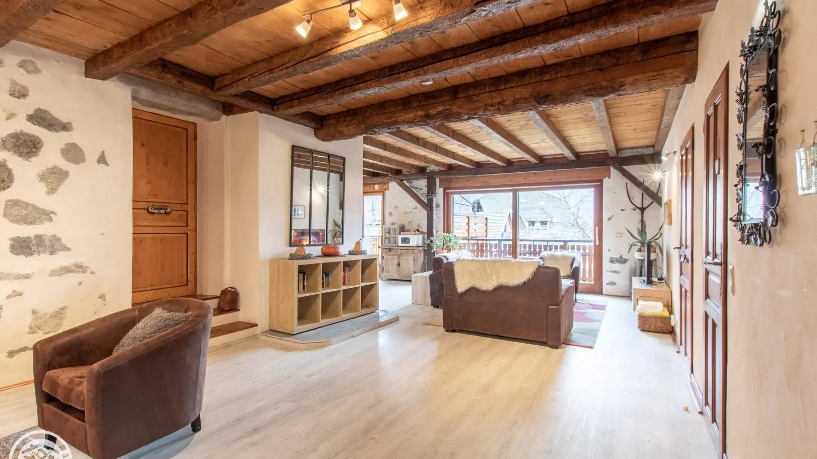 Gîte de 146m² au 1er étage d'une bâtisse comportant deux autres logements : gîte au rez-de-chaussée (accès indépendant) et une location à l'année sous les combles (accès par escalier intérieur commun).