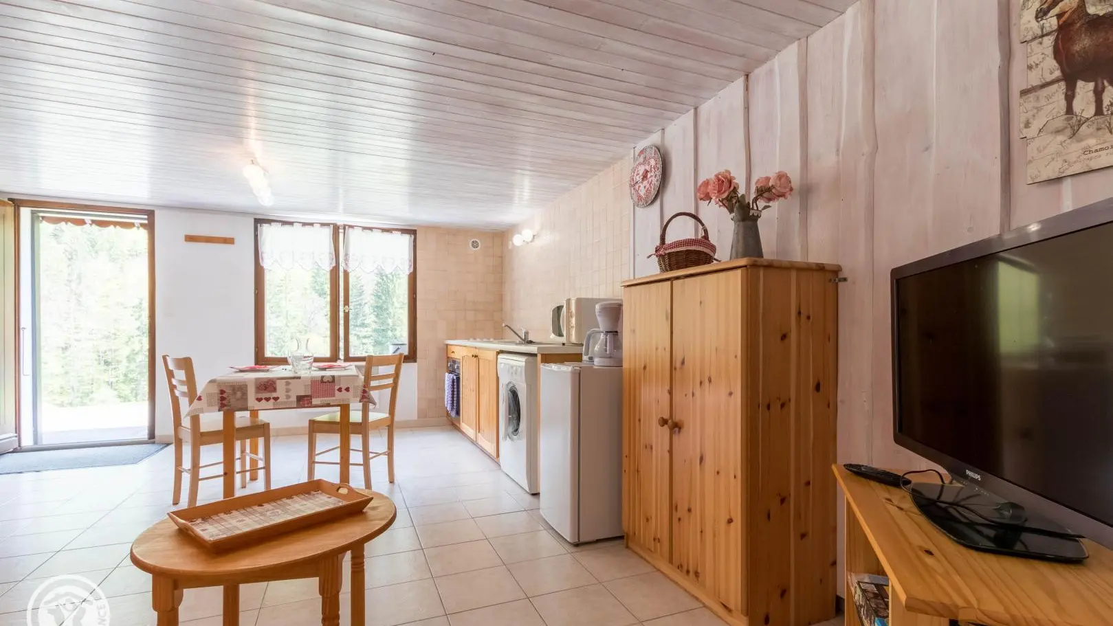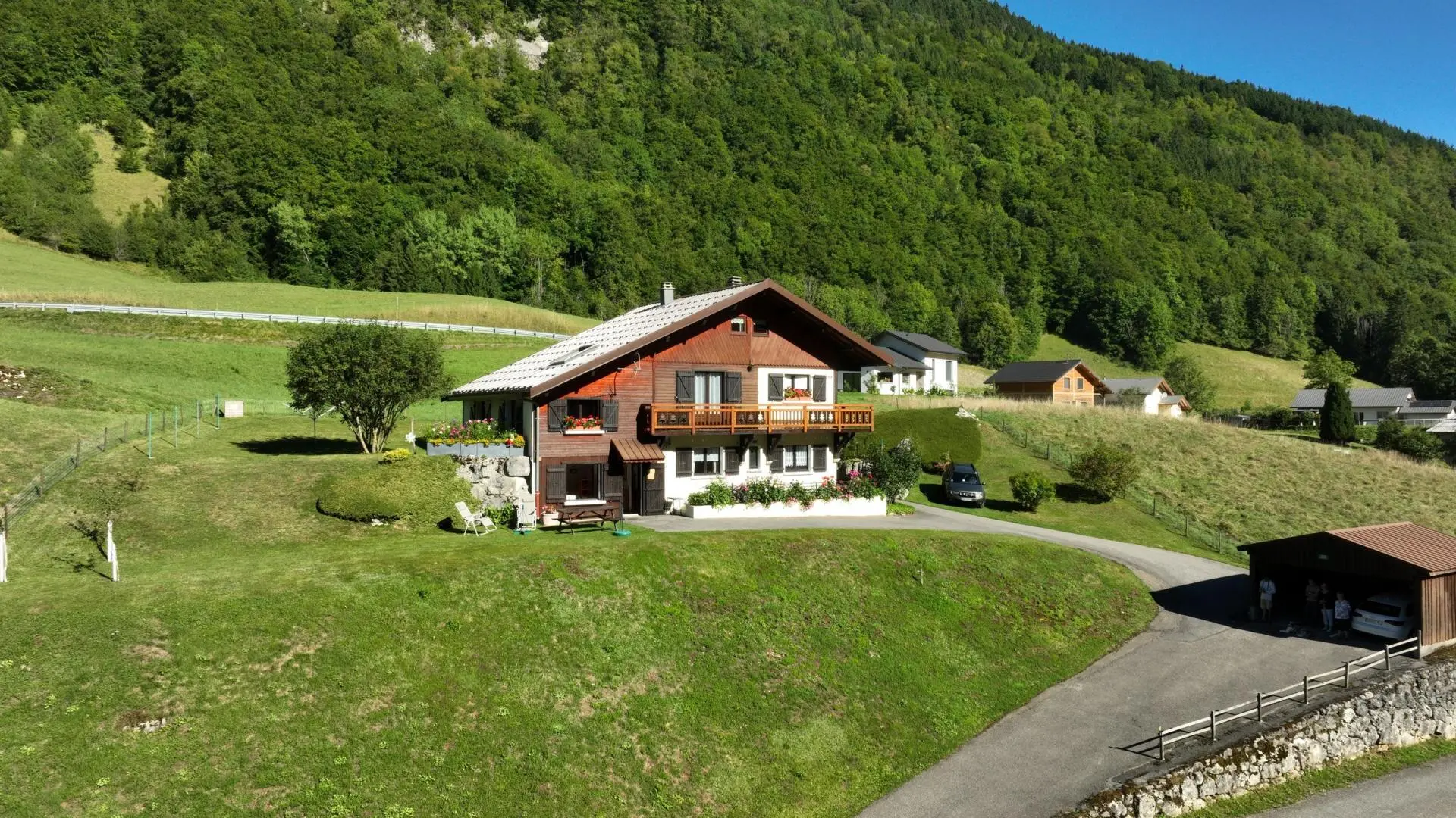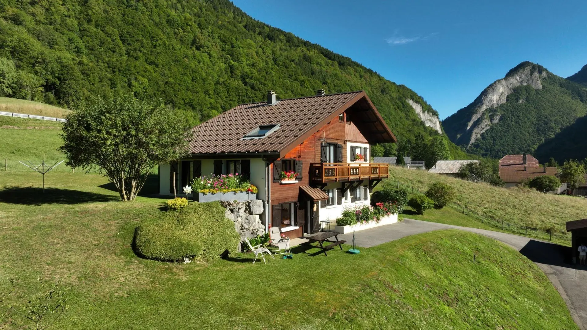 Idéal pour le repos et les amoureux de la nature. Belle vue sur la Vallée du Brevon et sommets du Chablais. Chalet comprenant 2 gîtes en rdc et un logement de la propriétaire. Gîte (30 m2) : Cuisine ouverte sur séjour (clic-clac 2 pers). Coin montagne ...