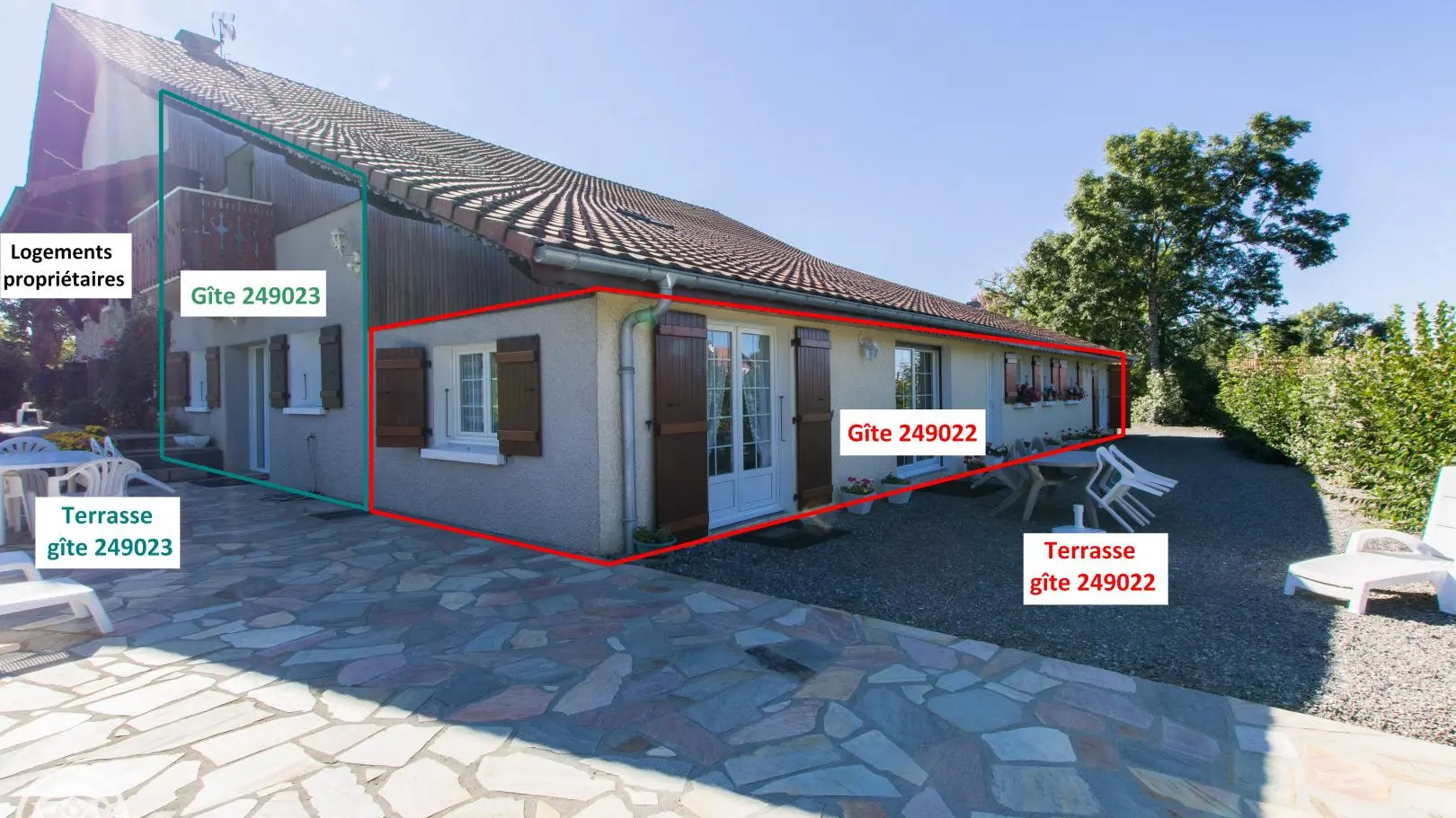 Entre lac Léman, les plages, les thermes (Evian et Thonon) et la station de Bernex, gîte de 109 m2 en duplex mitoyen à l'ancienne ferme rénovée des propriétaires et un autre gite. Entrée indépendante.