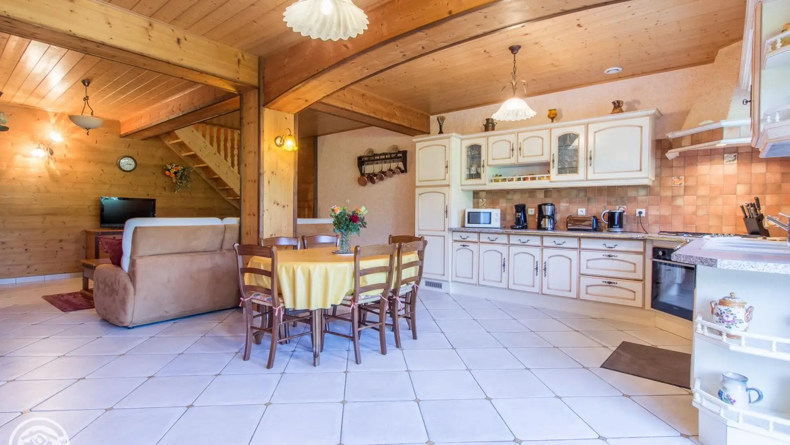 Rez-de-chaussée : grande pièce à vivre avec cuisine intégrée, espace repas et séjour, salle d'eau (douche, lave-linge), wc indépendant. A l'étage : chambre 1 (1 lit 140x190cm), chambre 2 (2 lits 90x190cm), chambre 3 mansardée (1 lit 140x190cm). Salle de bains (baignoire)/wc. Cour / grand parking commun aux gîtes et propriétaires sur l'arrière de la maison, terrasse privative, mobilier de jardin, barbecue électrique, grand terrain. Domaine skiable de Bernex à 7km ou Thollon à 11km. Portes du Soleil à 30'. Plan d'eau de la Beunaz à 4km (pêche et baignade). Evian: remise en forme, port (activités nautiques), golf. Sports en eaux vives dans la dranse.