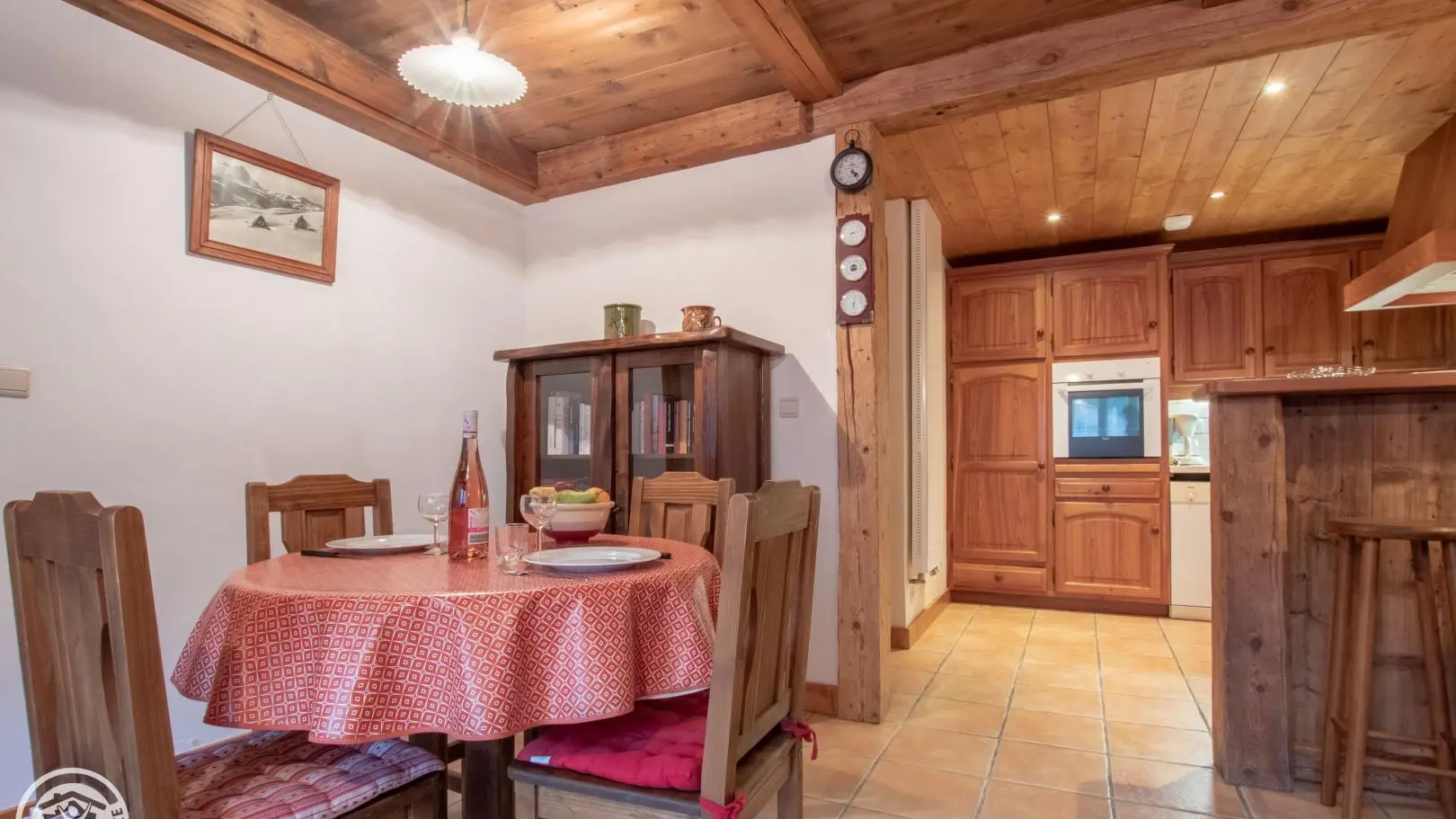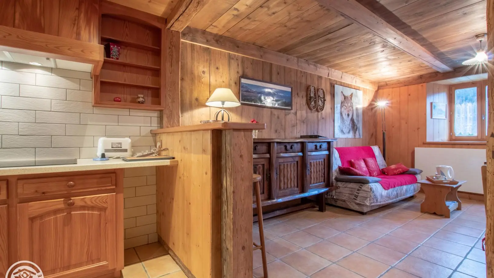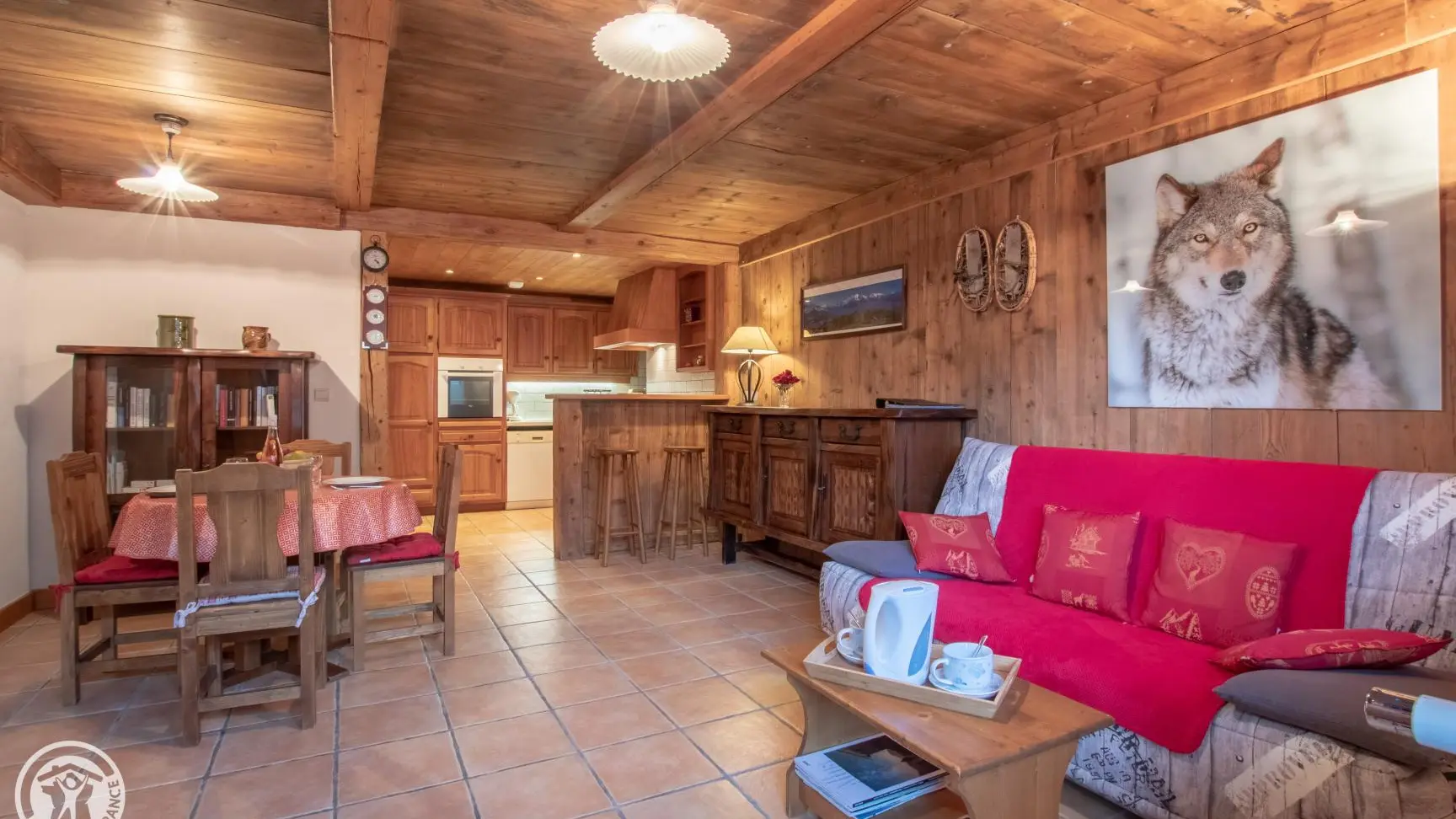 Dans hameau calme, face au Massif du Mont-Blanc et aux Dômes de Miage, Gîte de 54m2 aménagé de plain pied dans une ferme de Pays rénovée du 17ème comprenant également le logement des propriétaires. Cuisine intégrée ouverte sur séjour (TV), coin repas. ...