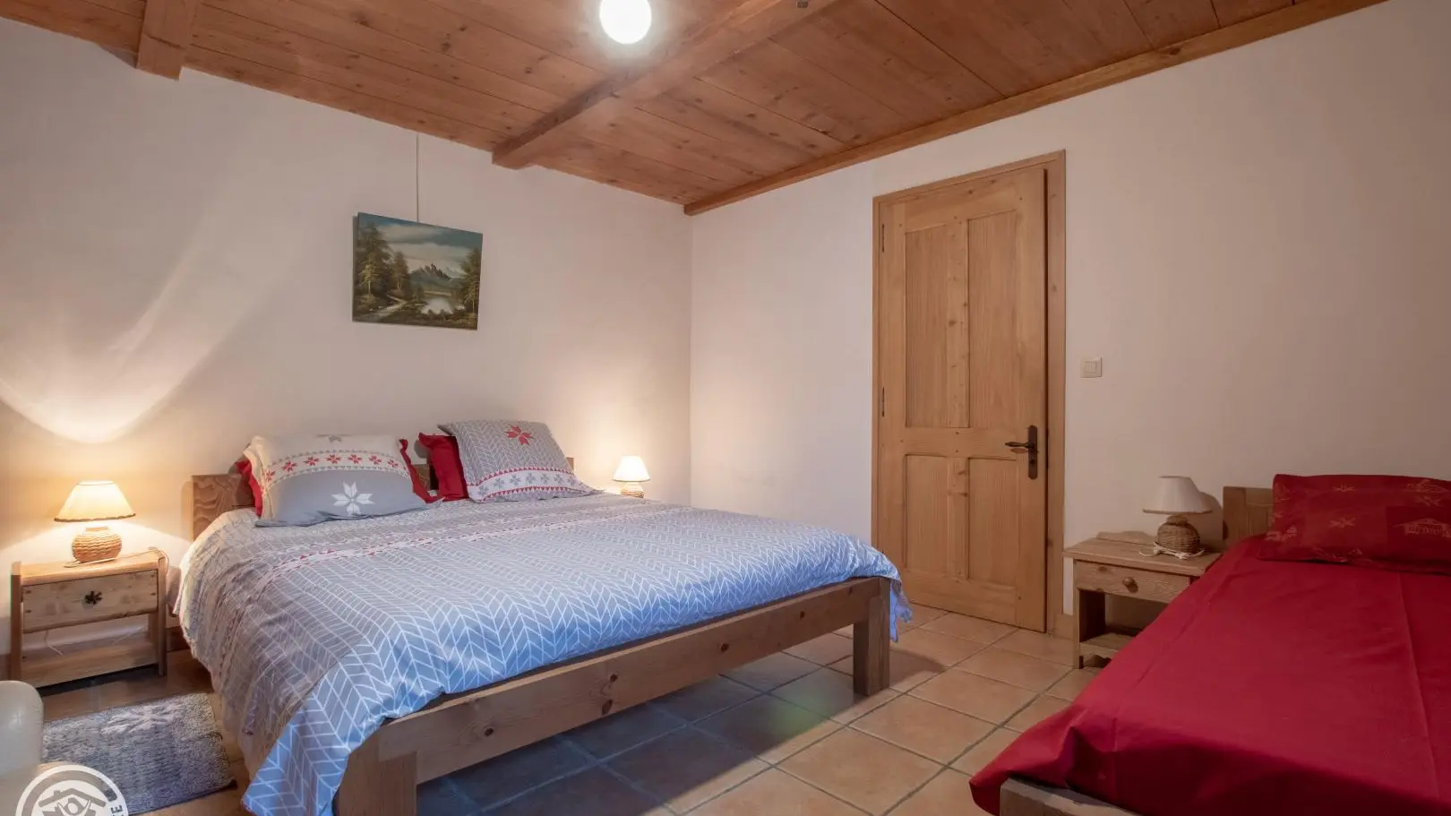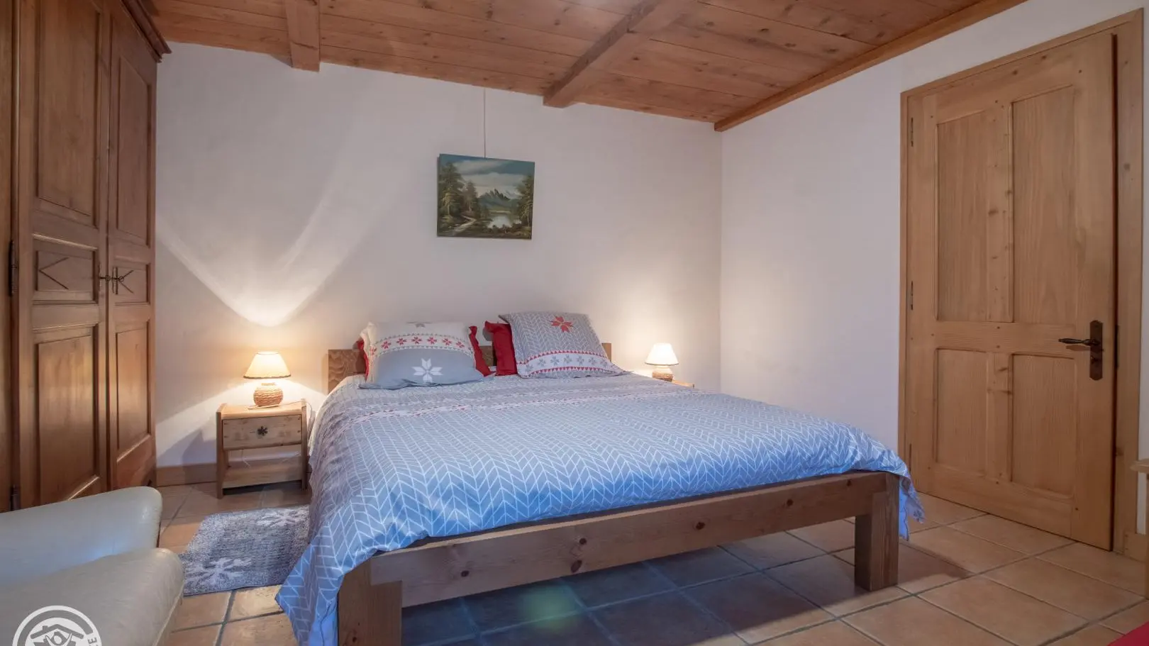 Dans hameau calme, face au Massif du Mont-Blanc et aux Dômes de Miage, Gîte de 54m2 aménagé de plain pied dans une ferme de Pays rénovée du 17ème comprenant également le logement des propriétaires. Cuisine intégrée ouverte sur séjour (canapé,, espace repas). Grande chambre avec 1 lit 160cm + 1 lit 90cm. Salle de bains (baignoire), wc indépendant. Chauffage central. Jardinet et terrasse privative avec mobilier. Place de Parking.