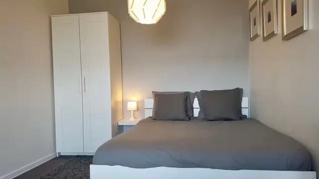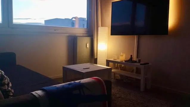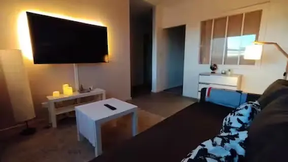 Un salon-séjour lumineux avec un canapé-lit convertible (140X200), une chambre avec lit double 140 x 200 cm et sa penderie, une salle de douche et commodités.