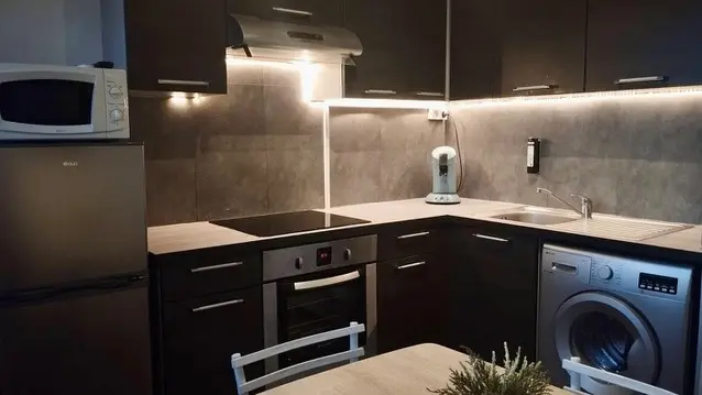 Une cuisine parfaitement équipée pour les longs séjours avec une Nespresso, une bouilloire, un toaster, four et micro-onde, …