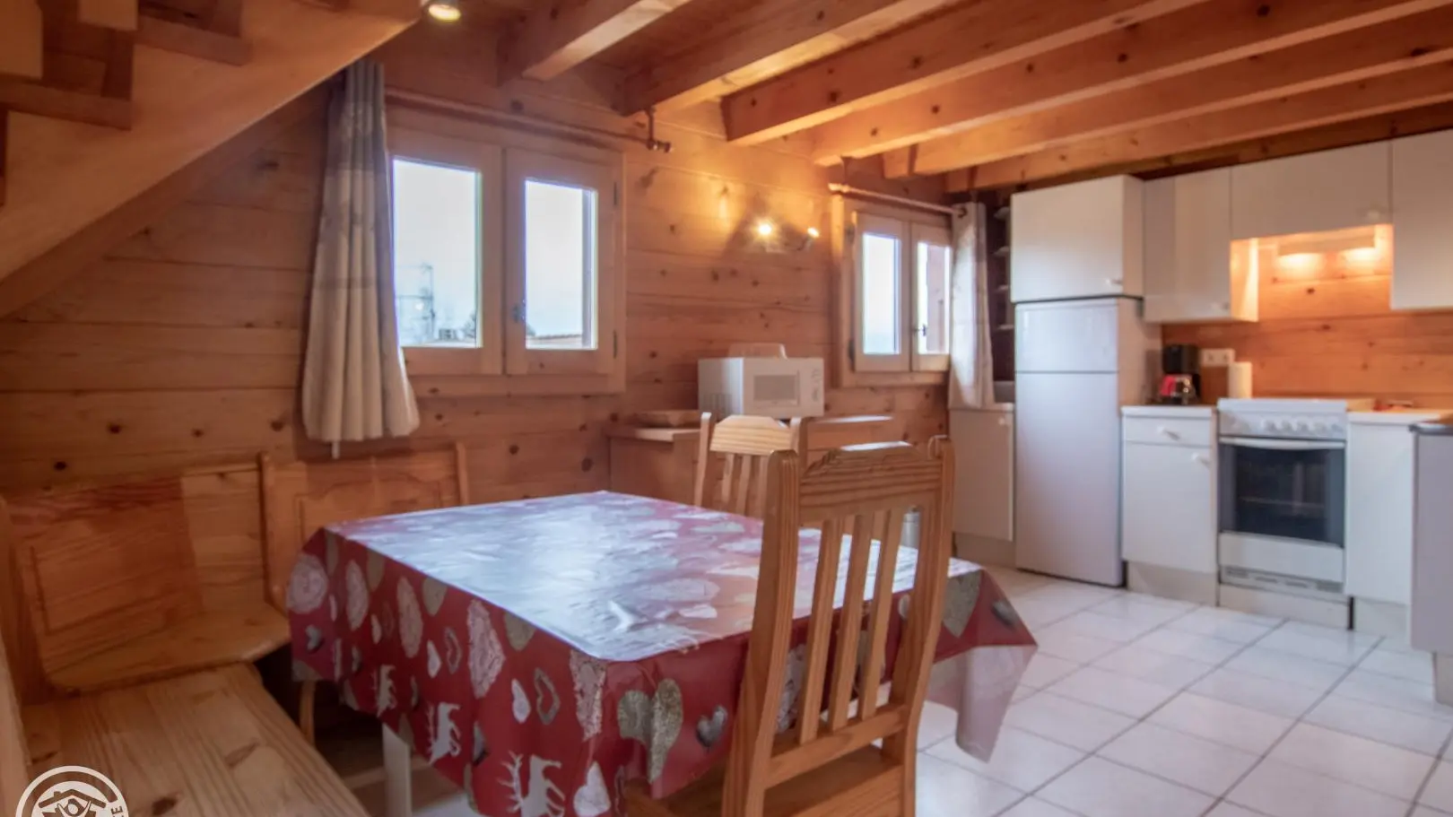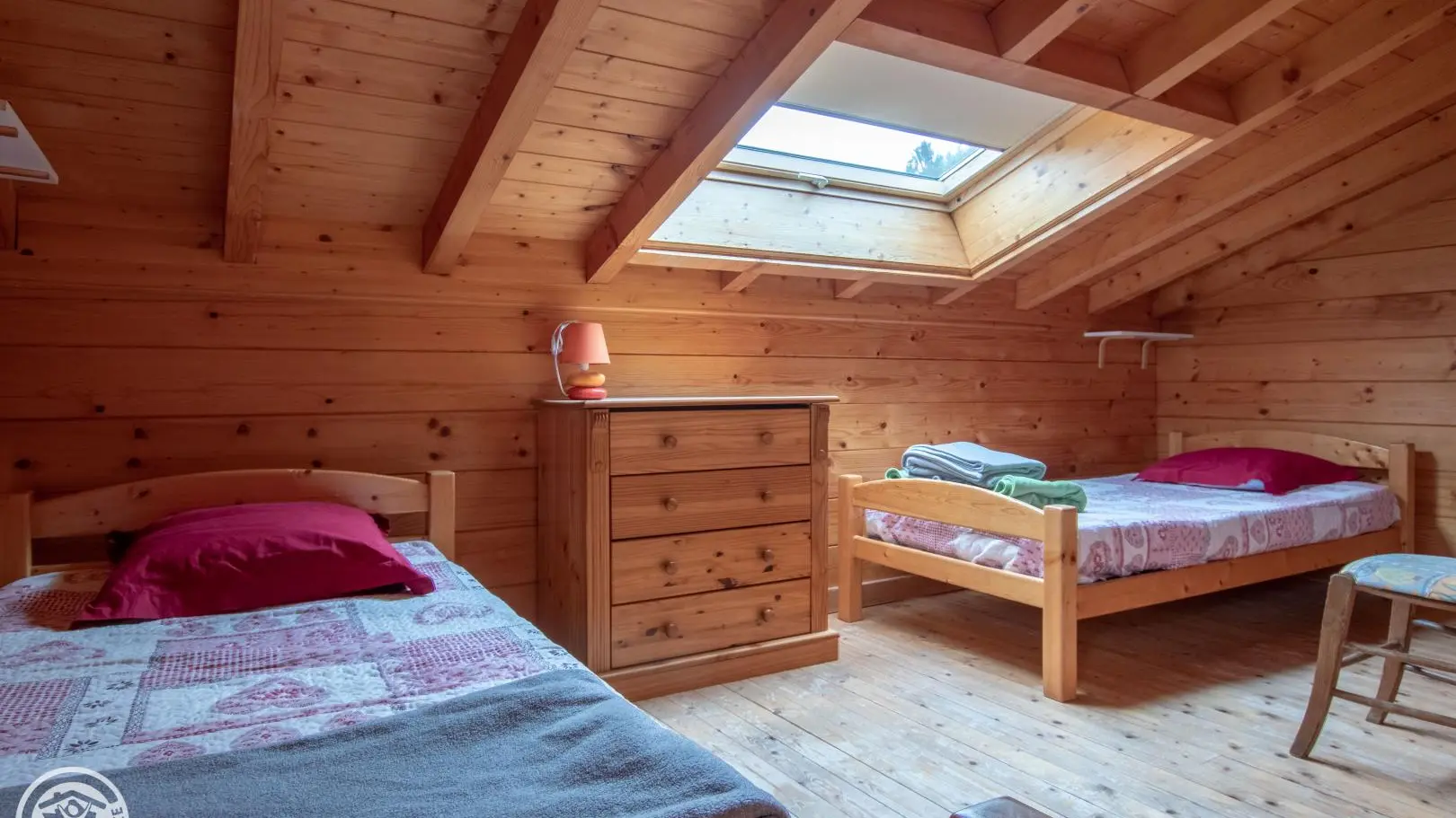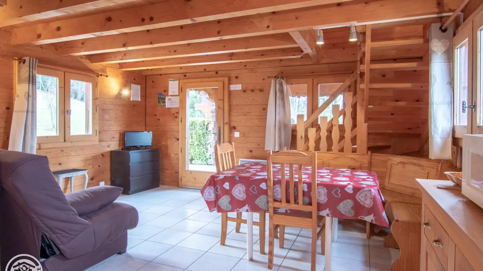 Sur la rive Sud du lac Léman, face à la Suisse, à 3mn d'Evian et 15mn de la première station, ensemble de 5 chalets indépendants (dont celui des propriétaires). Gîte de 40 m2 + 10 m2 mansardés. Au RdC : coin-cuisine dans séjour (clic-clac 1 pers), sall...