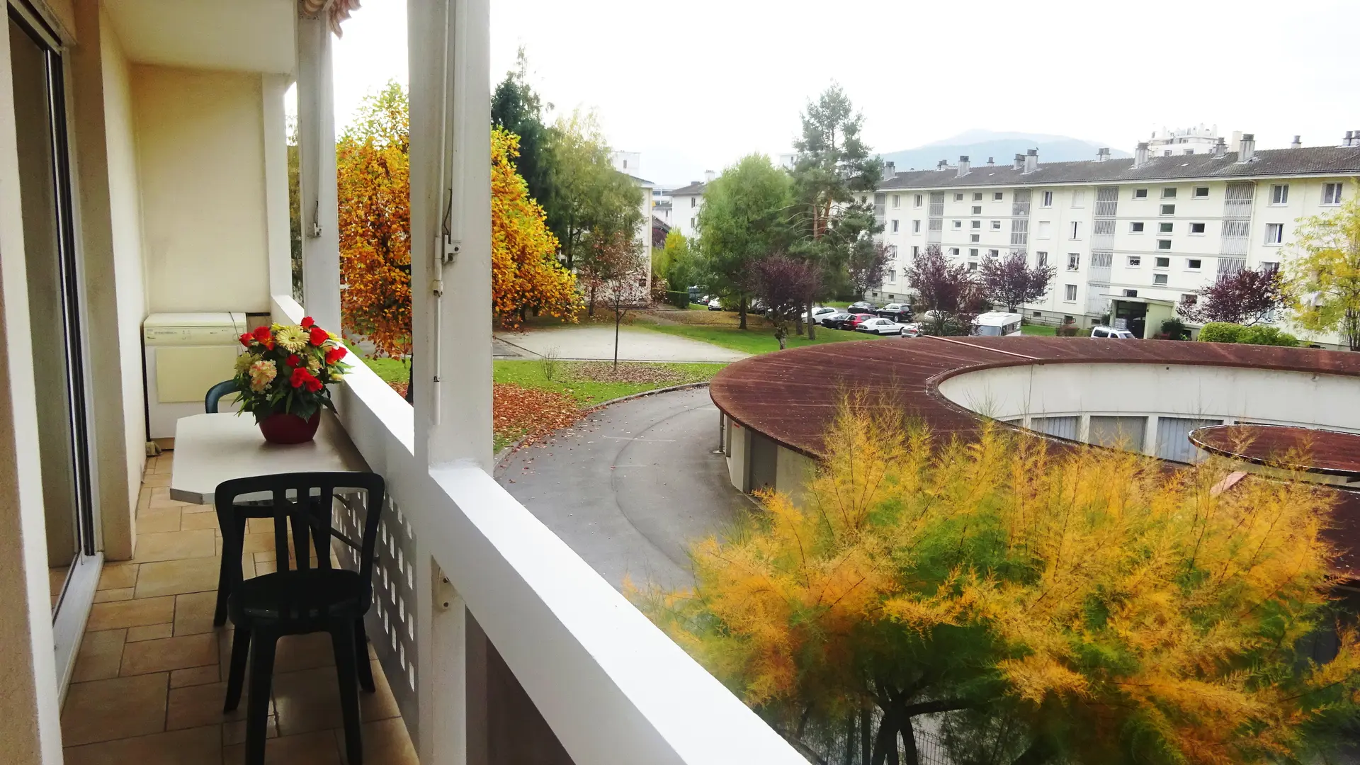 Lumineux appartement de 64 m², 2ème étage/8, pour 2 ou 4 personnes, en retrait de la voie de circulation. Balcon sud/sud-ouest. Parking avec badge. 1km du lac, 1,2km de la ville. Ligne de bus.