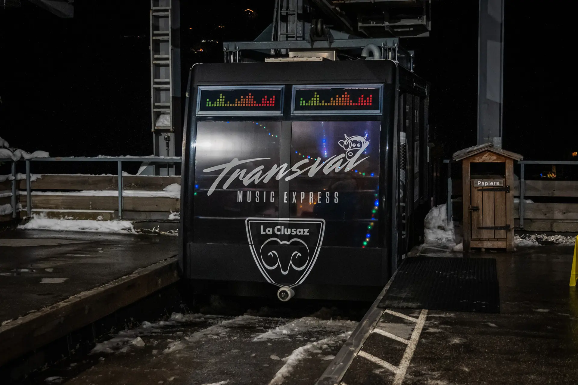Trajet aller-retour en téléphérique, avec un arrêt au milieu du trajet pour profiter de l'ambiance féérique dans une cabine de téléphérique.