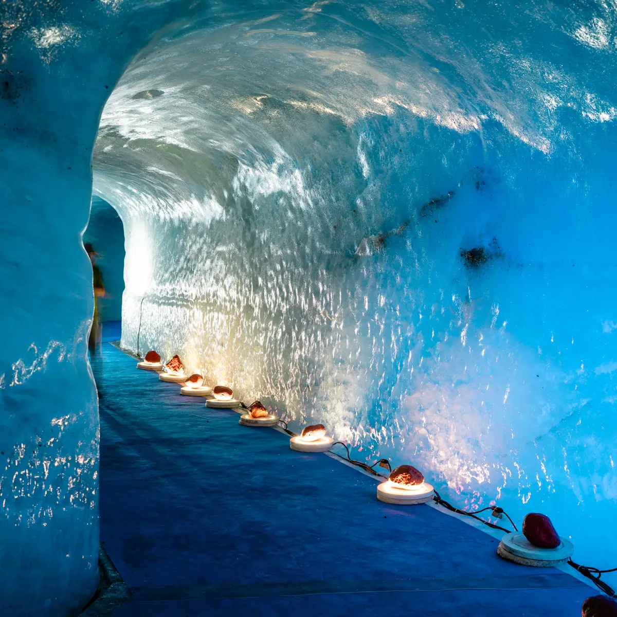 La visite se poursuit par la descente en télécabine jusqu’au glacier de la Mer de Glace (plus grand glacier français) et la visite de la grotte de glace qui constitue une expérience sensorielle et éducative forte, favorisant la curiosité et l’émerveillement.