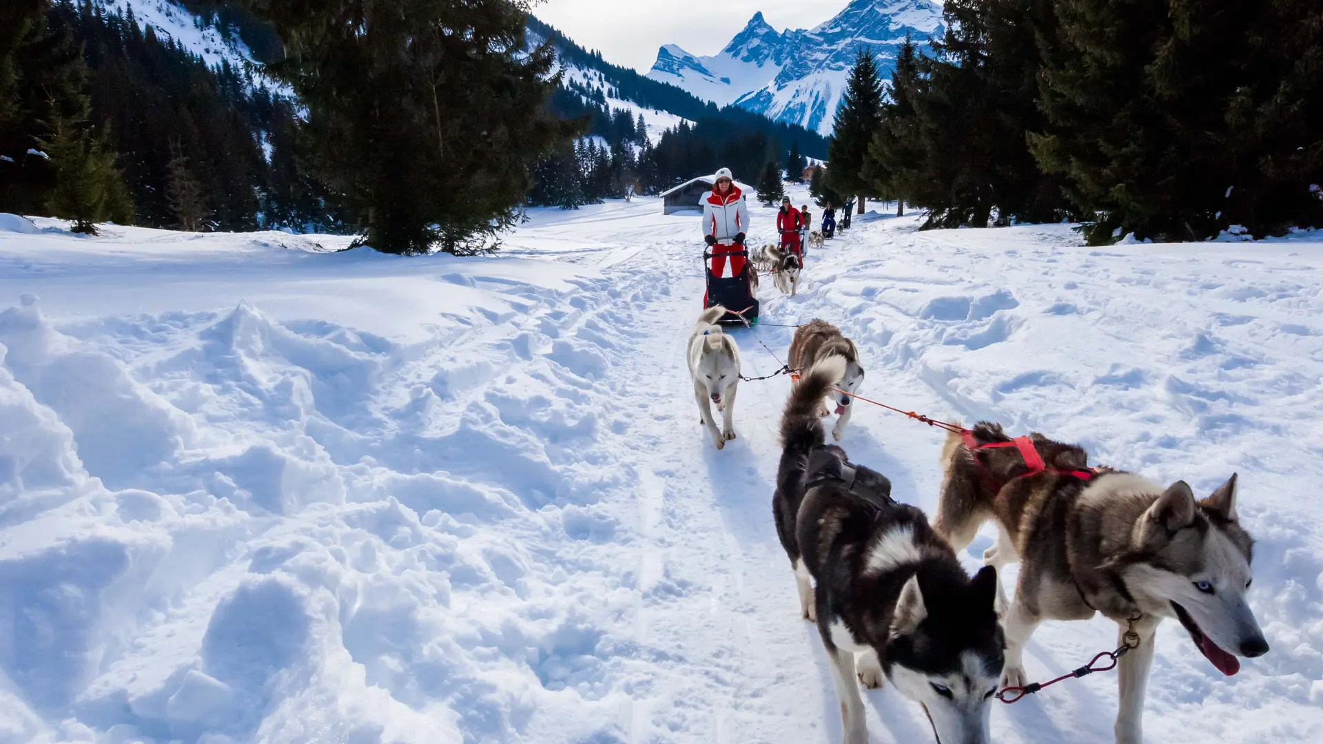 CHAQUE PERSONNE CONDUIT UN TRAÎNEAU AVEC 3 OU 4 CHIENS D’ATTELÉS EN FONCTION DE LA FORMULE CHOISIE.
