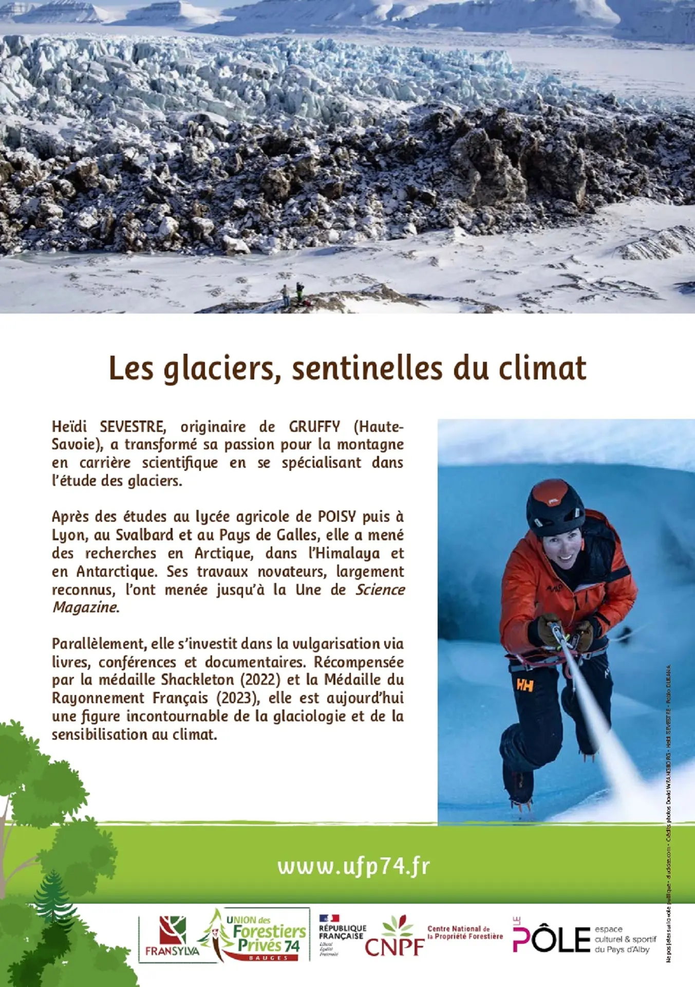 Heïdi Sevestre, glaciologue de renommée internationale et communicatrice passionnée vous invite à un voyage au cœur des glaciers, véritables témoins de l’évolution du climat, pour mieux comprendre les enjeux environnementaux d’aujourd’hui et de demain.