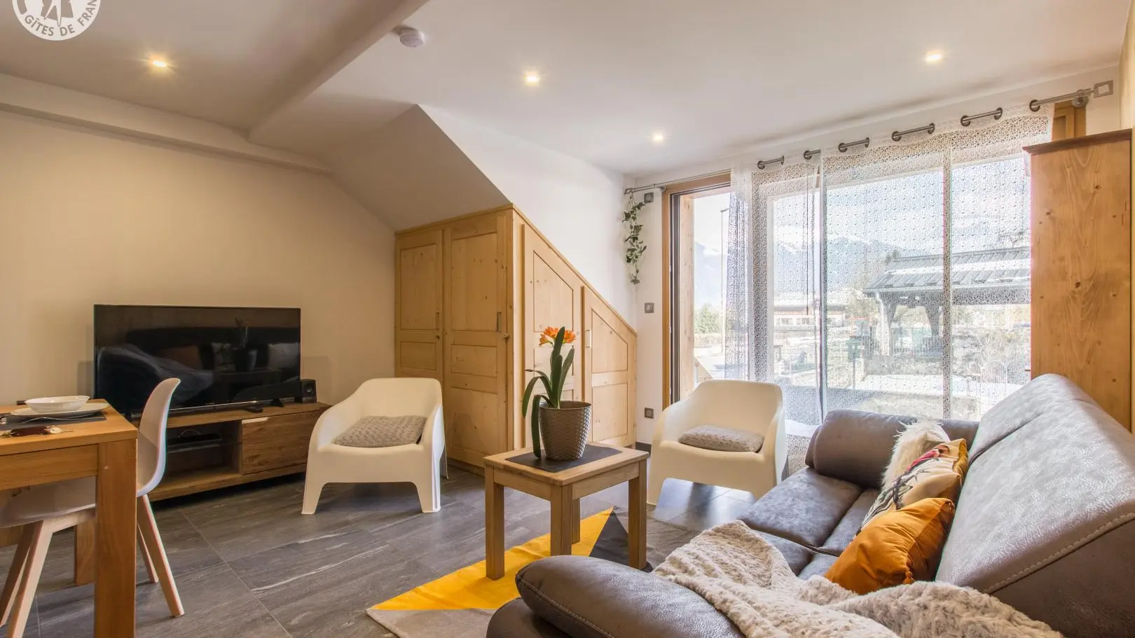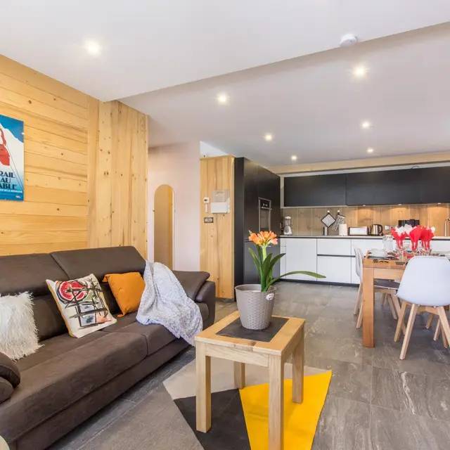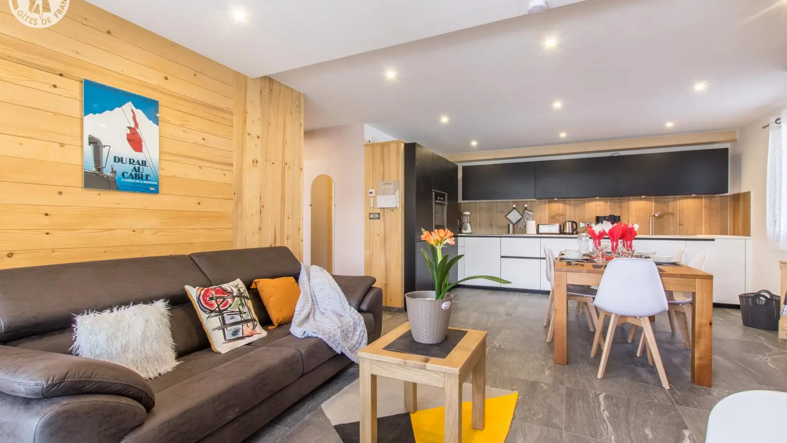 Bel appartement de style 'chalet moderne' aménagé au sein d'une ancienne ferme des pays rénovée.
