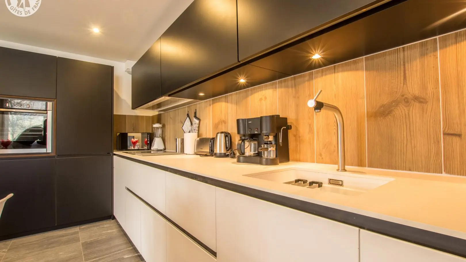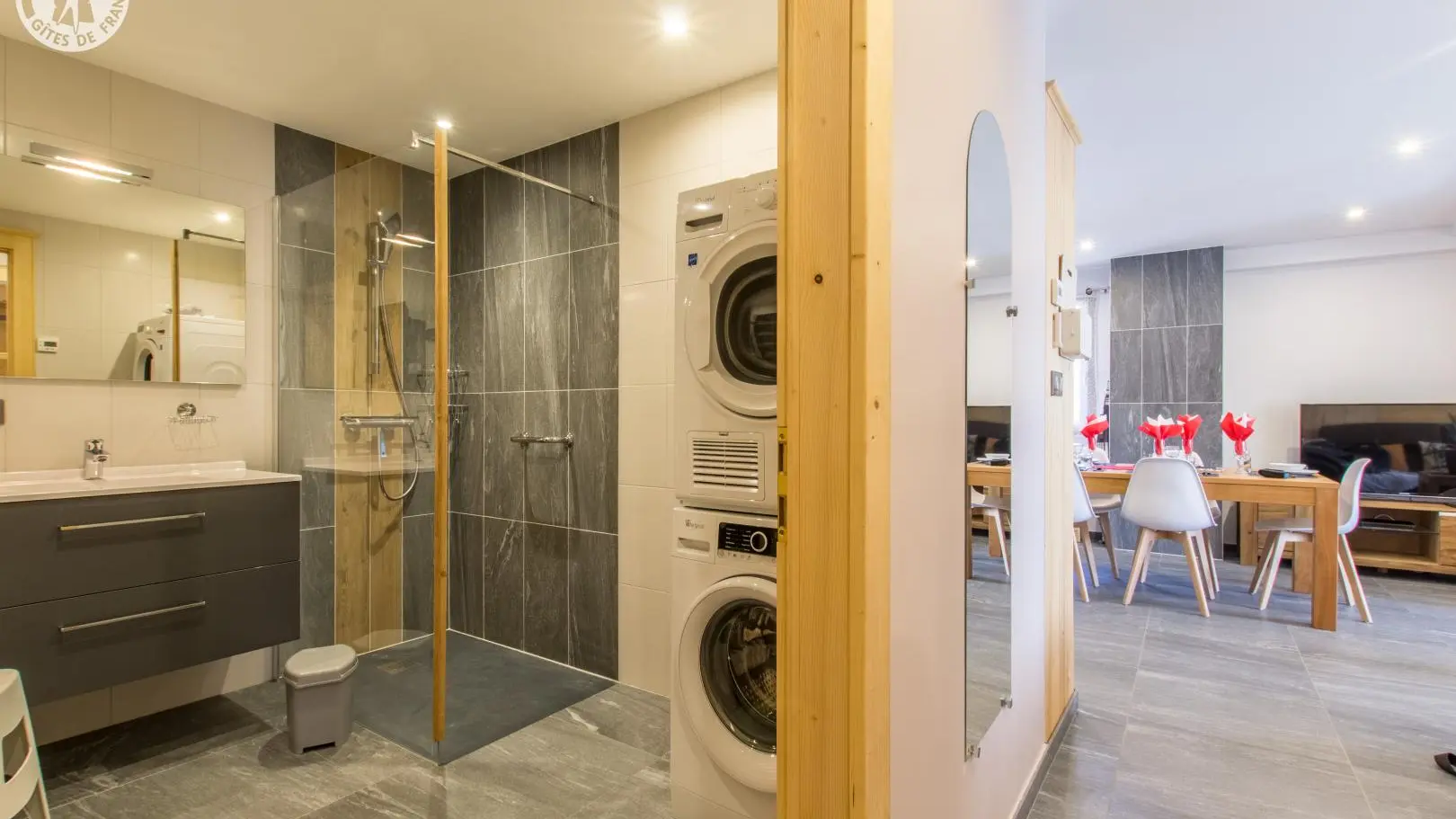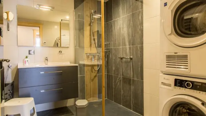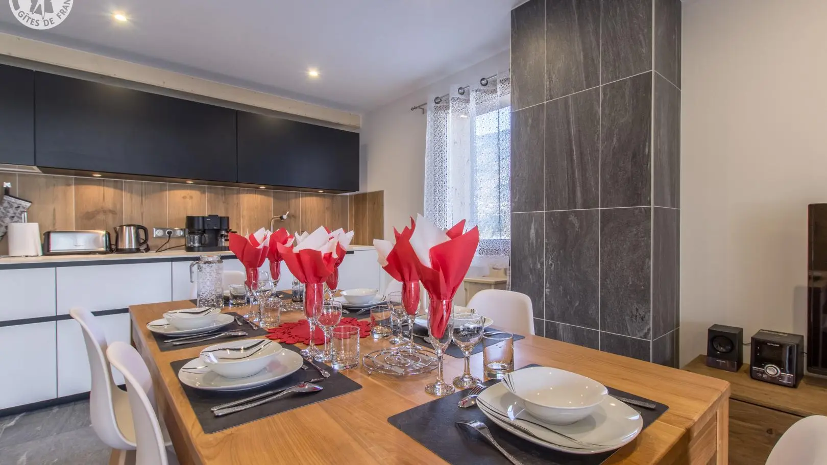 Bel appartement de style 'chalet moderne' aménagé au sein d'une ancienne ferme des pays rénovée.