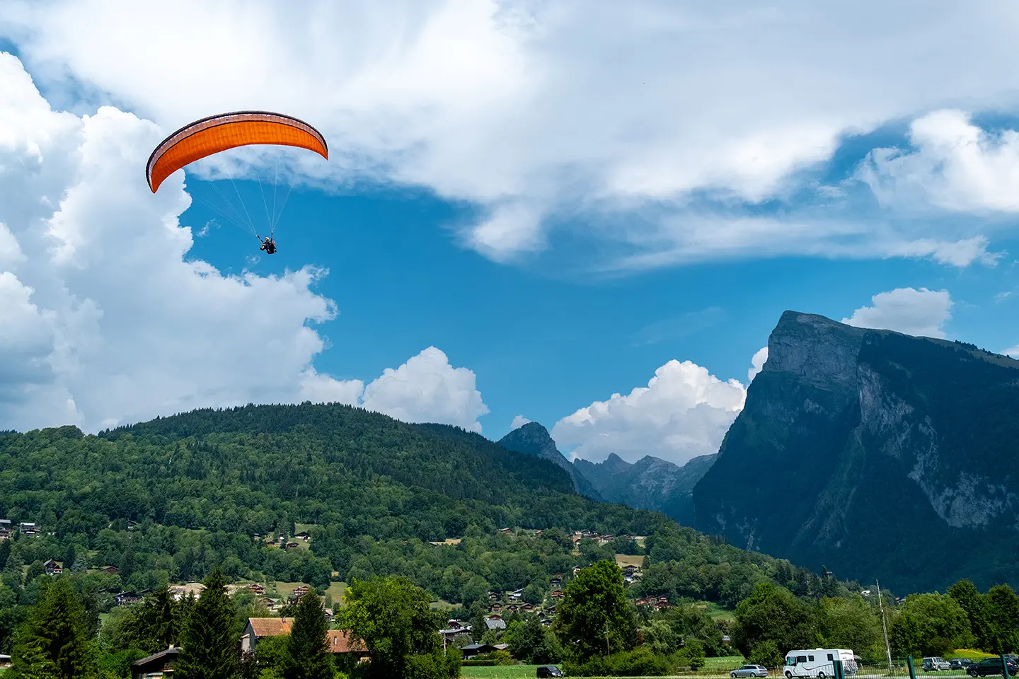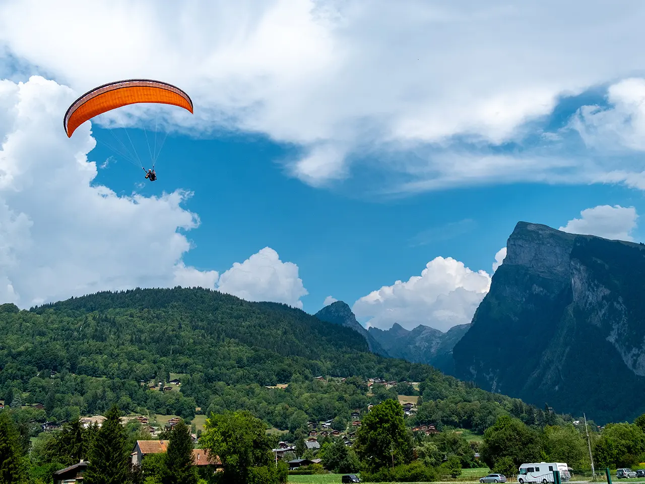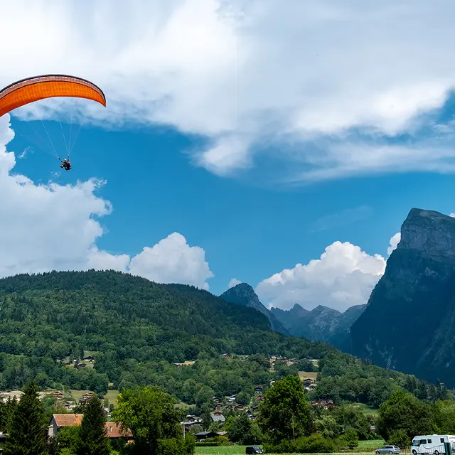 - Dans les 2 cas par bonnes conditions, il est possible de venir se poser entre les tennis et la nationale (terrain balisé) après avoir survolé Samoëns (cotation D, finesse 2,5 depuis Criou, 3,7 depuis Ressacha).