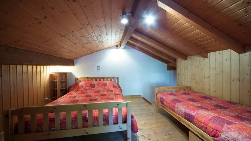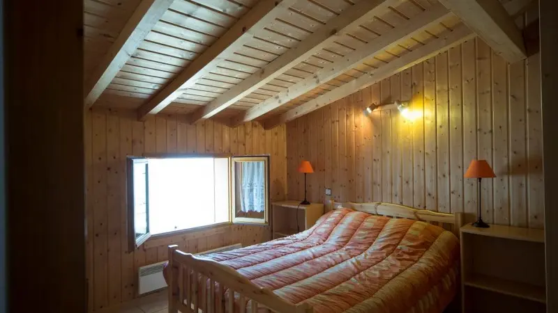 1 chambre à l'étage (1 grand lit et 1 petit) avec vue sur les montagnes